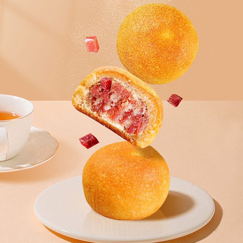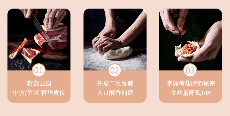 选用宣威火腿丁,与蜂蜜、糖、熟面拌匀作为馅心