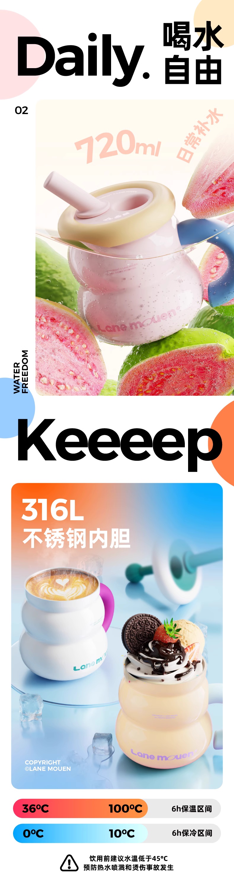 览萌Lane Mouen葫芦系列保温杯(翠湖白)