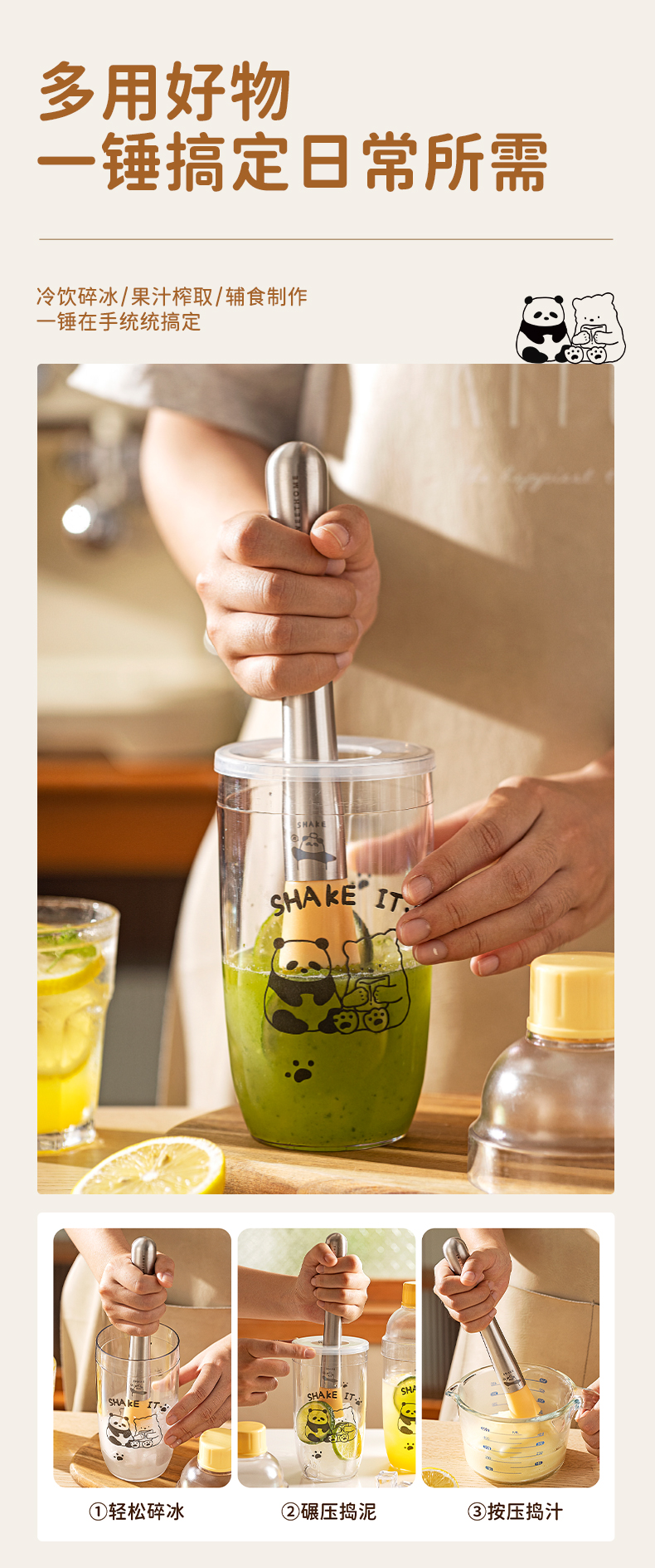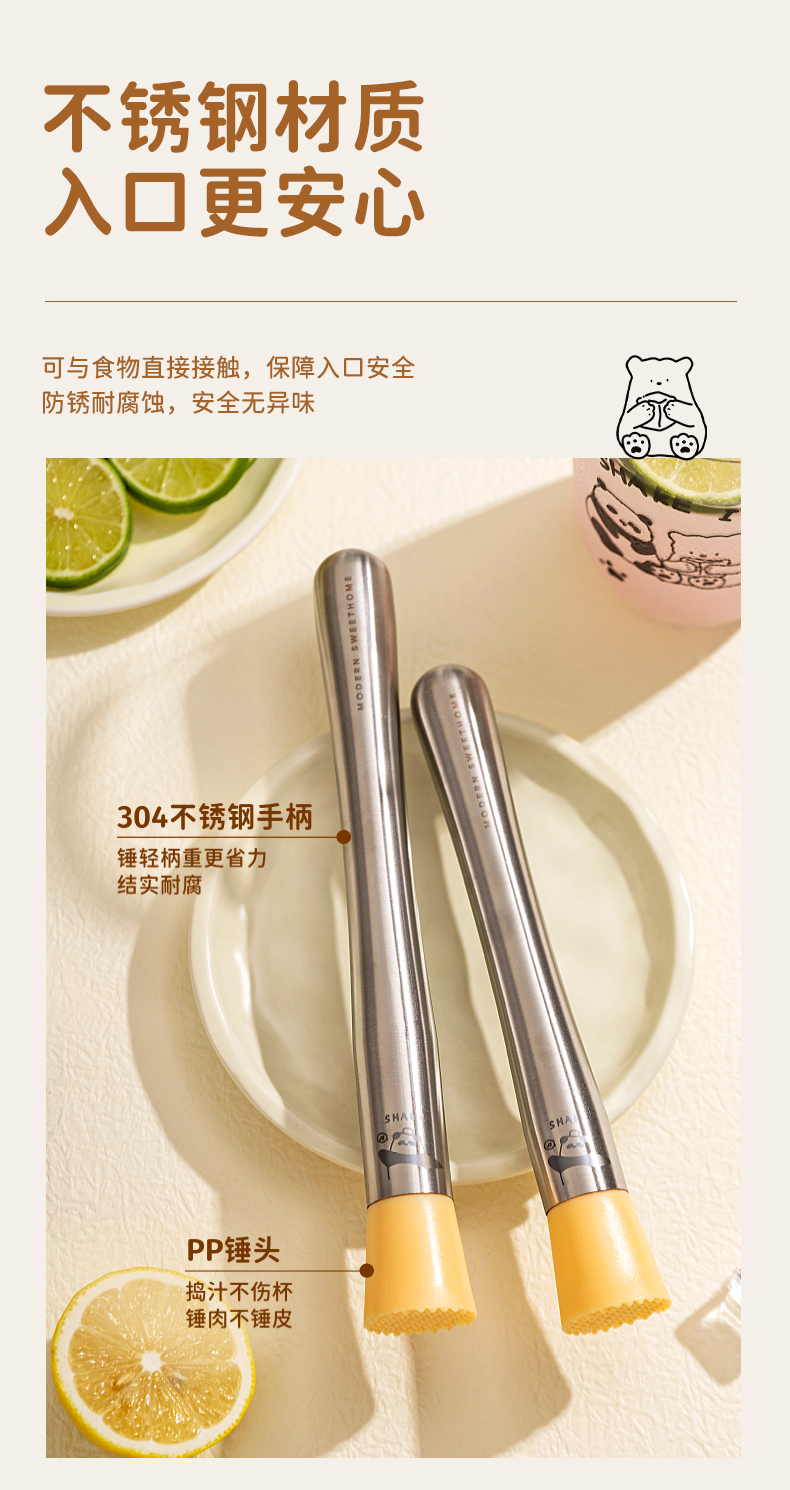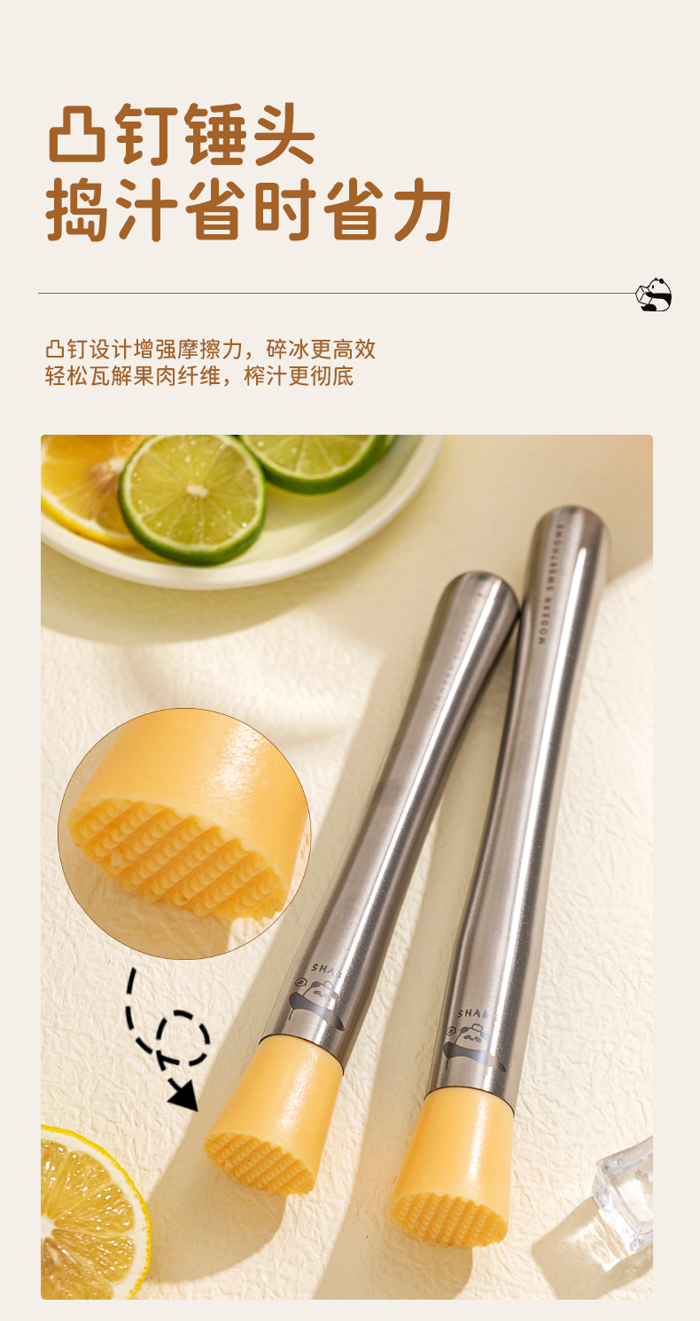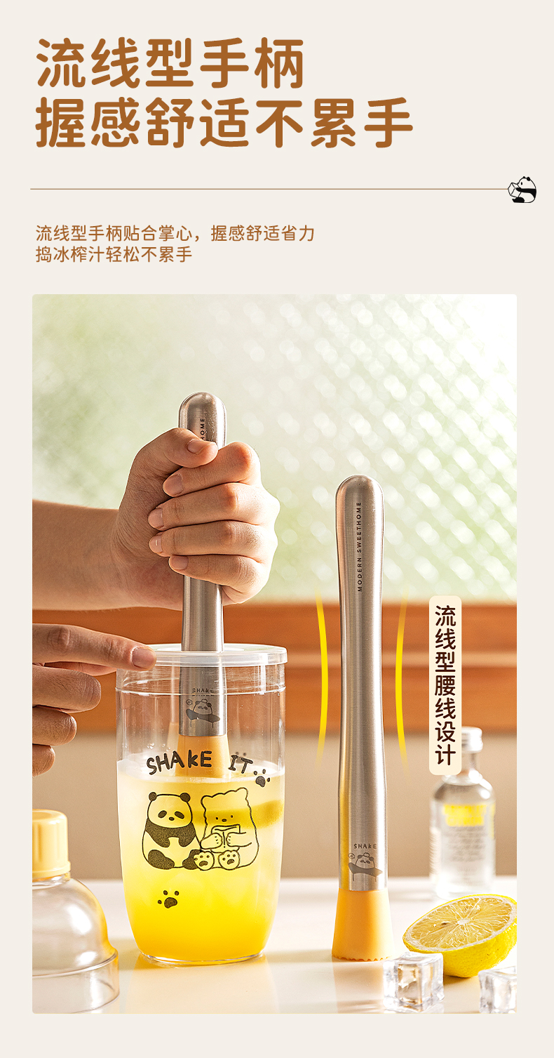 摩登主妇mototo熊猫捣汁棒碎冰锤手打暴打柠檬茶工具锤压汁捣碎棒