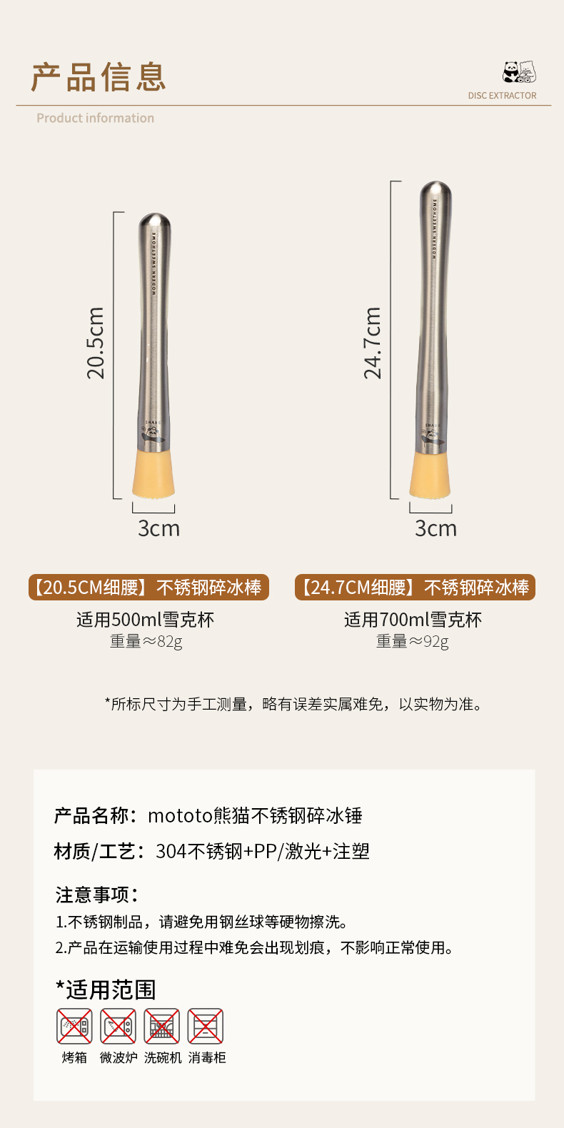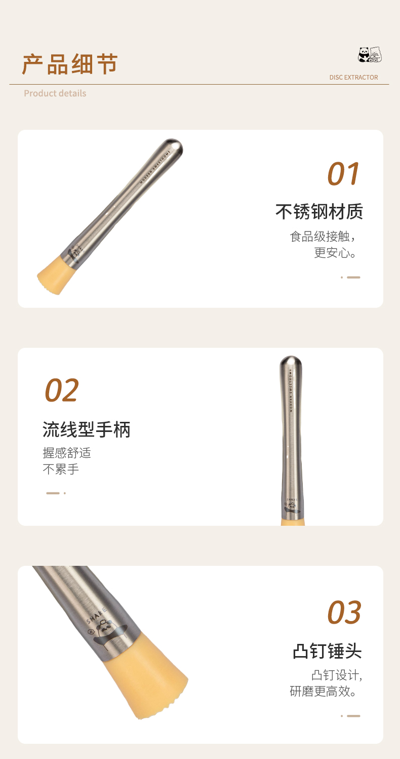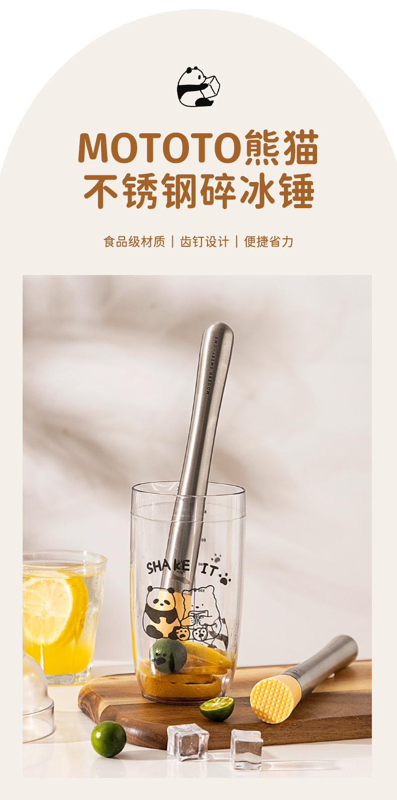 摩登主妇mototo熊猫捣汁棒碎冰锤手打暴打柠檬茶工具锤压汁捣碎棒