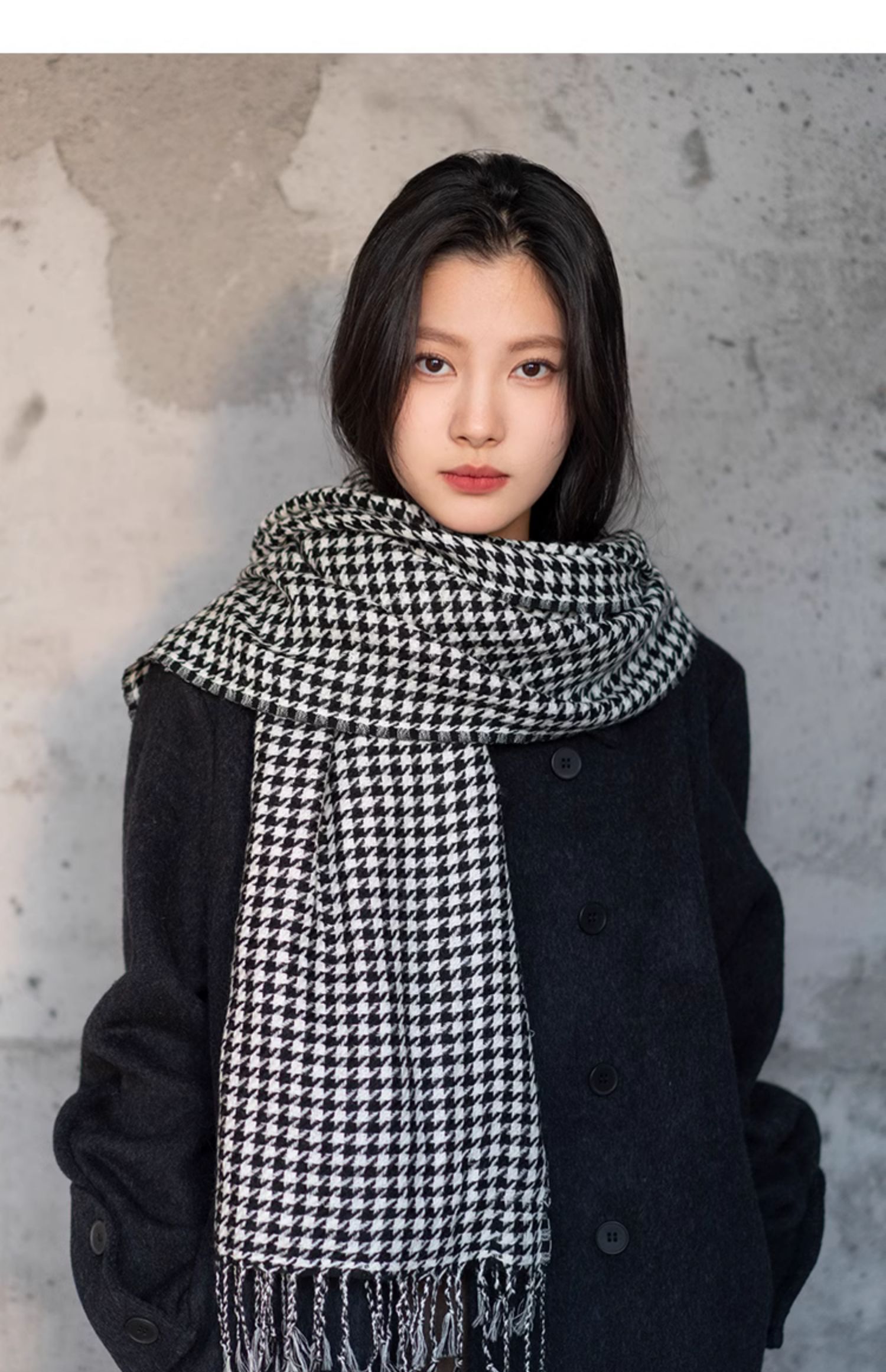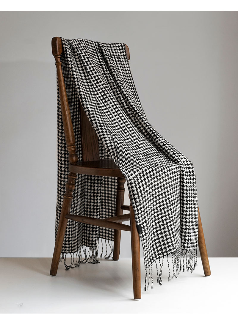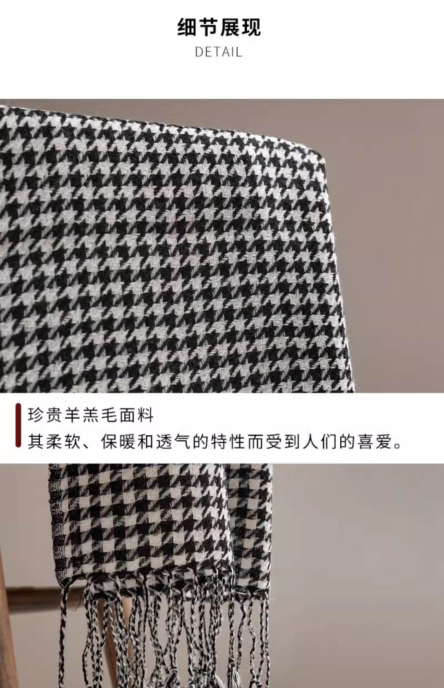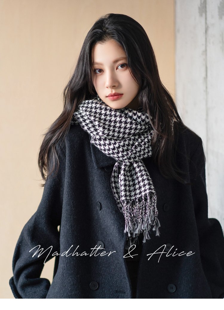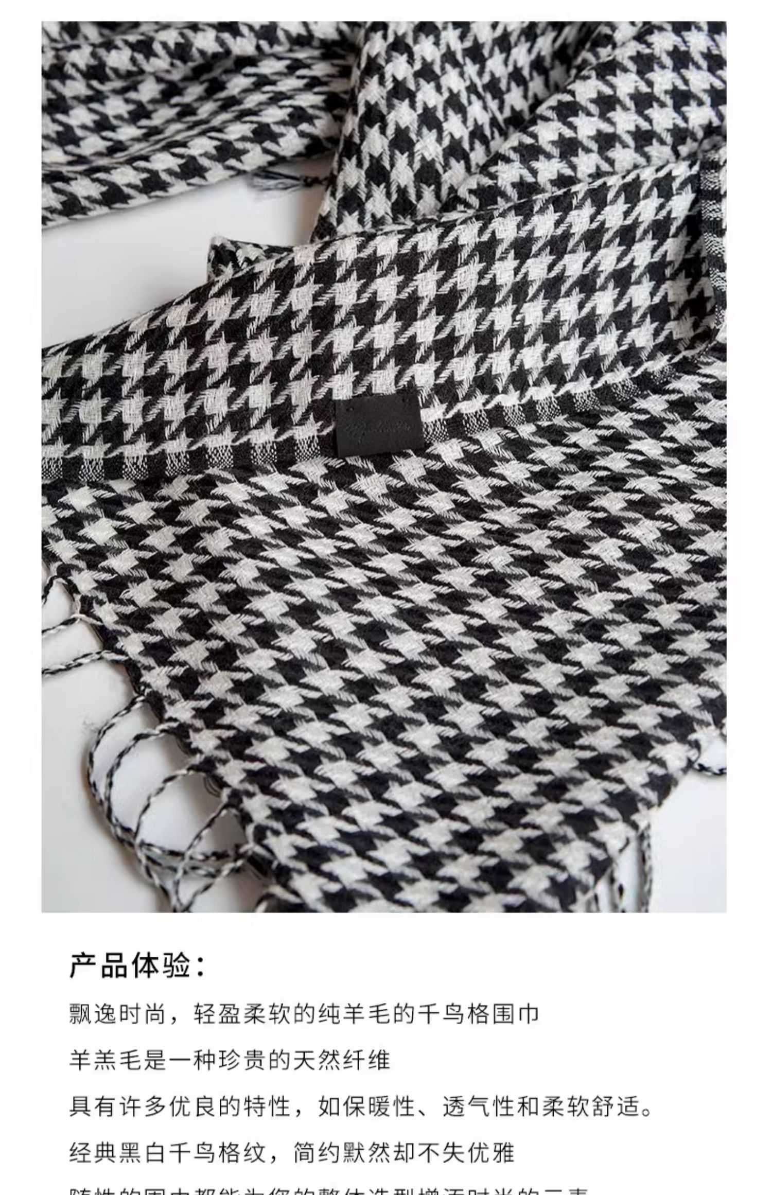 WJ125 疯帽子与爱丽丝纯羊毛千鸟格围巾 黑白逛街保暖披肩长款围脖潮秋冬23新品