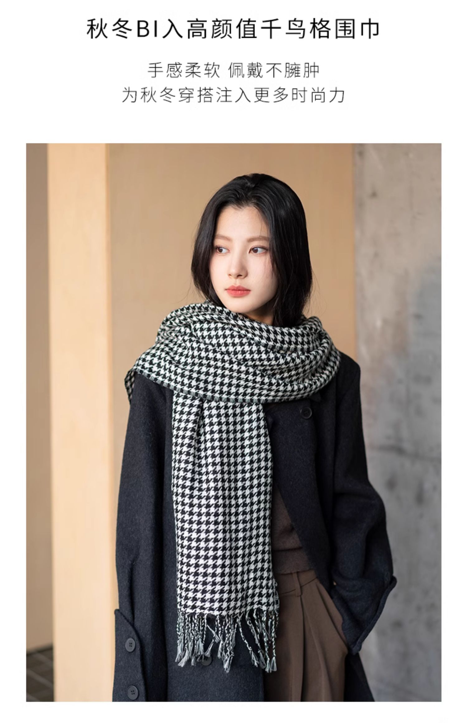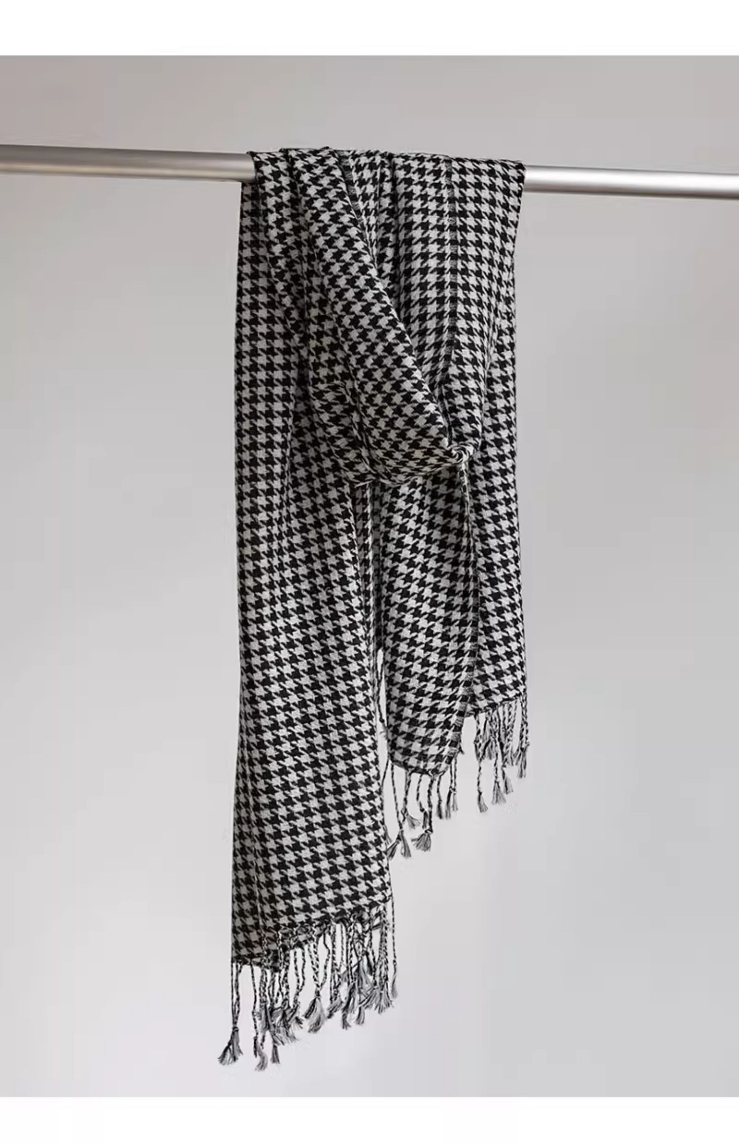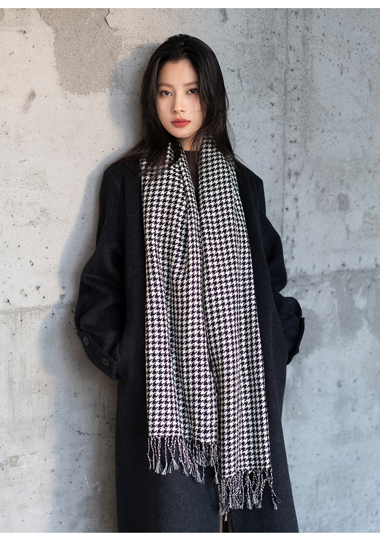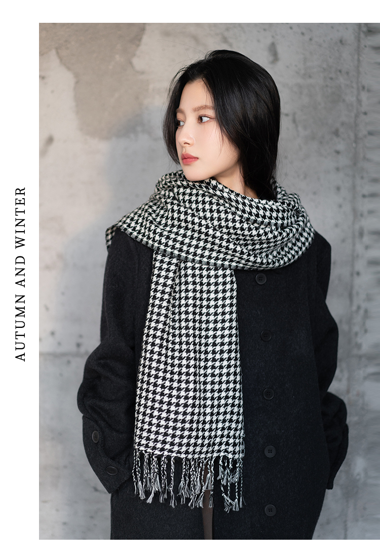 WJ125 疯帽子与爱丽丝纯羊毛千鸟格围巾 黑白逛街保暖披肩长款围脖潮秋冬23新品