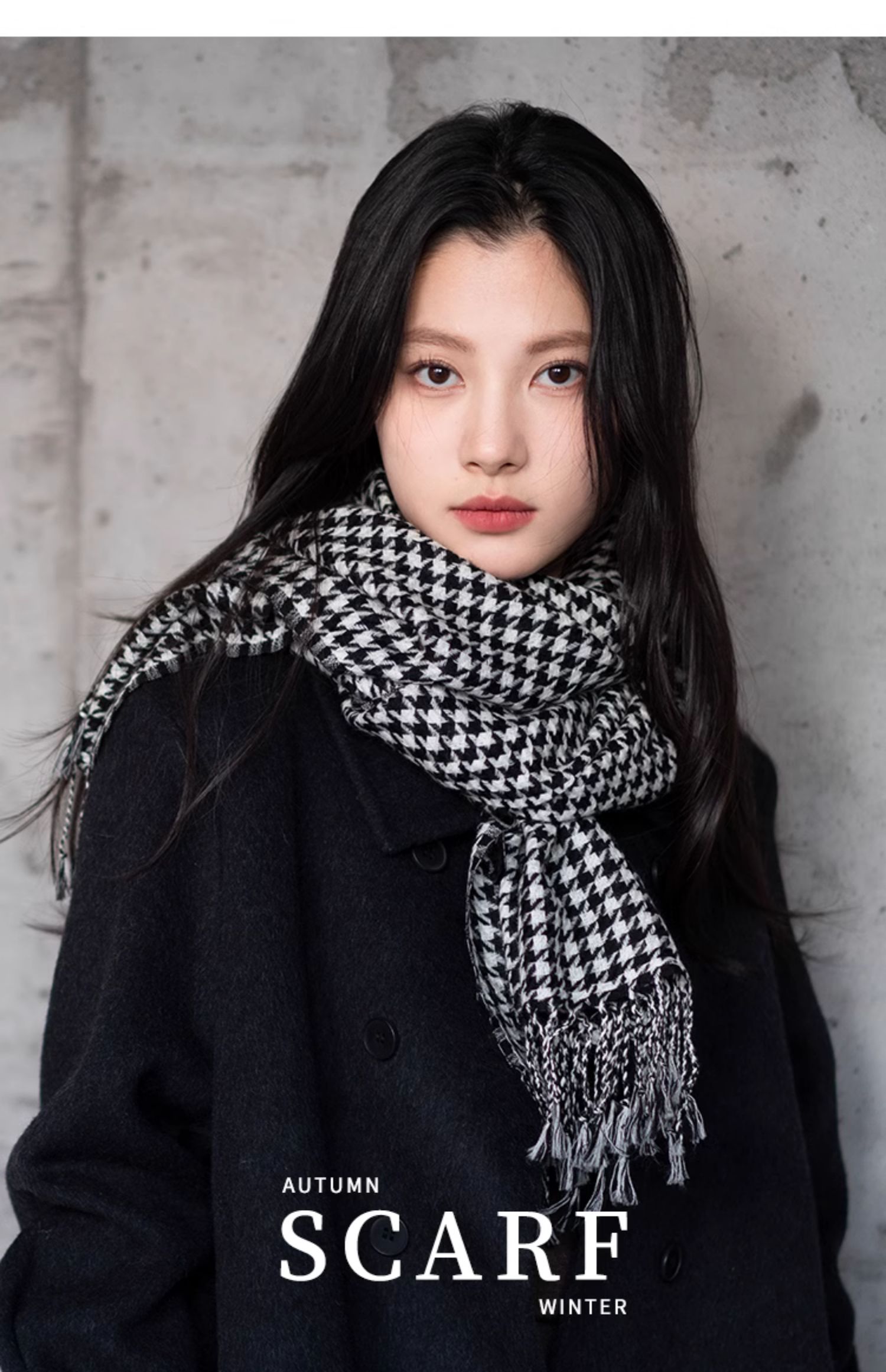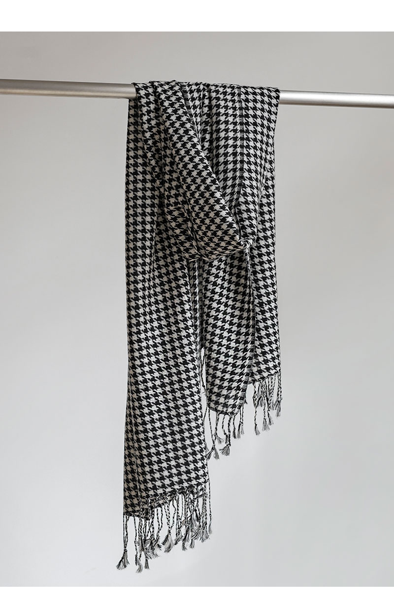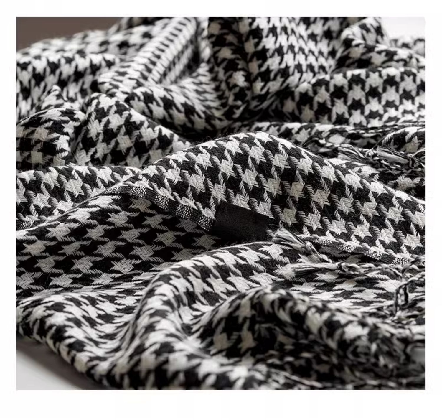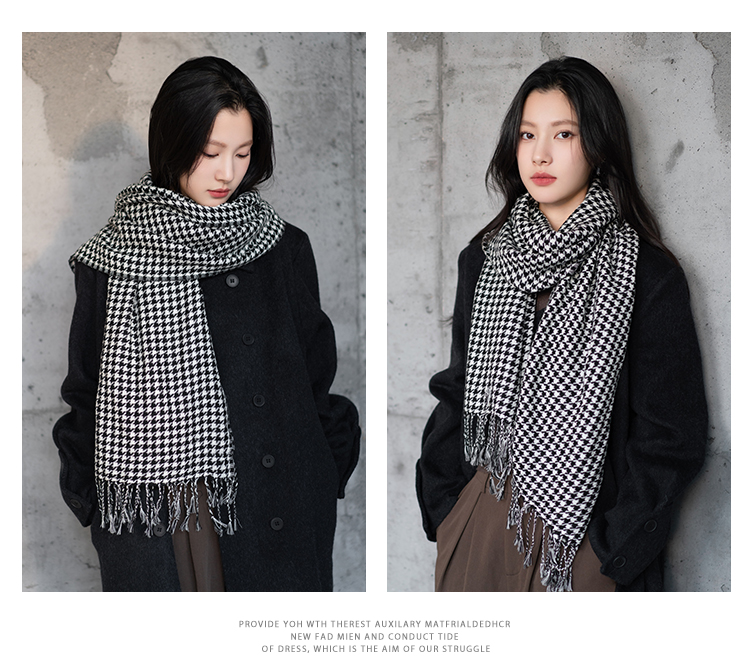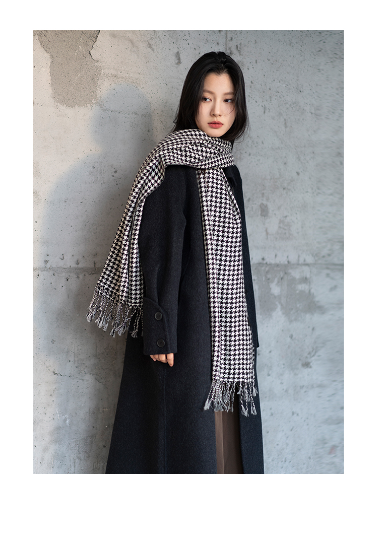 WJ125 疯帽子与爱丽丝纯羊毛千鸟格围巾 黑白逛街保暖披肩长款围脖潮秋冬23新品