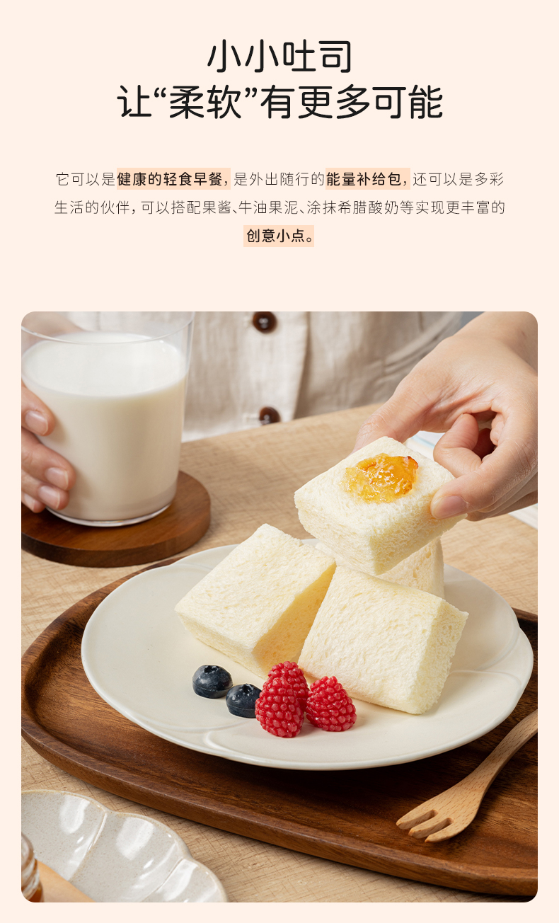 云朵口感 细腻丝滑 | 米惦奶奶嫩吐司 无边鲜奶吐司 早餐面包代餐 老少皆宜 300g*1袋[口感绵软,一袋约20个]