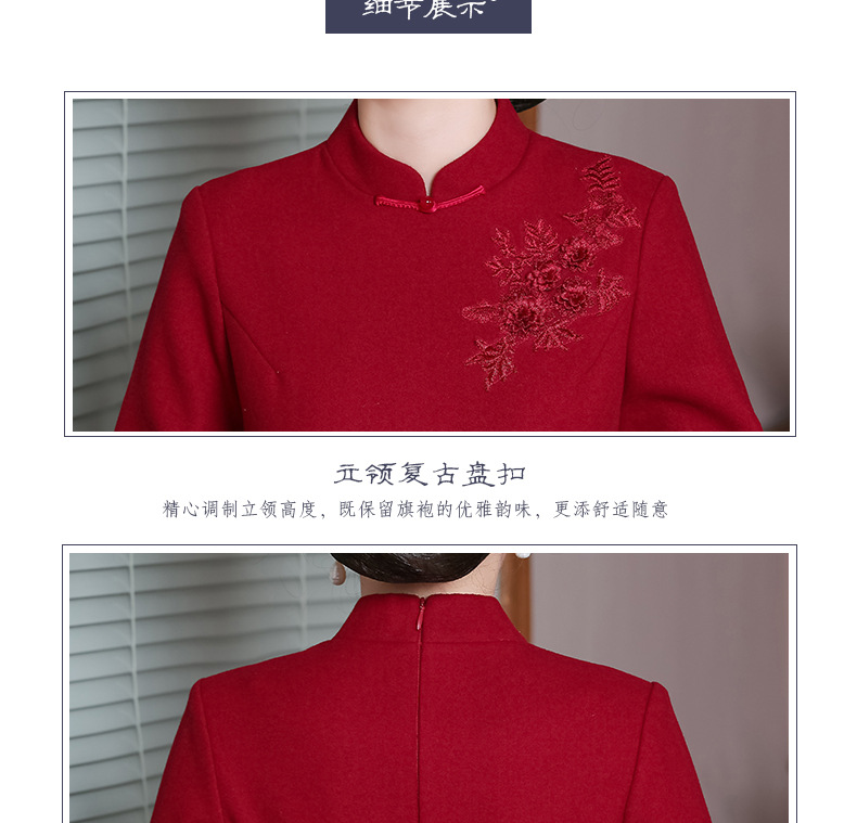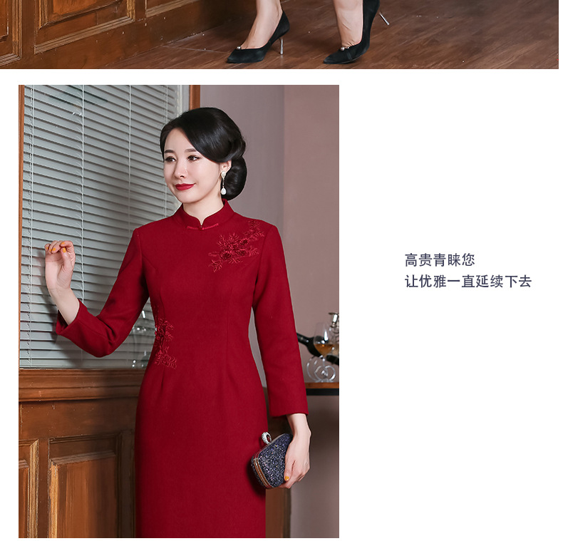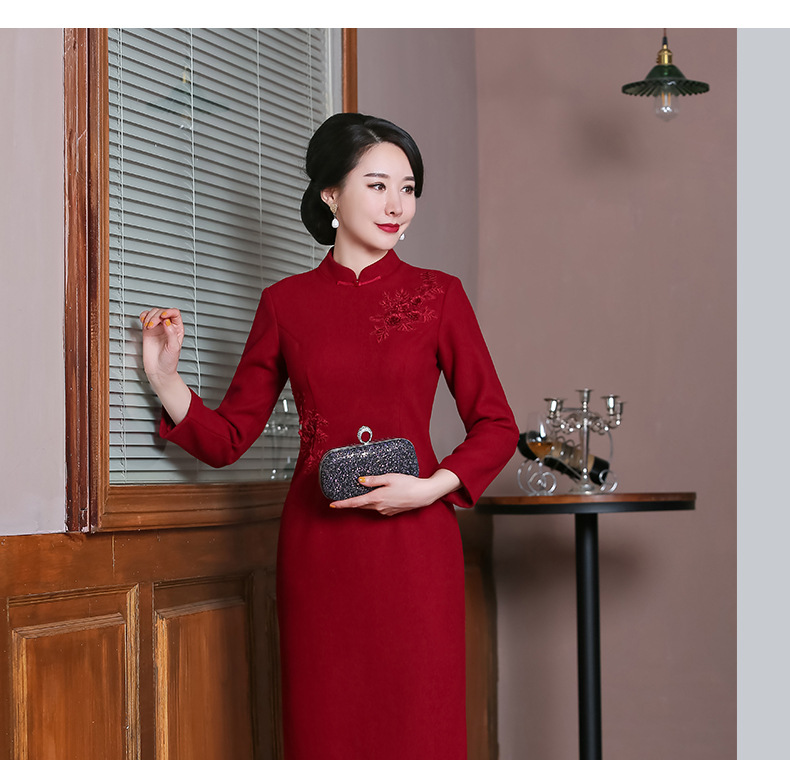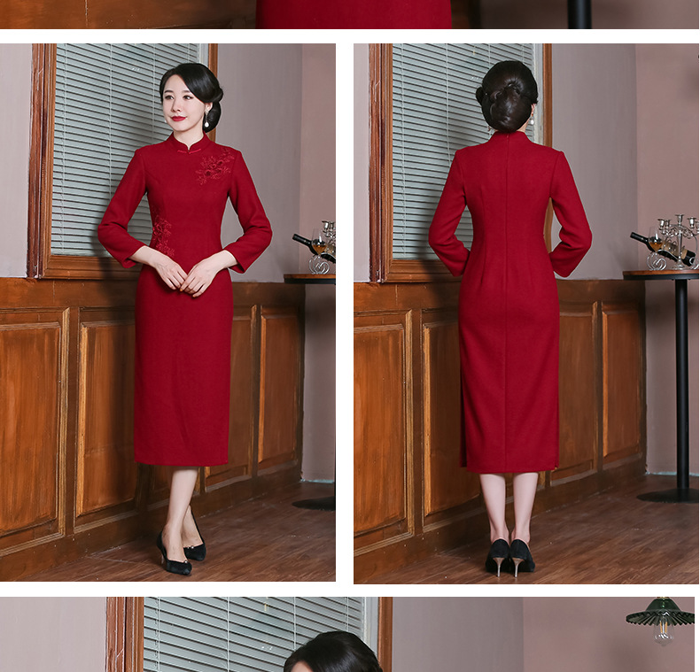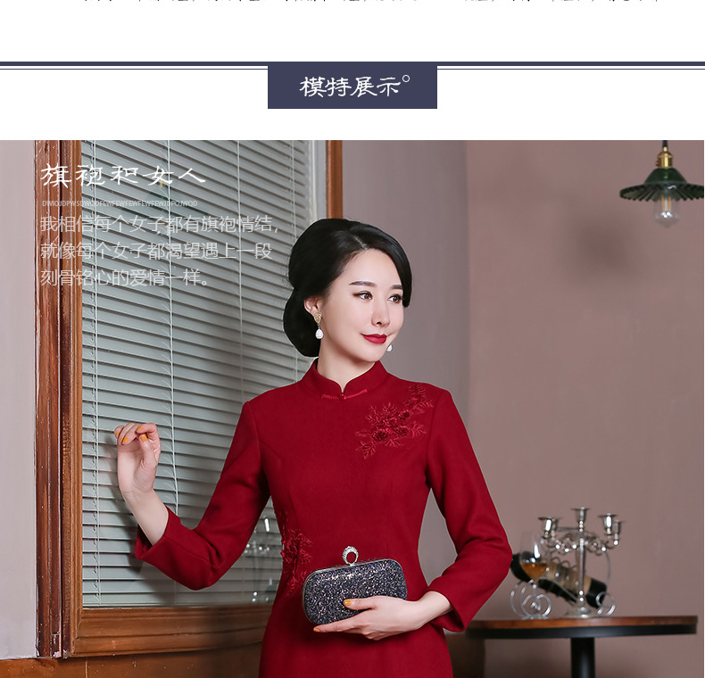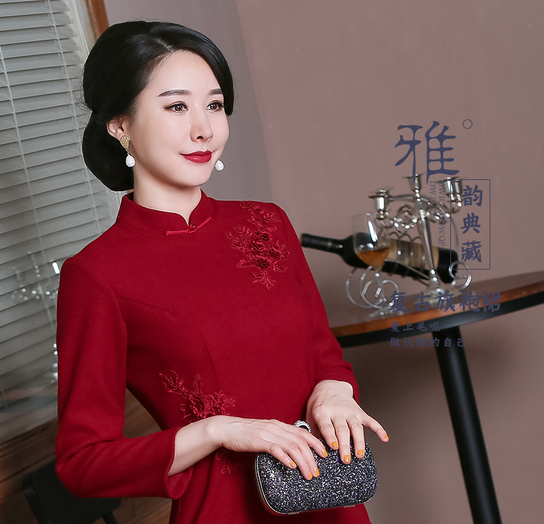 上海旗袍厂TZRY-H-AAAA秋冬季旗袍复古改良红色宴会主持旗袍时尚端庄