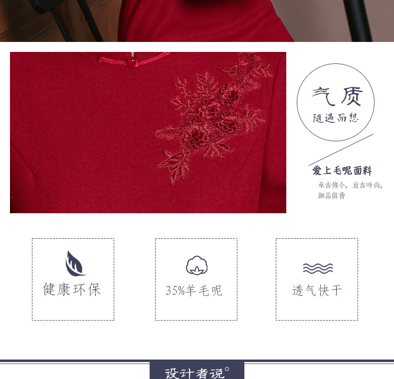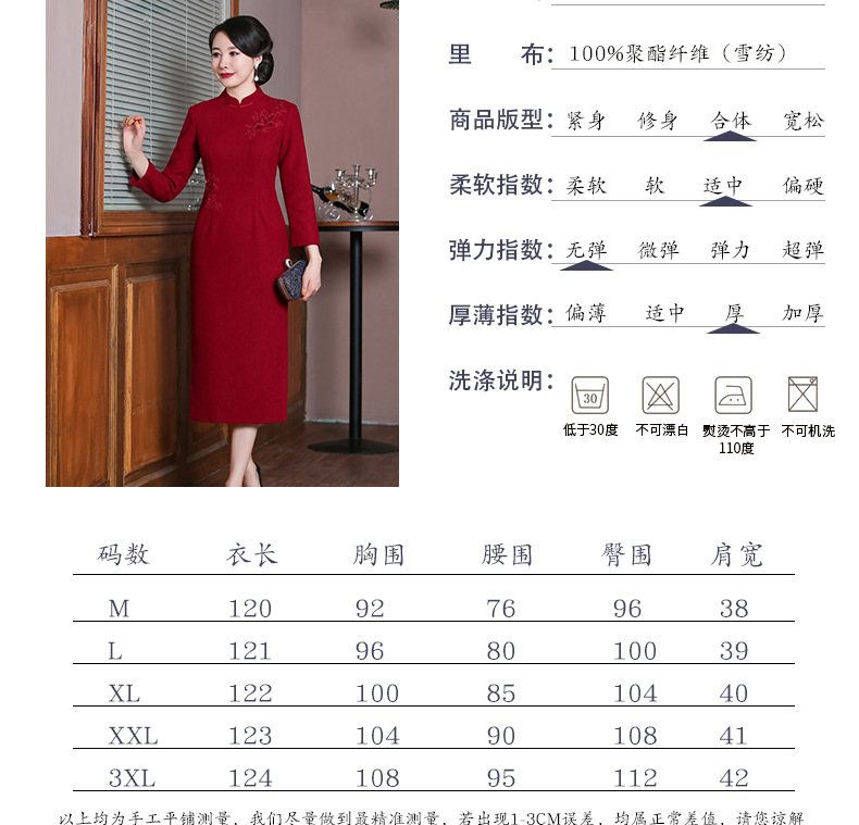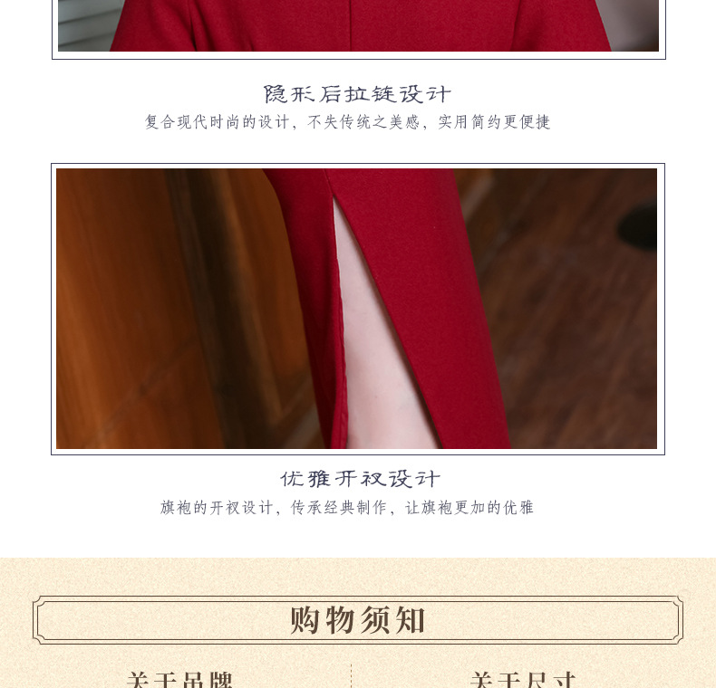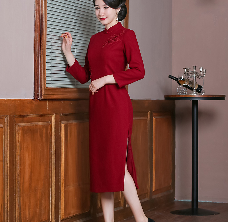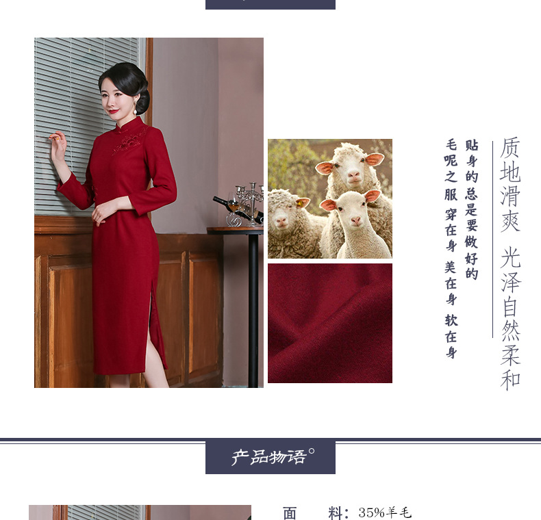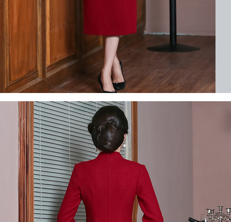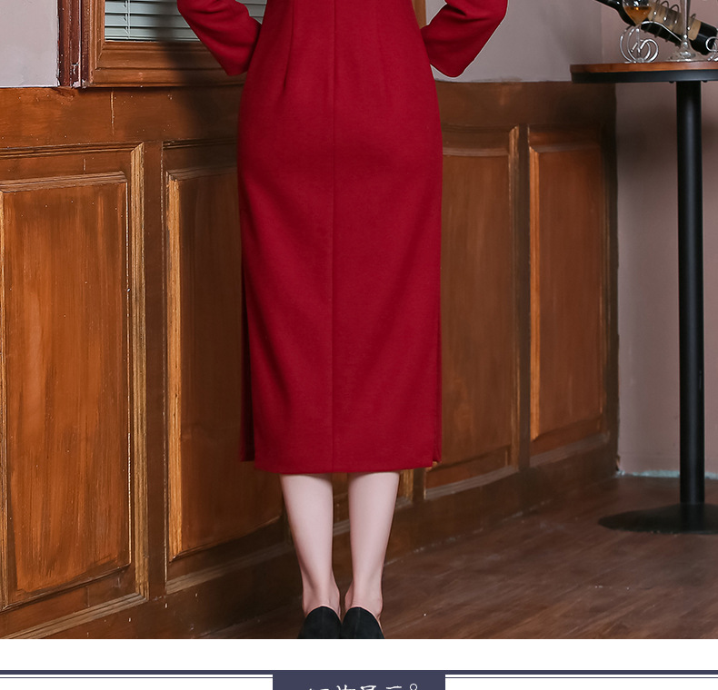 上海旗袍厂TZRY-H-AAAA秋冬季旗袍复古改良红色宴会主持旗袍时尚端庄