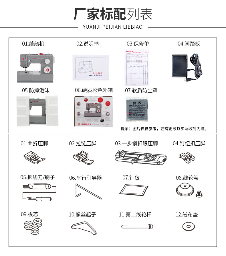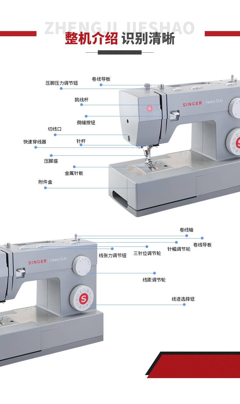 胜家缝纫机4432家用电动高速吃厚台式多功能锁边锁扣眼衣车SINGER
