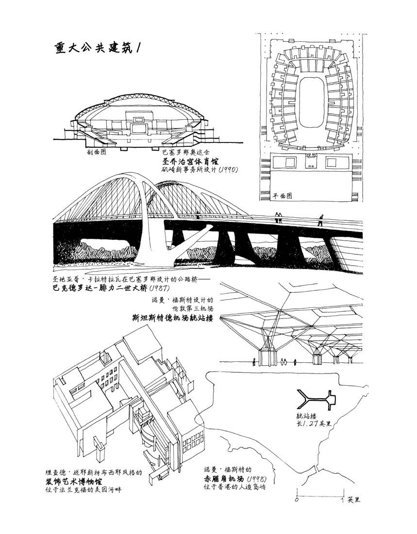 但是,海外资本一如既往源源不断地流入巴塞罗那以及类似的城市,建筑师们接踵而至。在这个过程中,一座高效的国际机场成为必不可少的重要工具。1992年,巴塞罗那重建了巴塞罗那机场,设计人是本地建筑师里卡多·波菲尔。诺曼·福斯特在斯坦斯特德设计了伦敦的第三座机场(1990年)和香港赤腊角机场(1996年)。赤腊角机场建筑面积超50万平方米,是有史以来建成的屋顶覆盖面积最大的空间。与伦佐·皮亚诺设计的日本大阪关西机场(1994年)一样,它也是建于从附近海域填海造地的基址之上,势必要解决由此引发的额外问题。两者的设计均采用了国际化风格,但日本建筑师黑川纪章设计的吉隆坡新机场(1998年)以地方风格取胜,让游客一下飞机就能够感受到马来西亚的文化特色。斯坦斯特德机场可能是第一座现代化机场,其屋顶采用了轻型格网状结构和玻璃,让光线进入,给人通风良好和空间开敞的印象。福斯特在设计香港赤腊角机场时采用了相同的原理。斯图加特机场(1992年)和巴黎戴高乐机场高速列车中转站(1994年)是该设计原理的进一步发展。前者带有树状屋顶结构,由迈恩哈德·冯·格尔肯(Meinhard von Gerken)设计,后者采用了复杂的格网状结构,由保罗·安德鲁(Paul Andreu)与让-玛丽·迪蒂耶尔(Jean-Marie Duthilleul)合作设计。