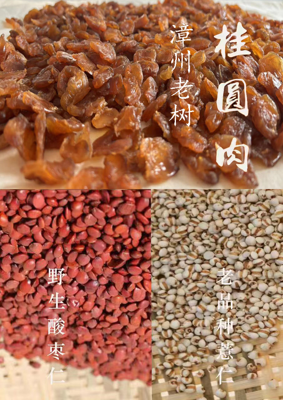 野生酸枣仁来自河北赞皇县,自然生长,无人为干预,铜锅炒制后打粉。薏仁来自云南的农户熊杰锋,薏米耐旱、耐虫,不耐肥,所以种植过程中不使用包括生物来源的任何农药,除了烧草木灰不使用任何肥料。蒸制时笼屉中铺的大米也同样来自熊杰锋,是在云南生态种植的老品种大米。
