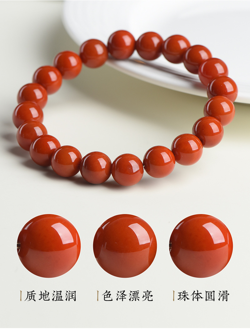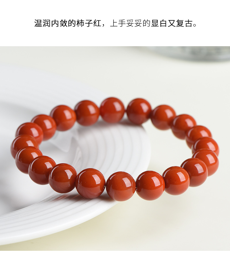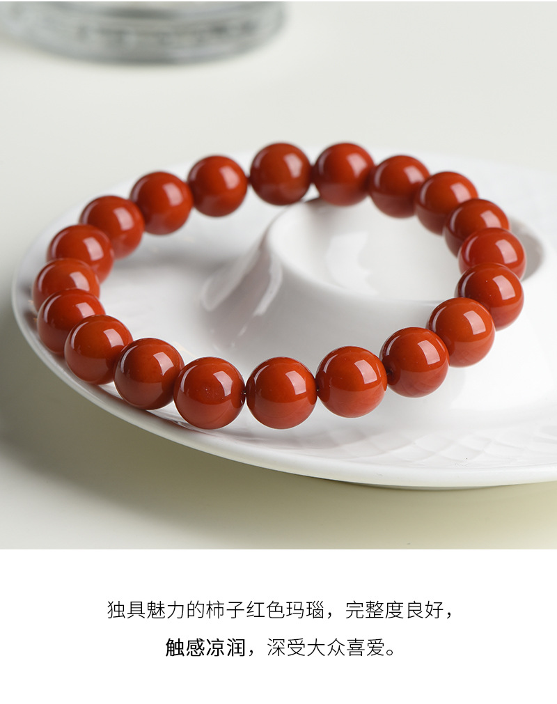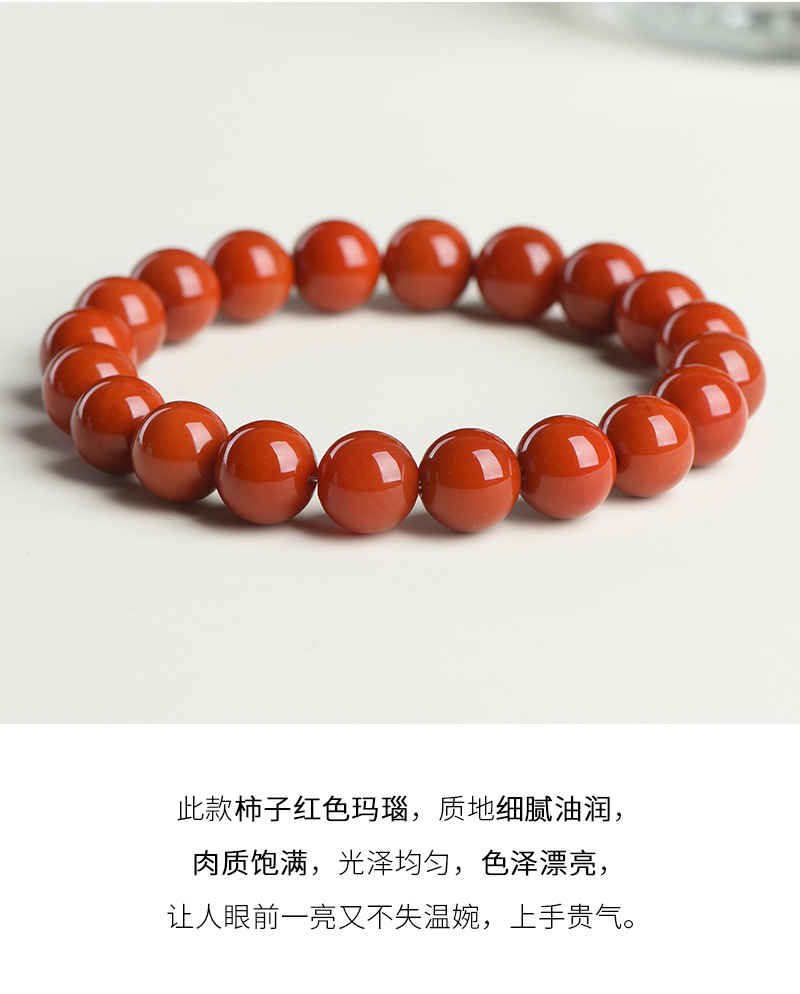 丁摩 正品天然柿子红色玛瑙手串老料红玛瑙圆珠手链5ZF-1121