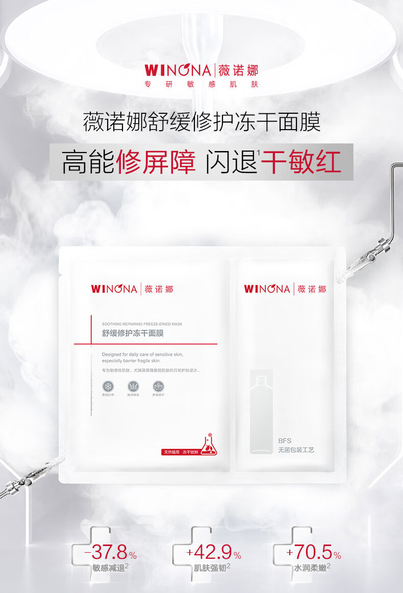 薇诺娜舒缓修护冻干面膜6片装敏肌补水保湿改善泛红干痒