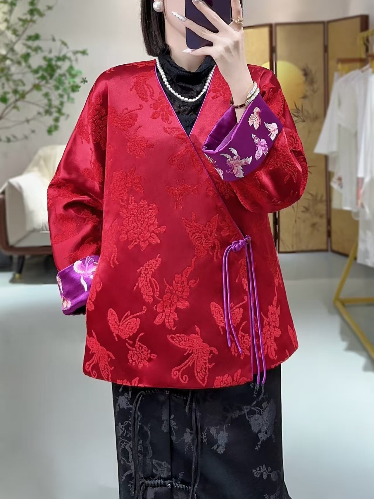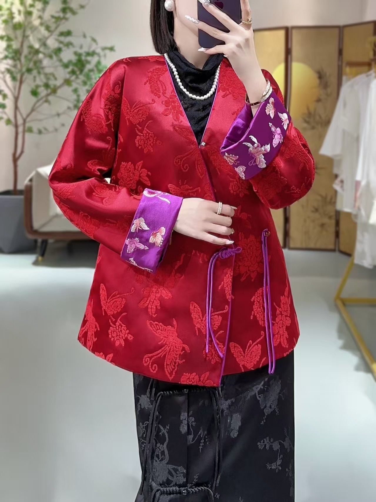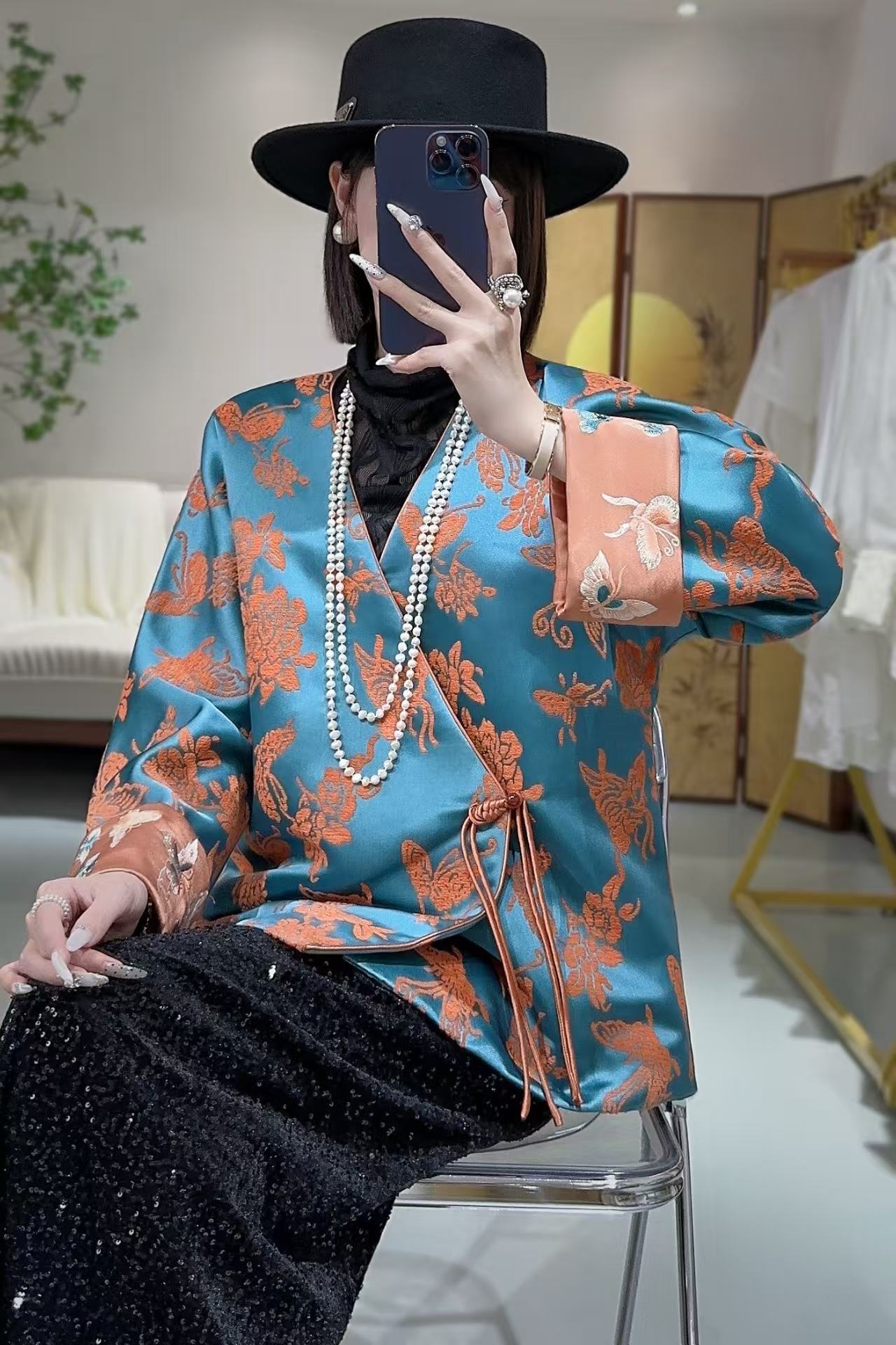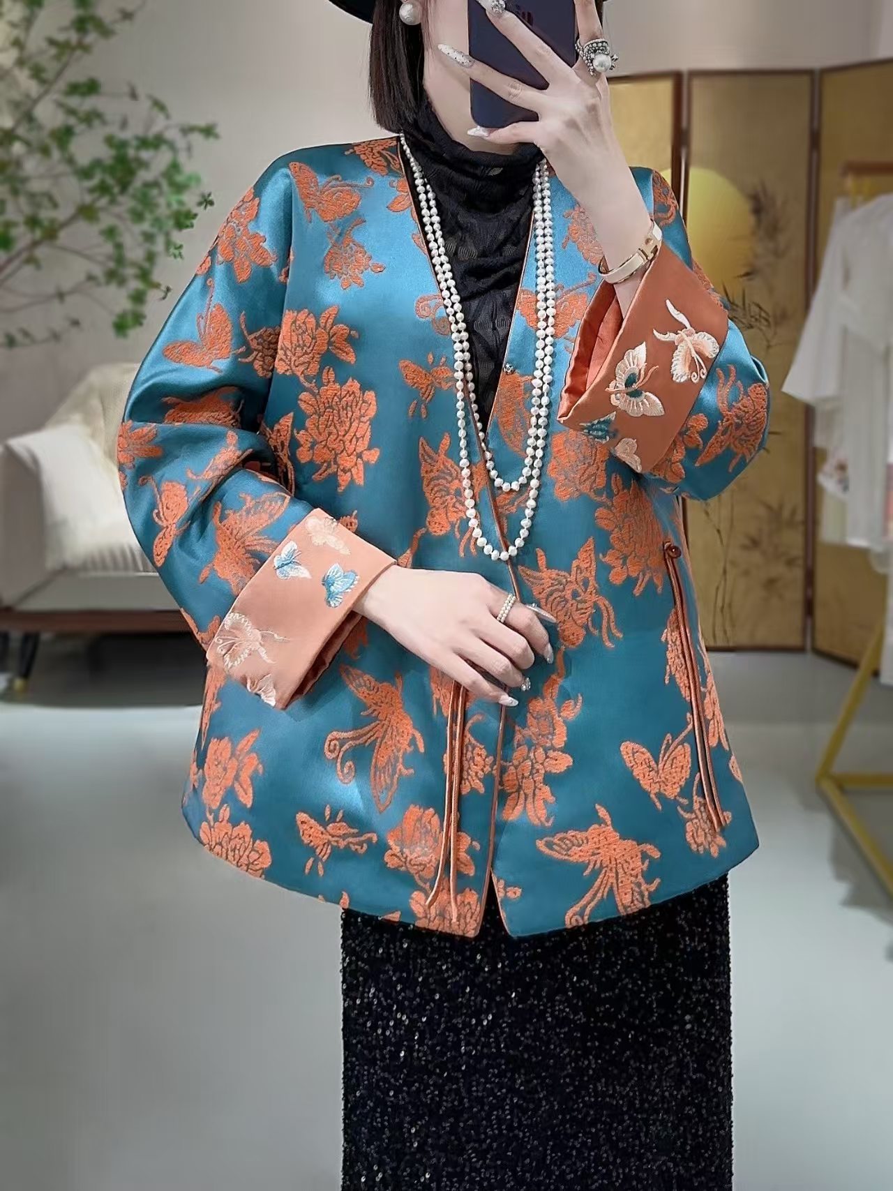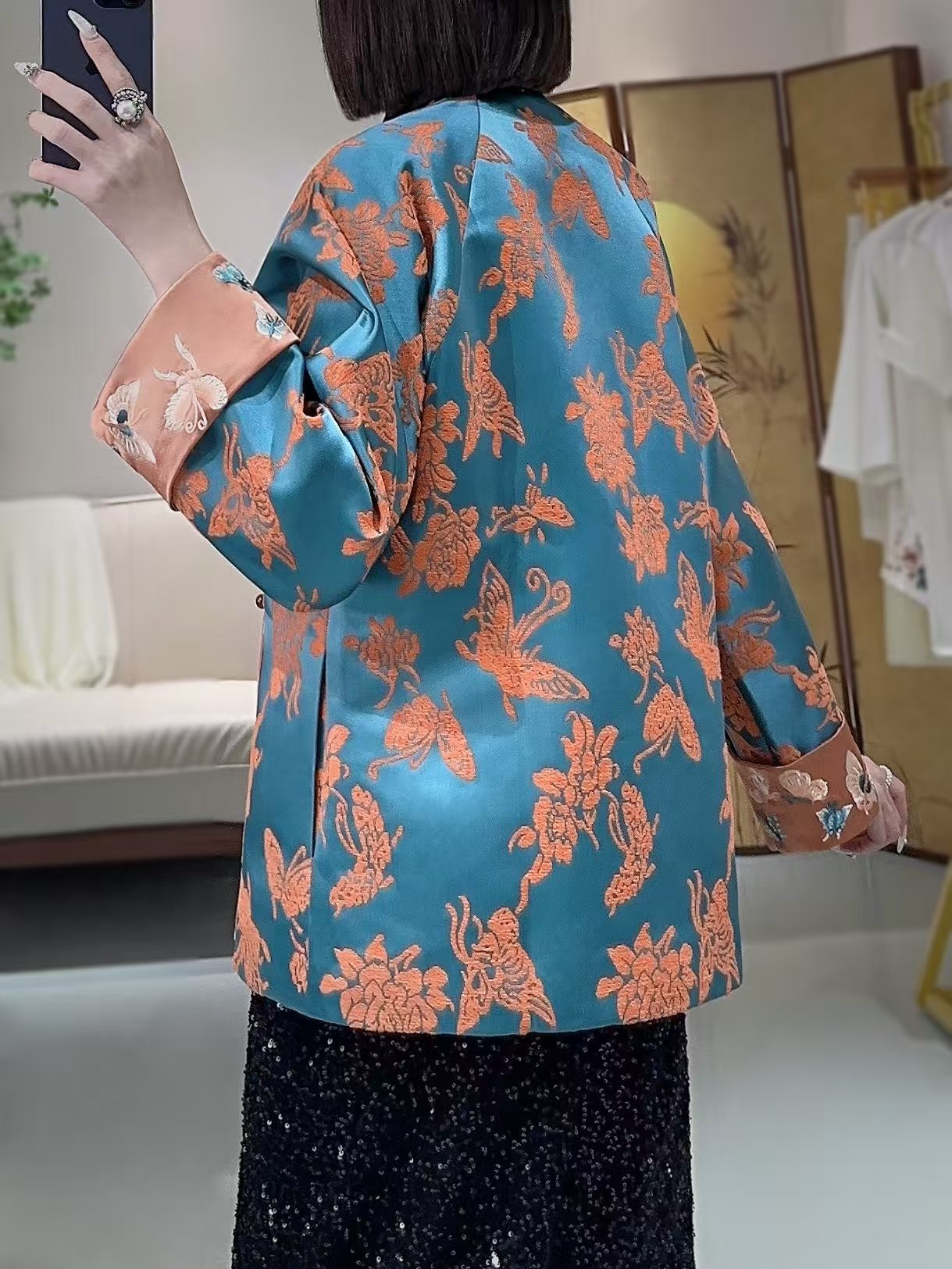 春新款漳绒缎蝶恋花提花百搭新中式斜襟外套KDS-2610