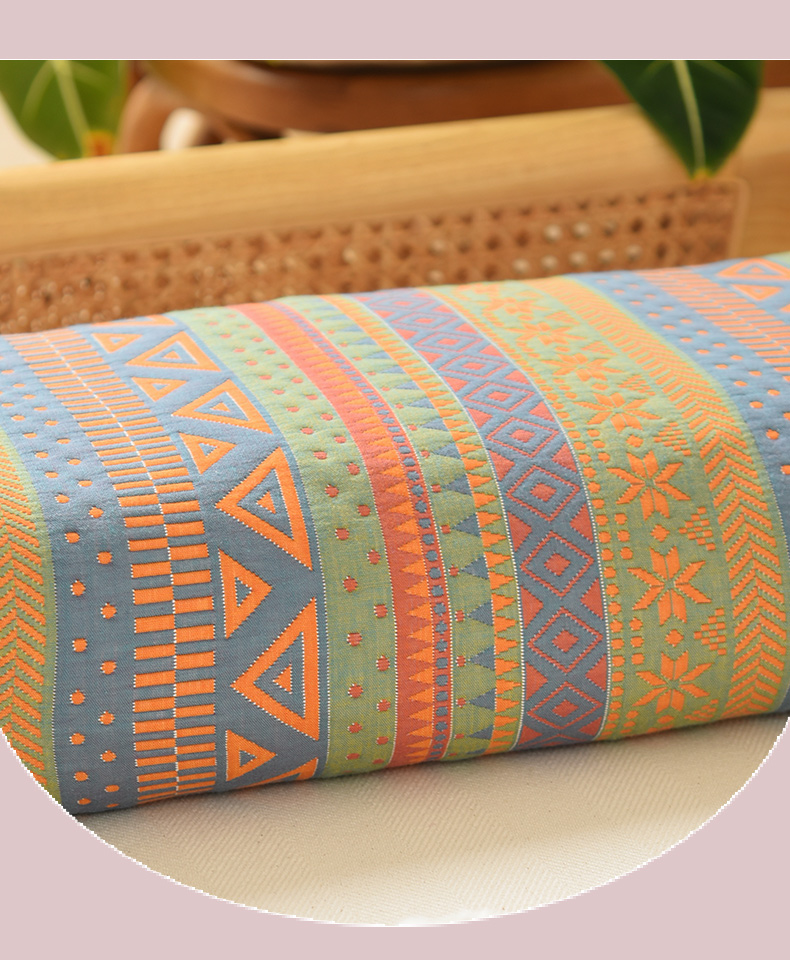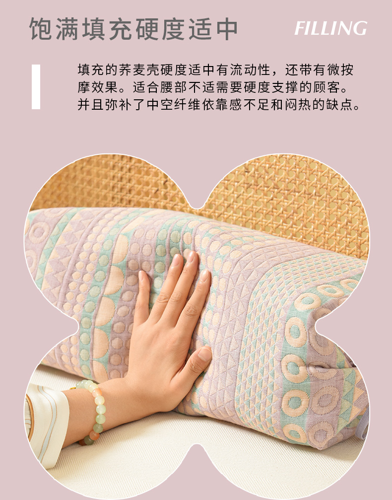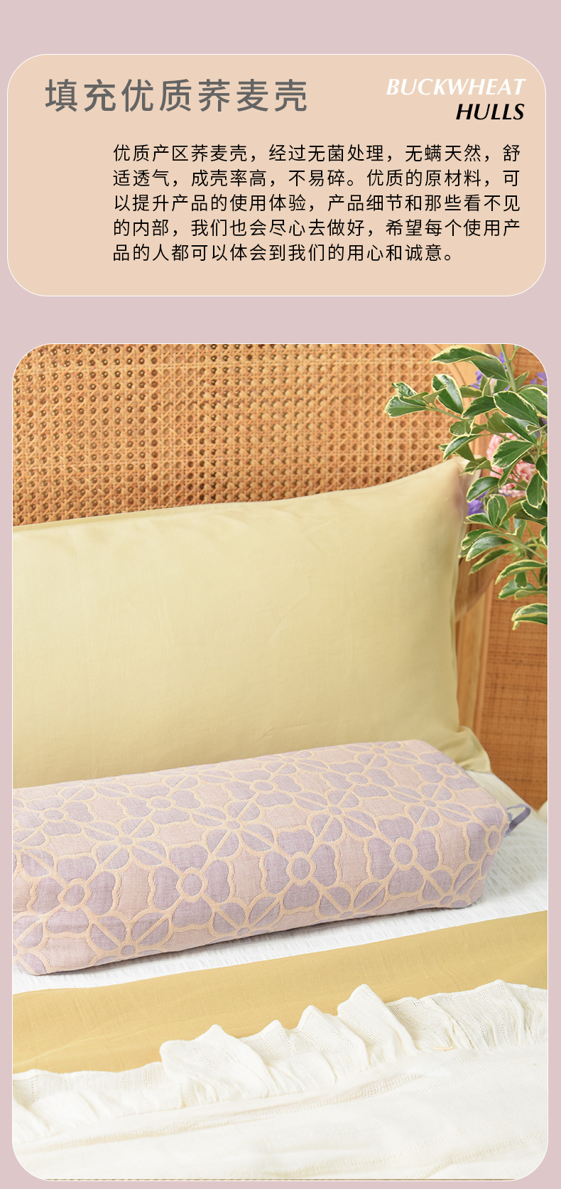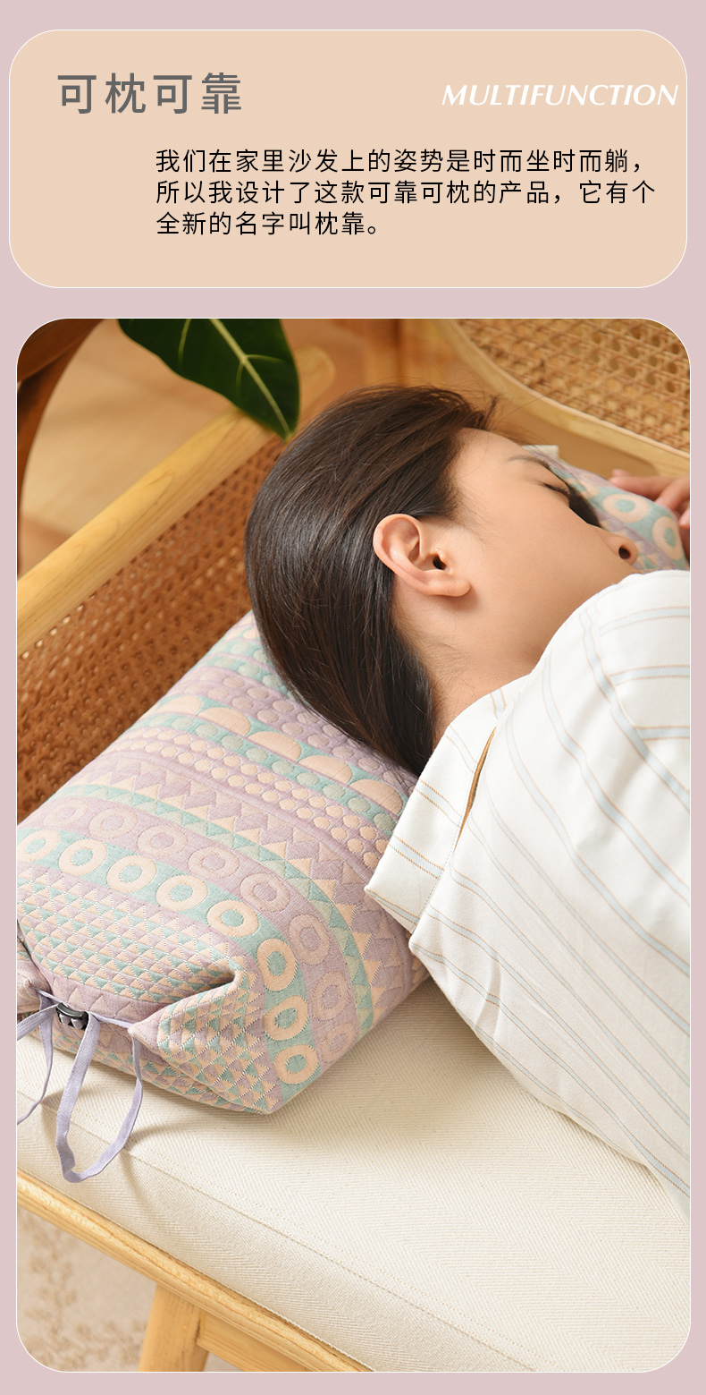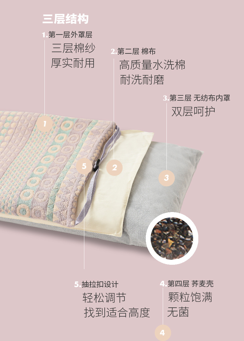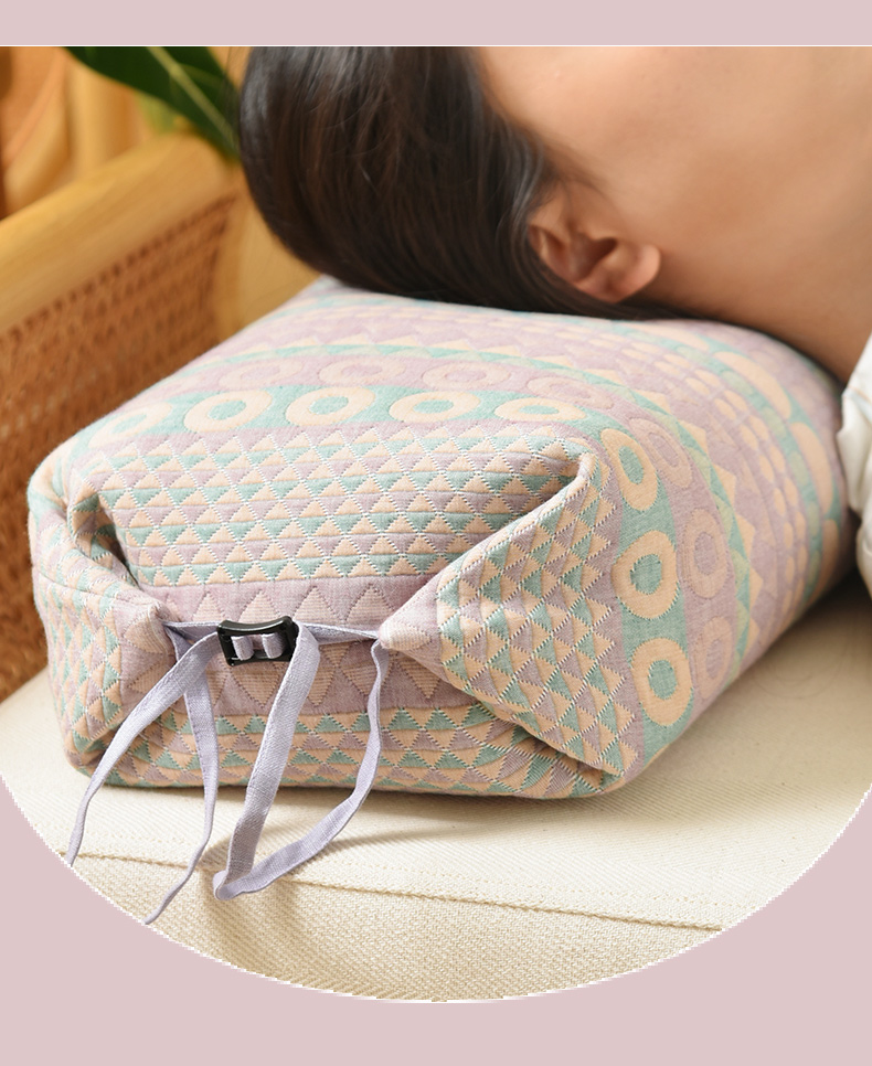 撞色几何系列多功能便携调节枕荞麦壳枕头纯棉成人可调节护颈枕