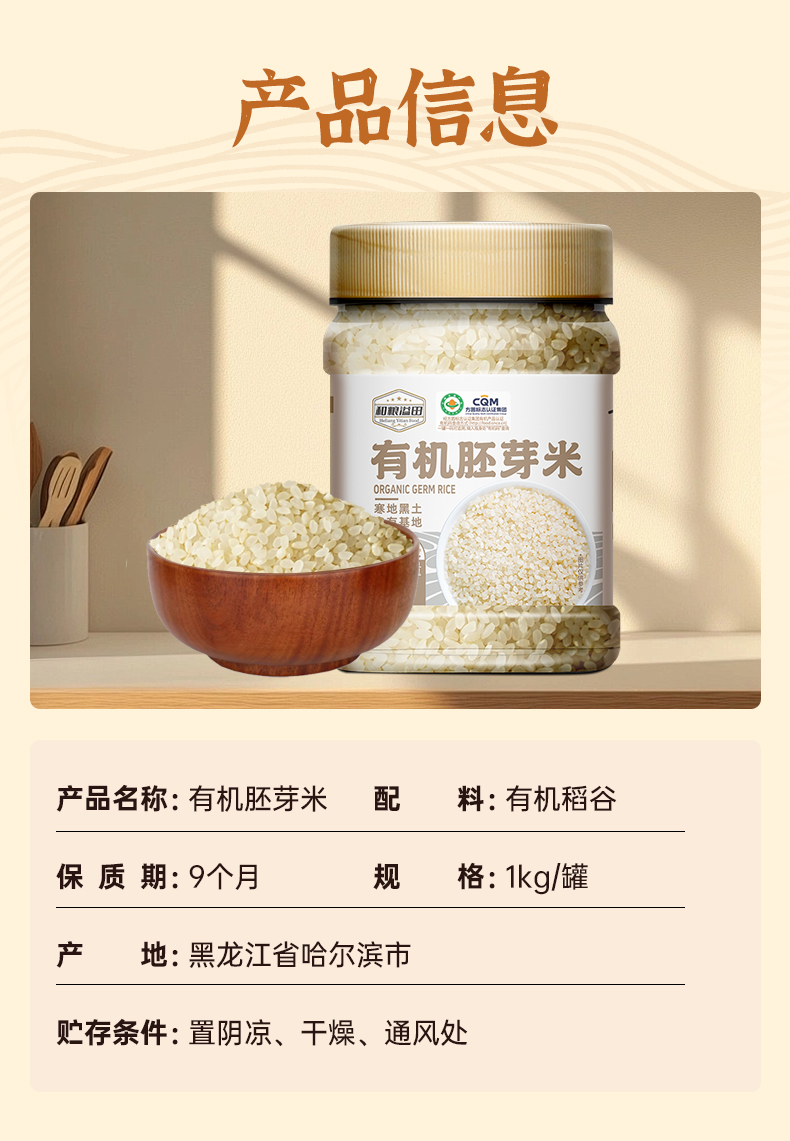 和粮溢田 有机胚芽米1kg