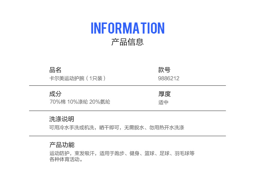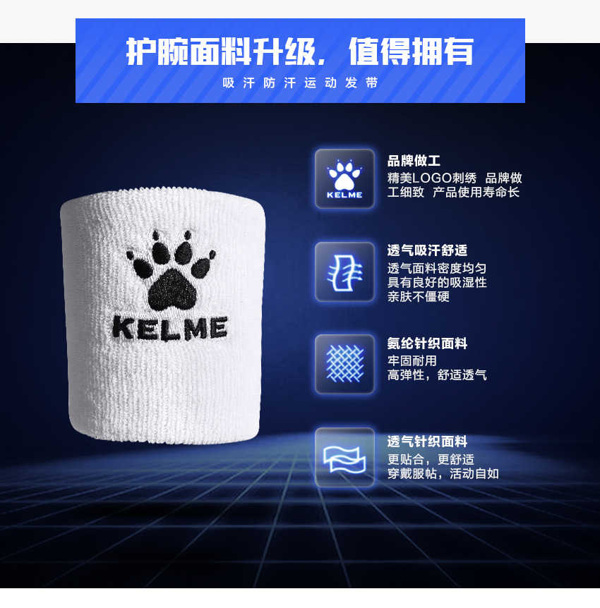卡尔美护腕男女士运动扭伤篮球健身排球吸汗擦汗巾护手腕套弹性