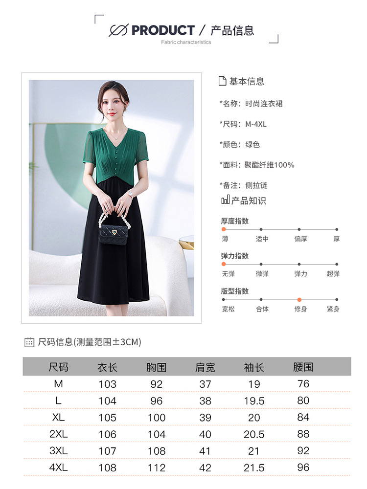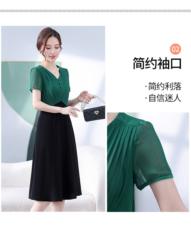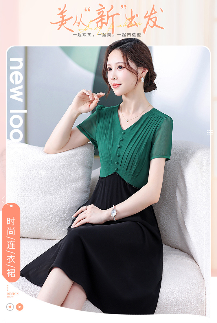 拼色洋气假两件时尚雪纺裙,短袖V领显瘦通勤连衣裙QYM-DFN-A3517-L