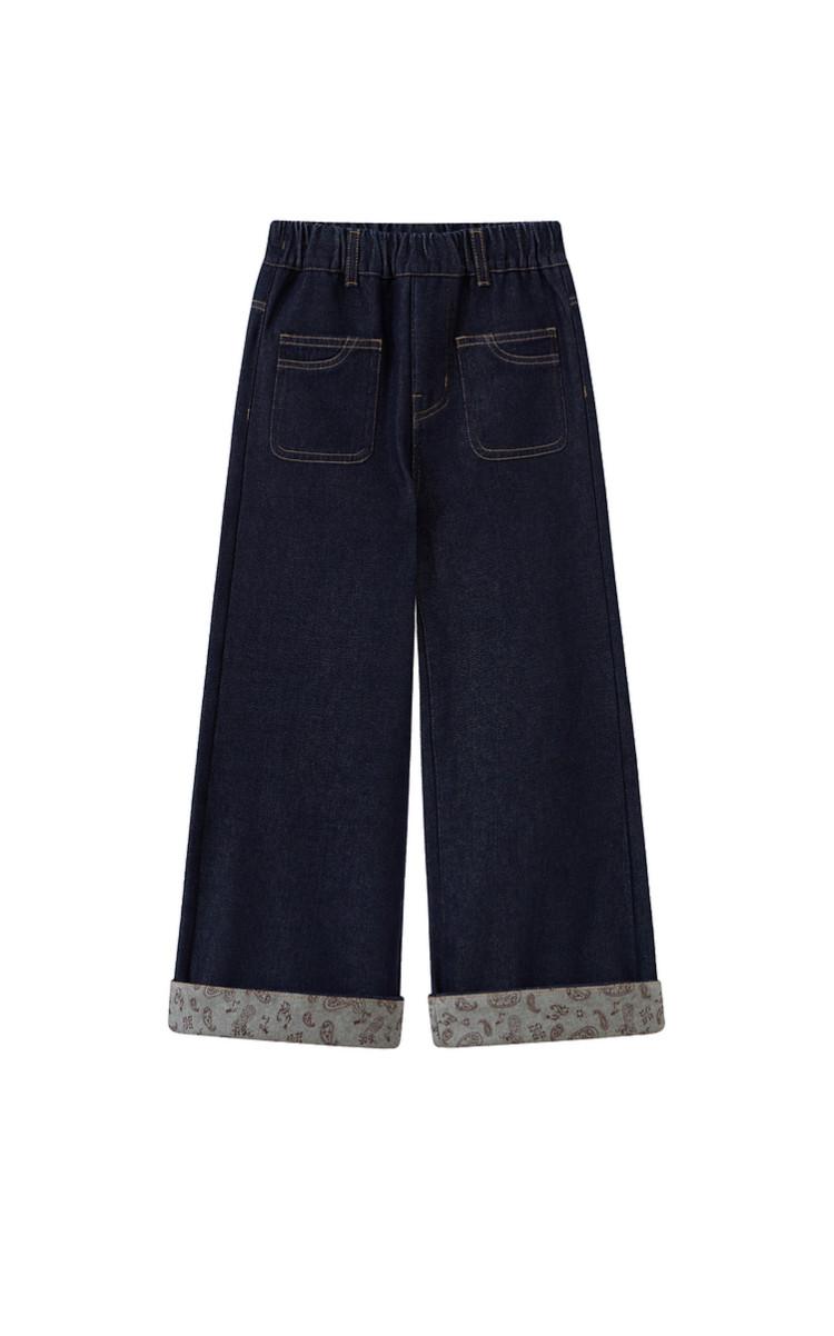 【MQD】童装女大童冬季新款儿童学院风复古加绒厚款保暖百搭牛仔裤