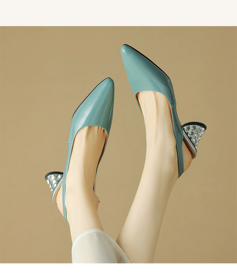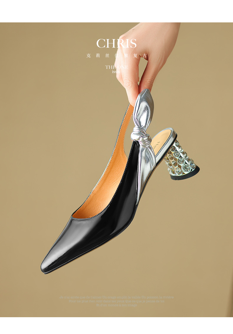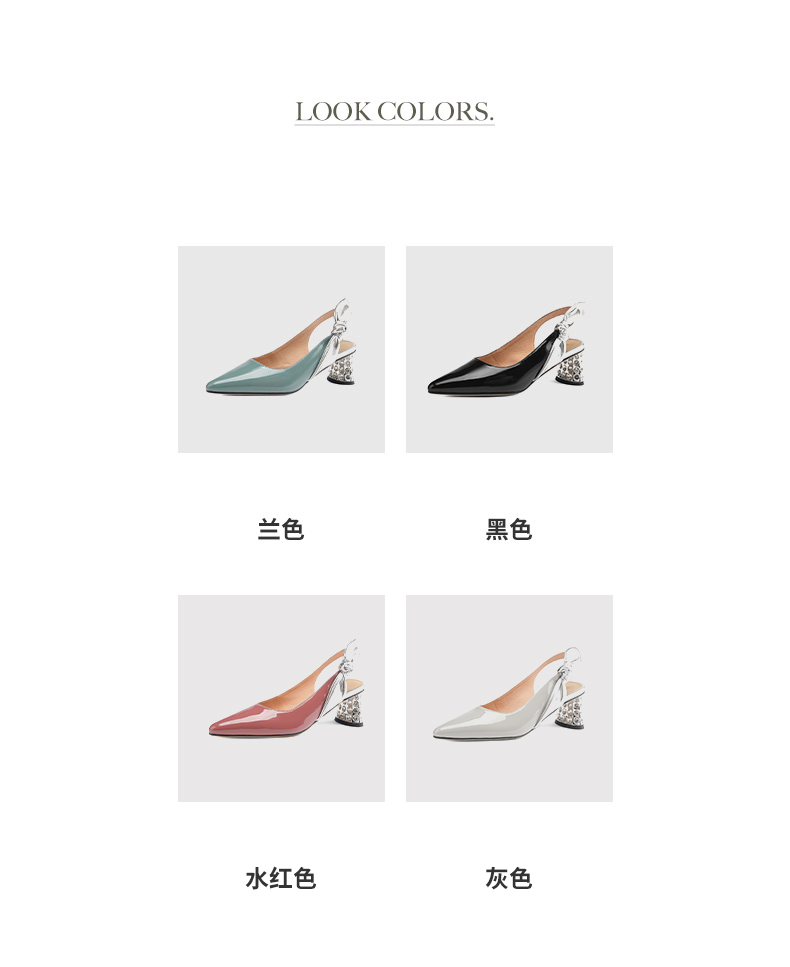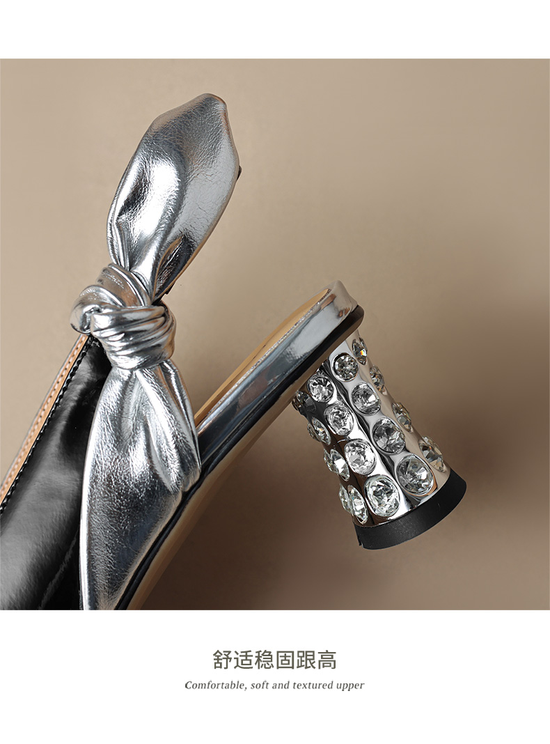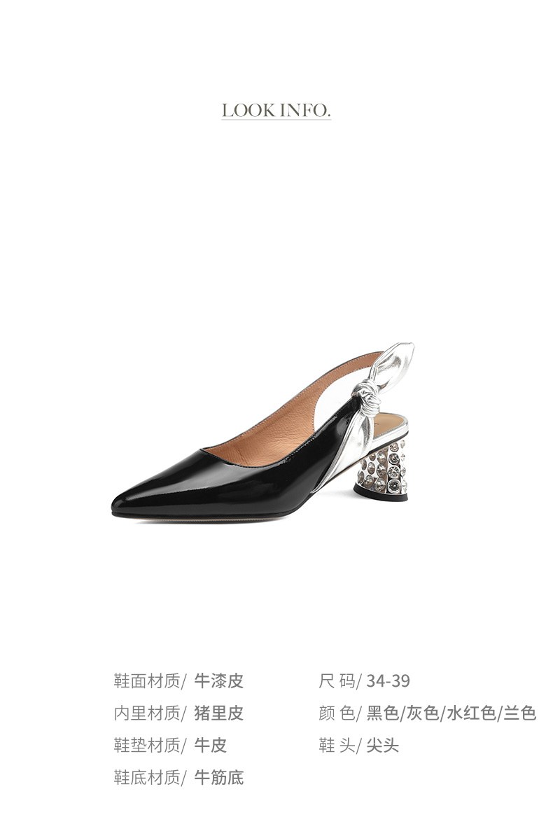 夏季新款,撞色真皮粗跟水钻包头凉鞋LD-6337