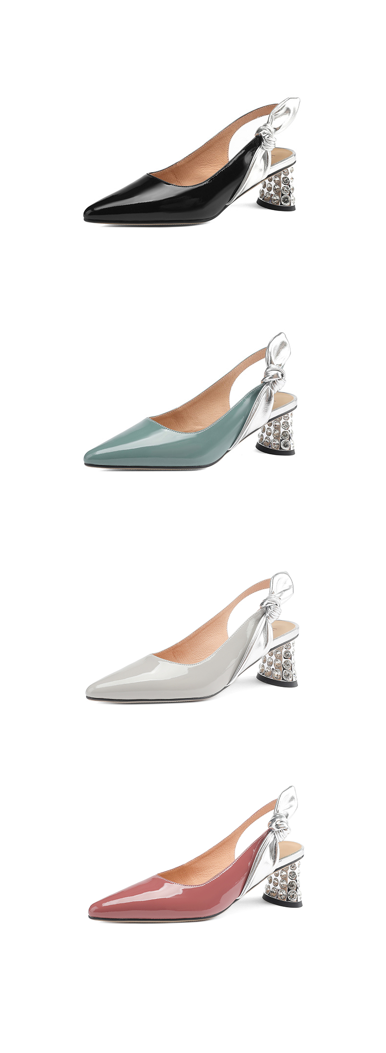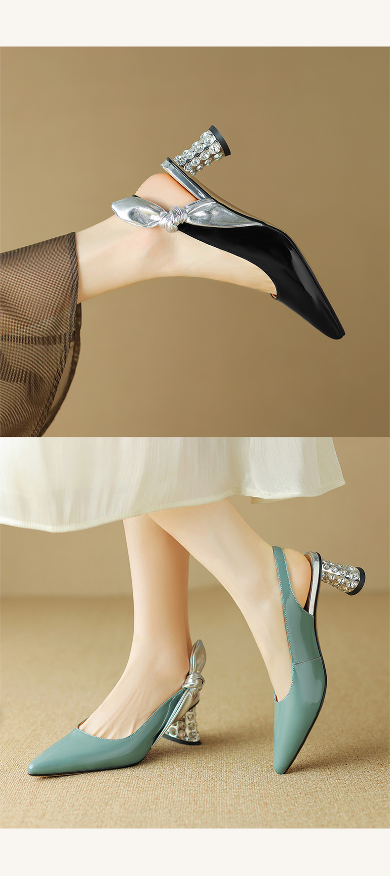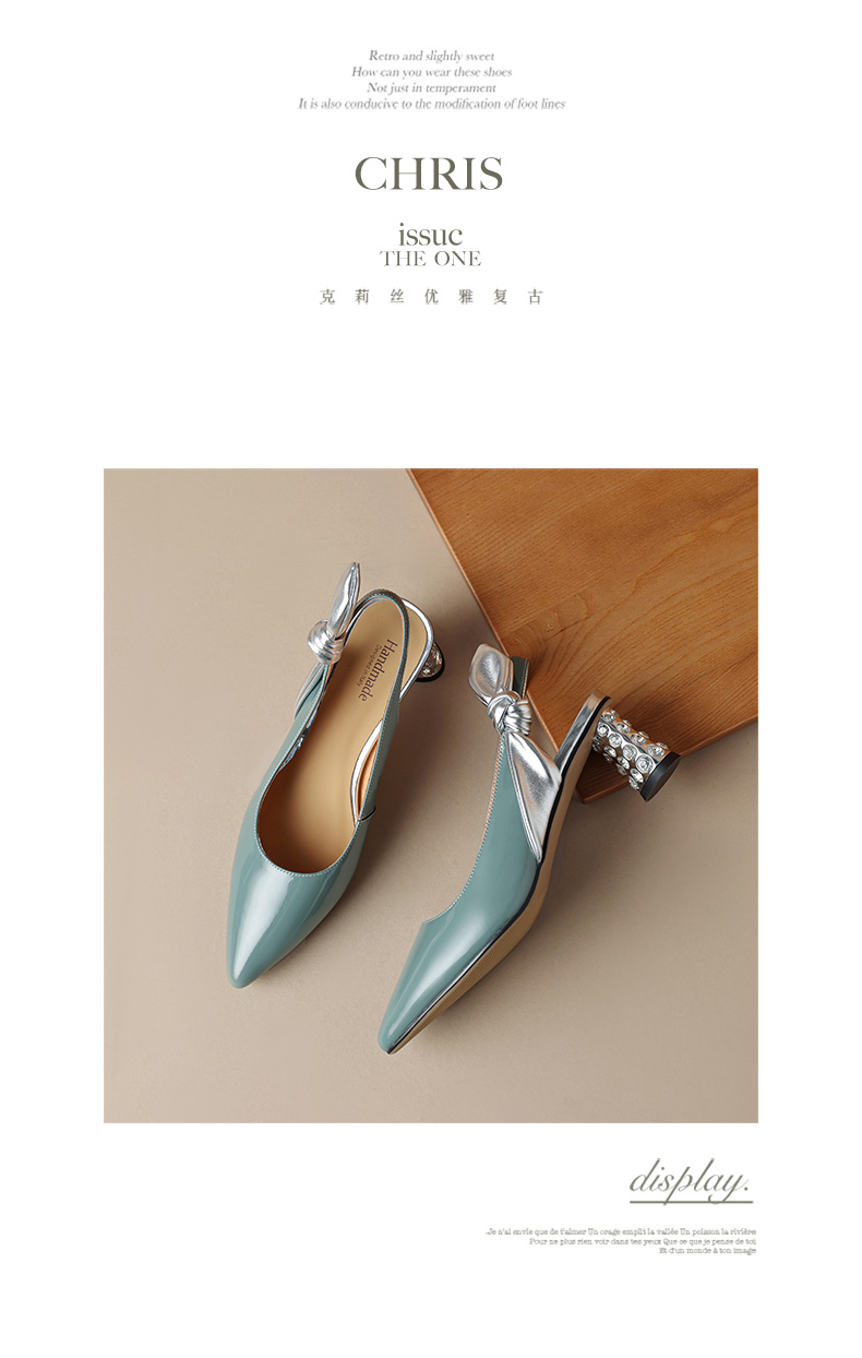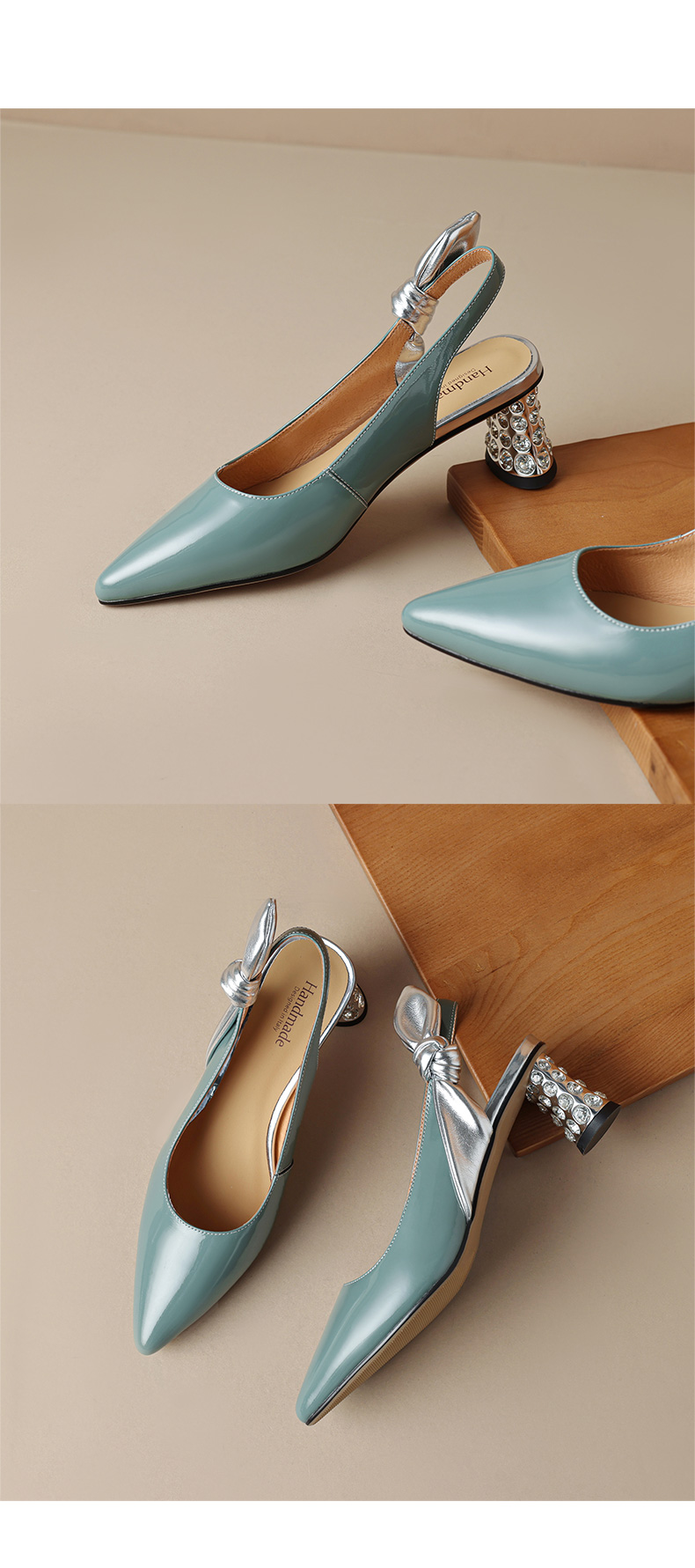 夏季新款,撞色真皮粗跟水钻包头凉鞋LD-6337