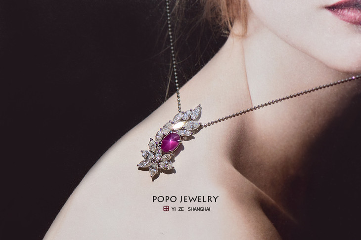 PT900星光红宝石吊坠