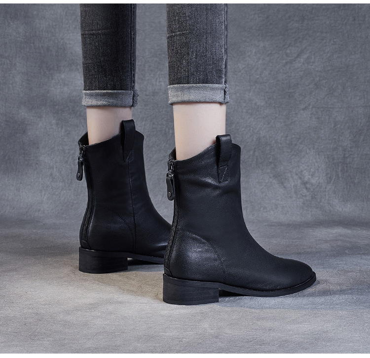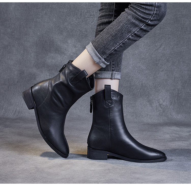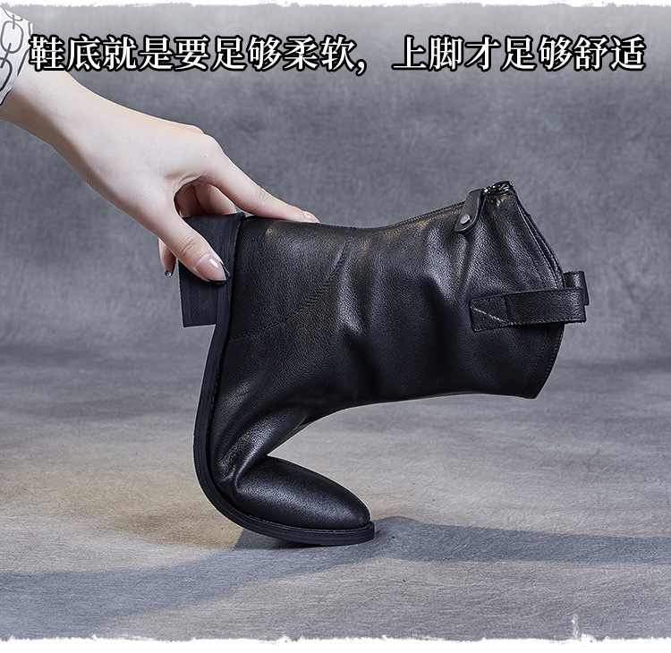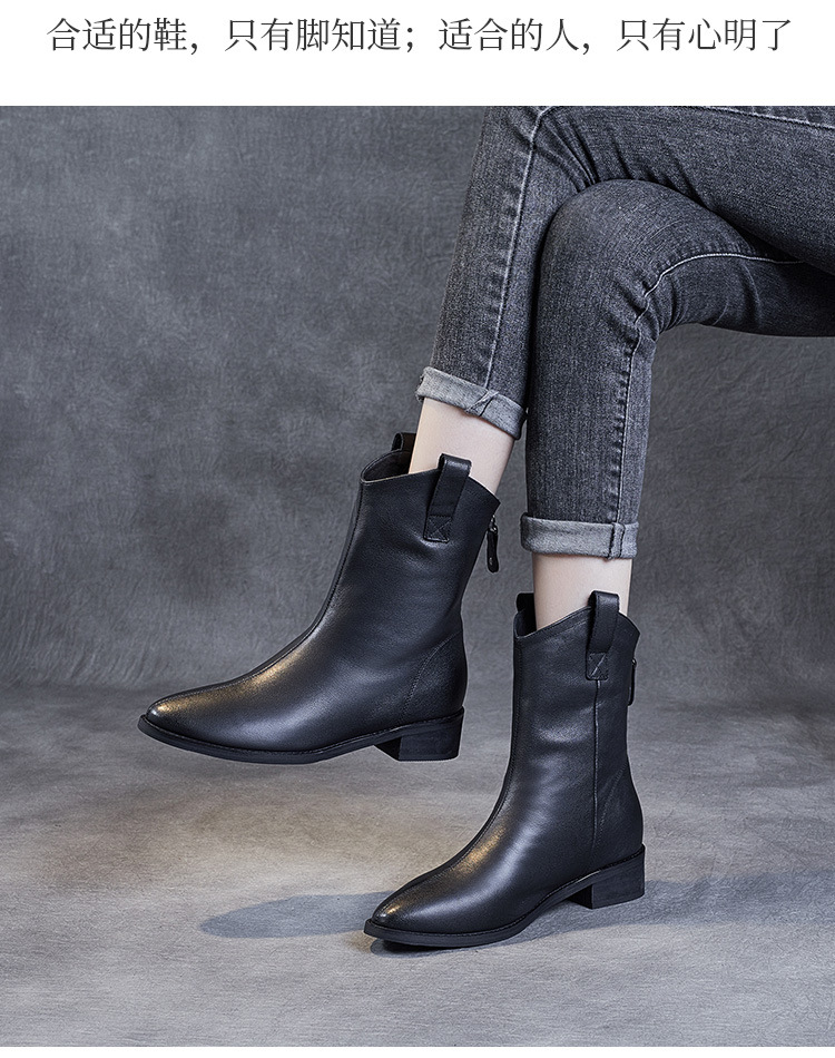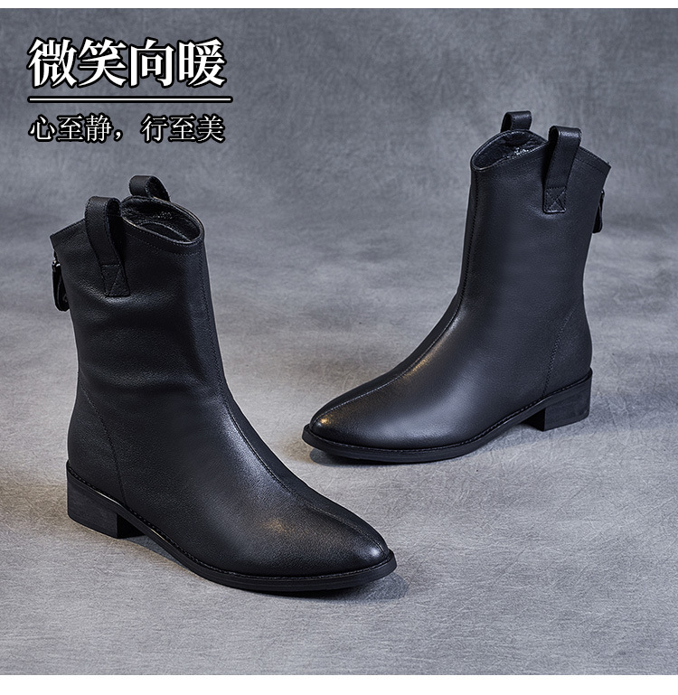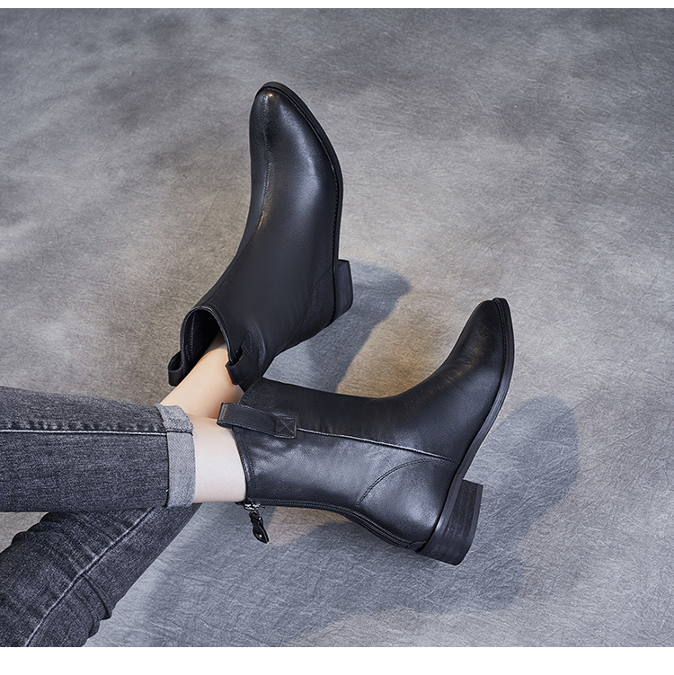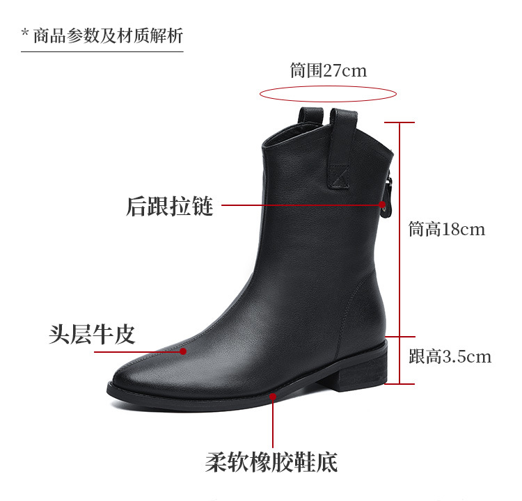 潮ins酷英伦风,尖头瘦切尔西马丁靴气质头层牛皮靴ZM-MN1818