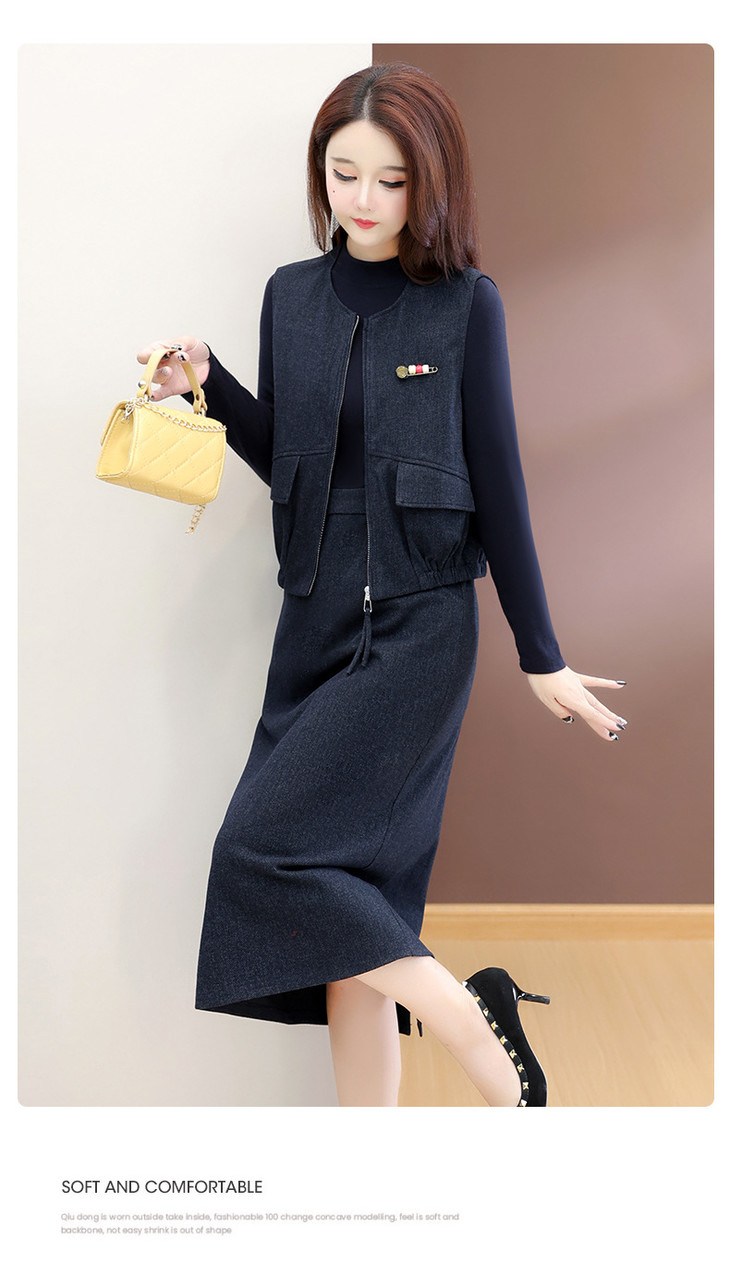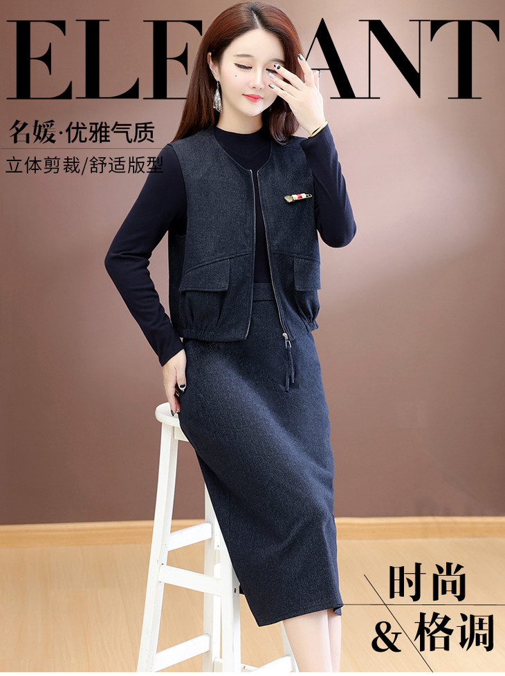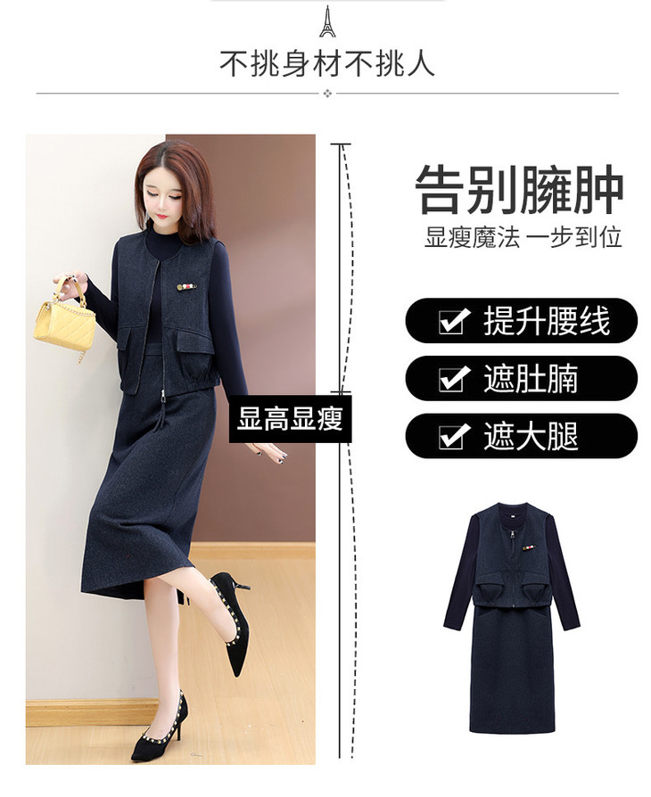 时尚马甲两件套连衣裙,韩版洋气小香风女装裙子QYM-XQD54C2516