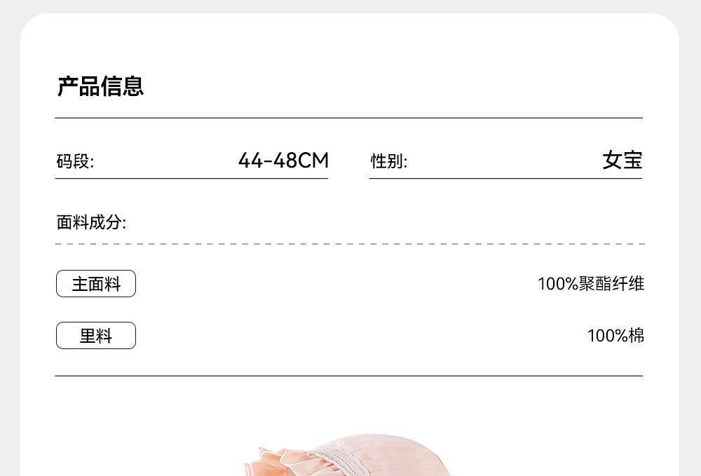 【商场同款】英氏婴儿帽子春夏可爱女宝宝贴面帽柔软透气婴儿帽子