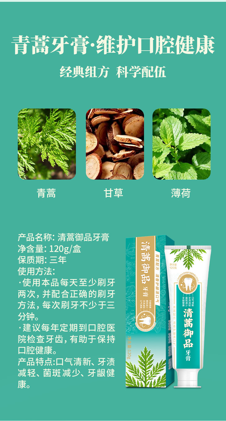 清蒿立美日化礼盒 清蒿御品牙膏120g*1+清蒿立美牙线棒50支/盒*1+清蒿立美青蒿漱口液(薄荷香型)230ml*1+清蒿立美电动牙刷*1