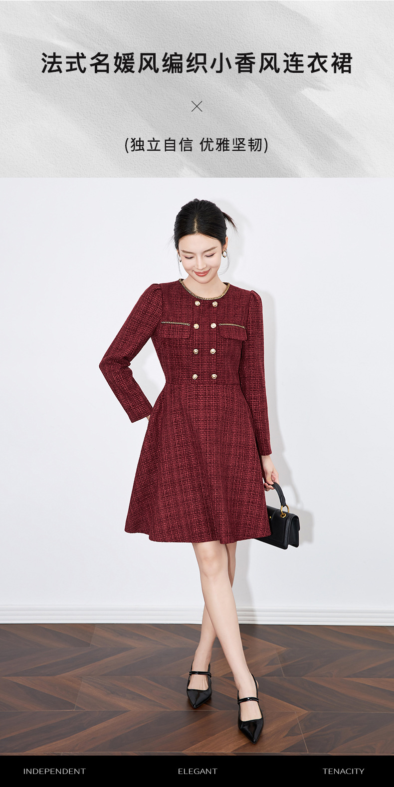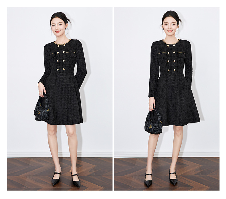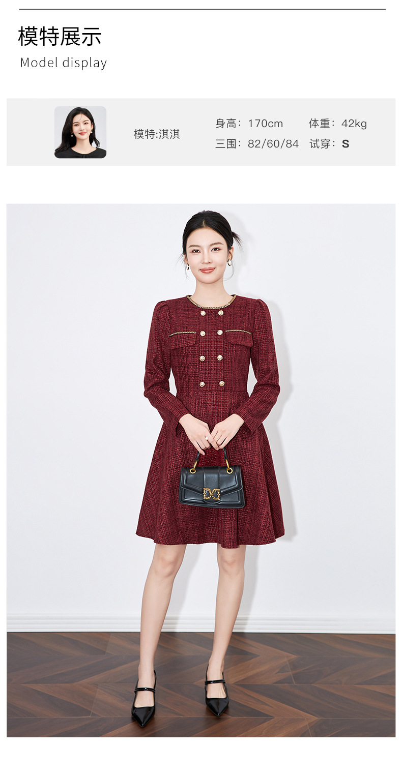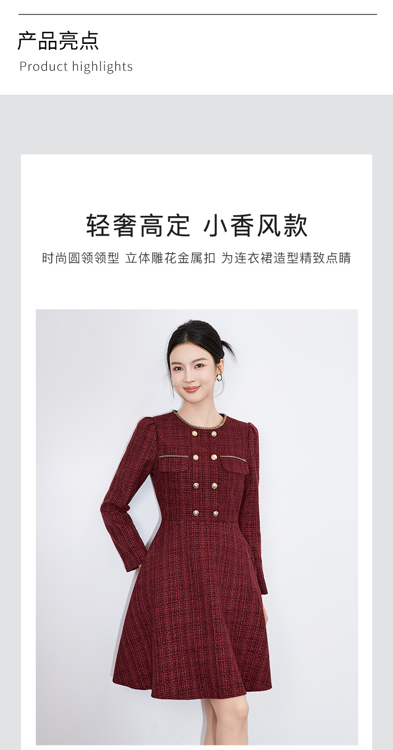 【高货wl】全新升级【铂金会员339/天猫459/差价120】(14553)洛诗琳秋冬小香风名媛气质重工圆领双排扣长袖连衣裙