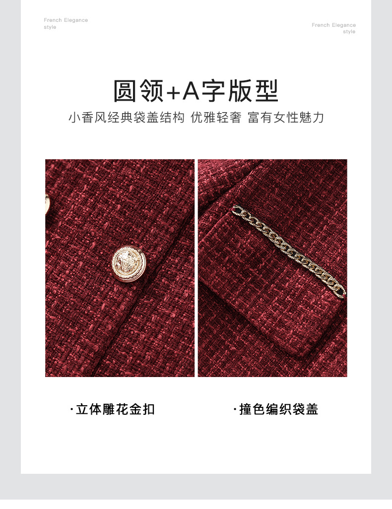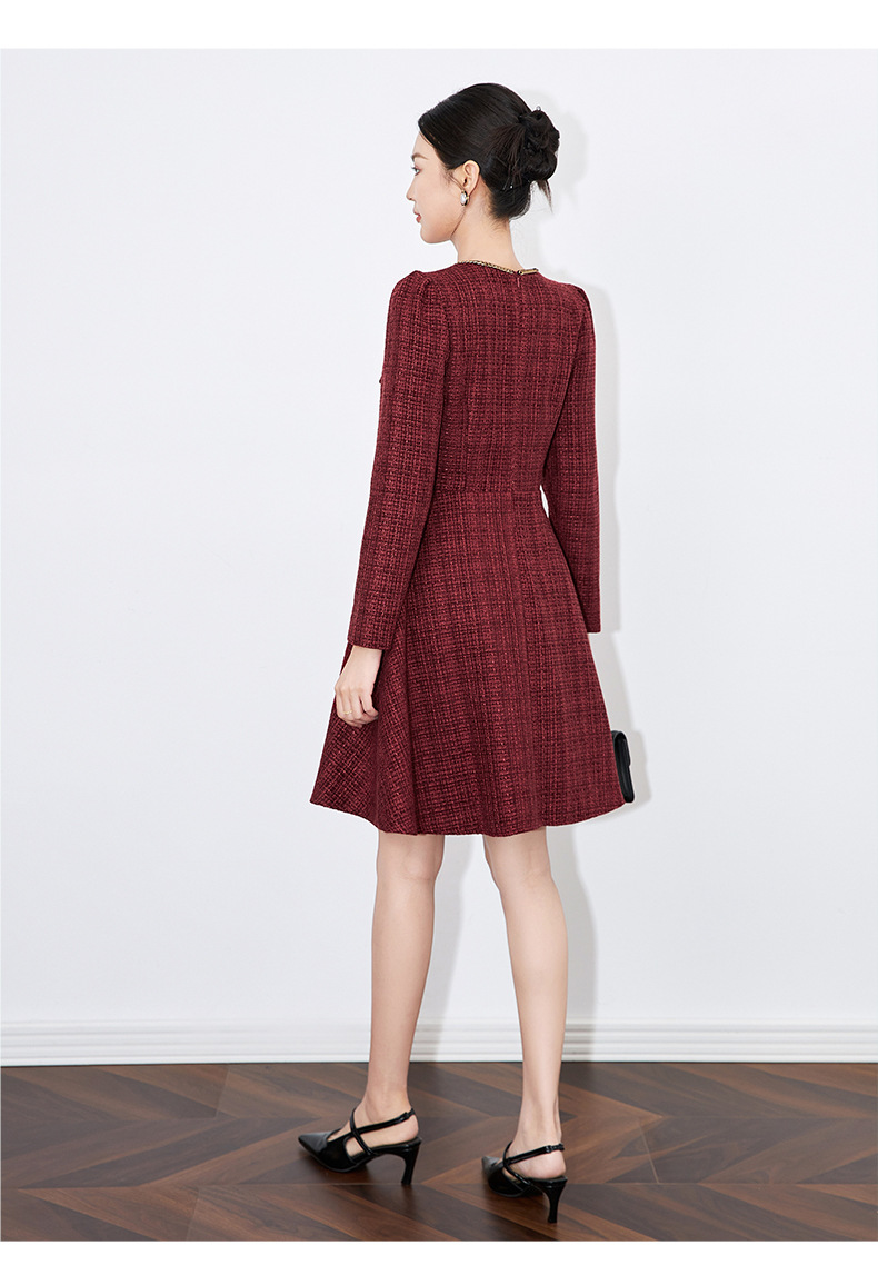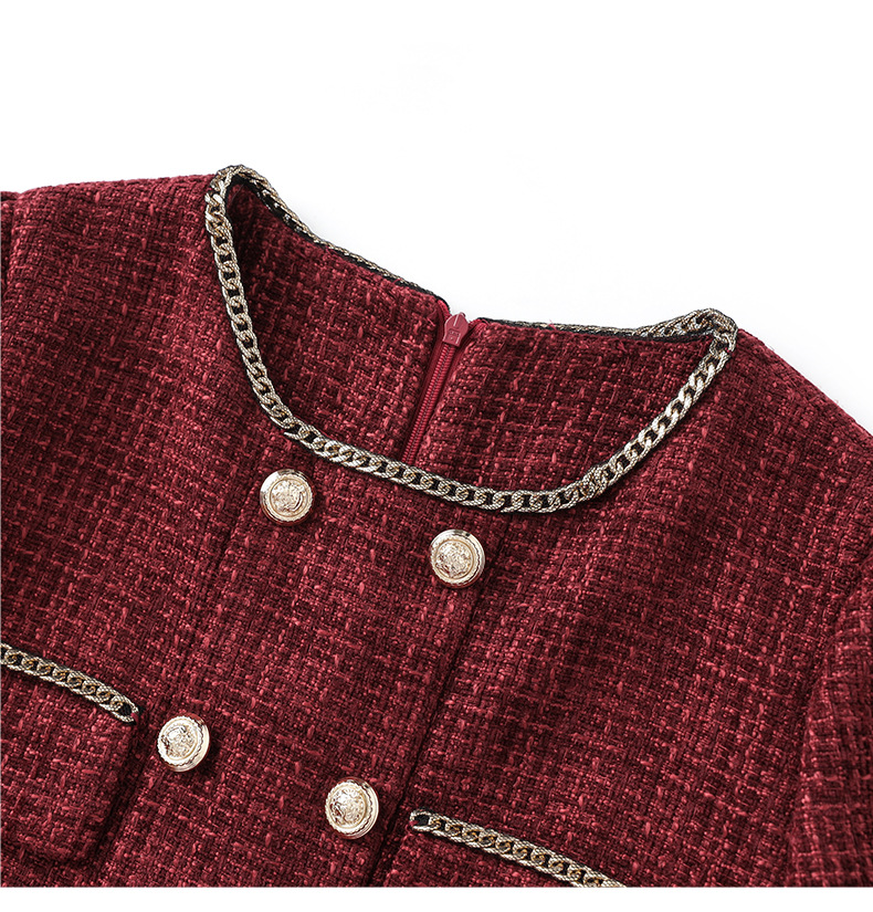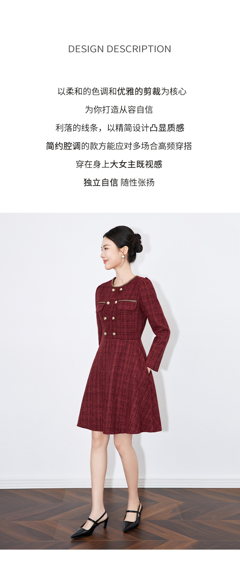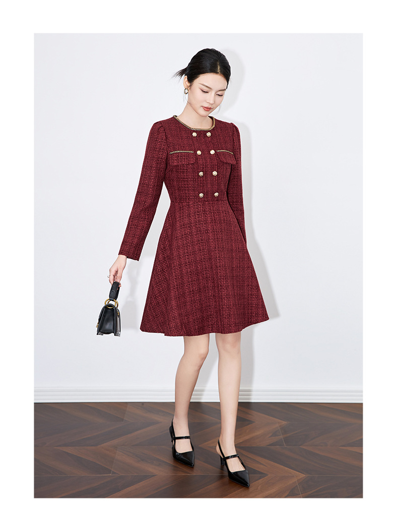 【高货wl】全新升级【铂金会员339/天猫459/差价120】(14553)洛诗琳秋冬小香风名媛气质重工圆领双排扣长袖连衣裙