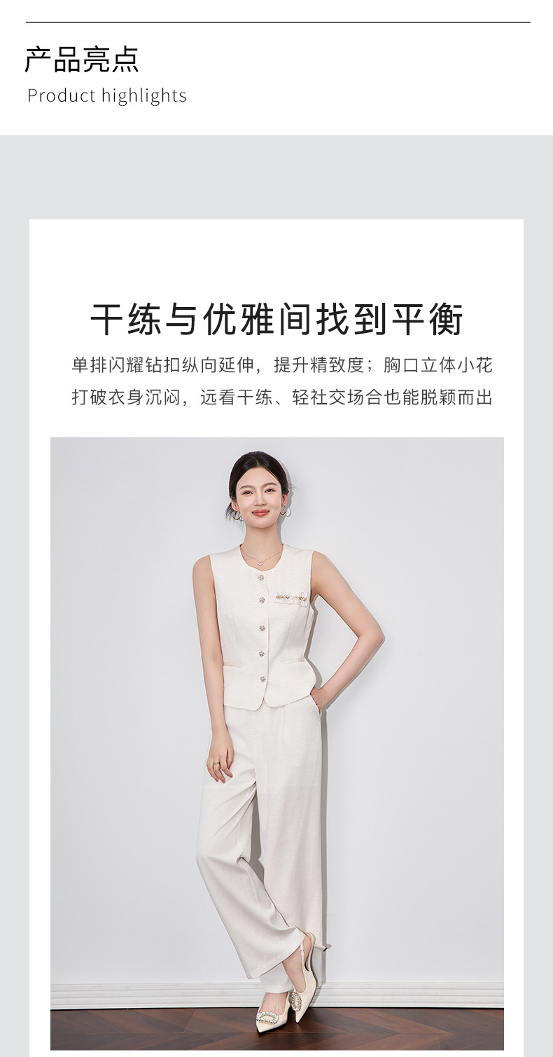 「高货wl」全新升级【铂金会员413/天猫559/差价146】(99104)洛诗琳气质高级感背心马甲上衣时尚休闲直筒裤两件套女