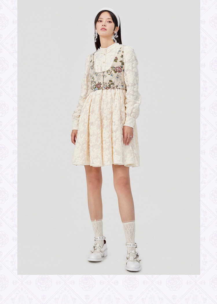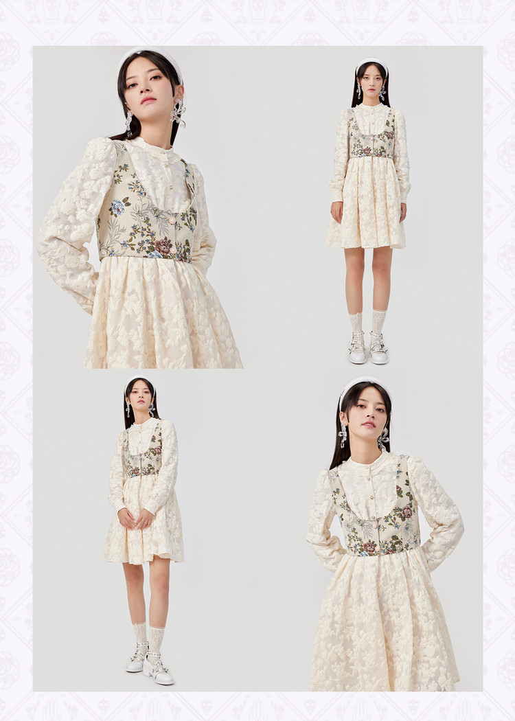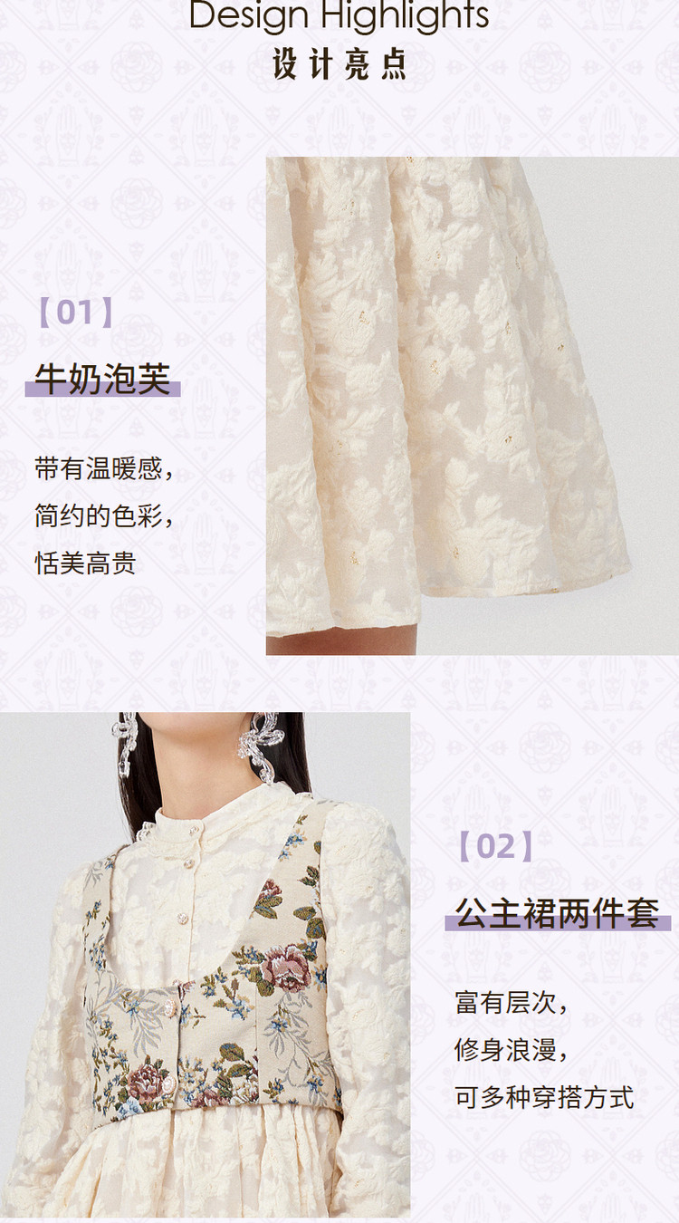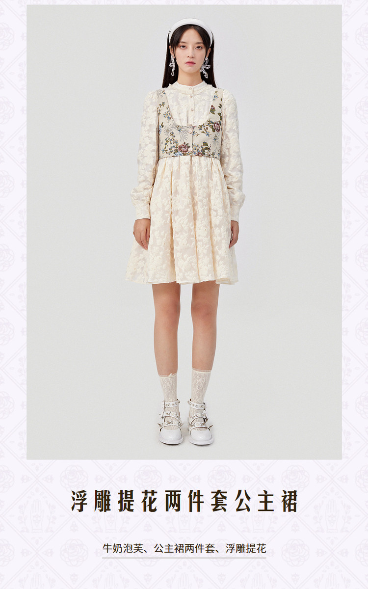 MAXRIENY浮雕提花公主裙两件套春季连衣短裙MC87DR005A20