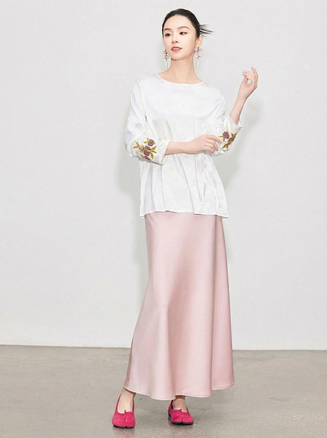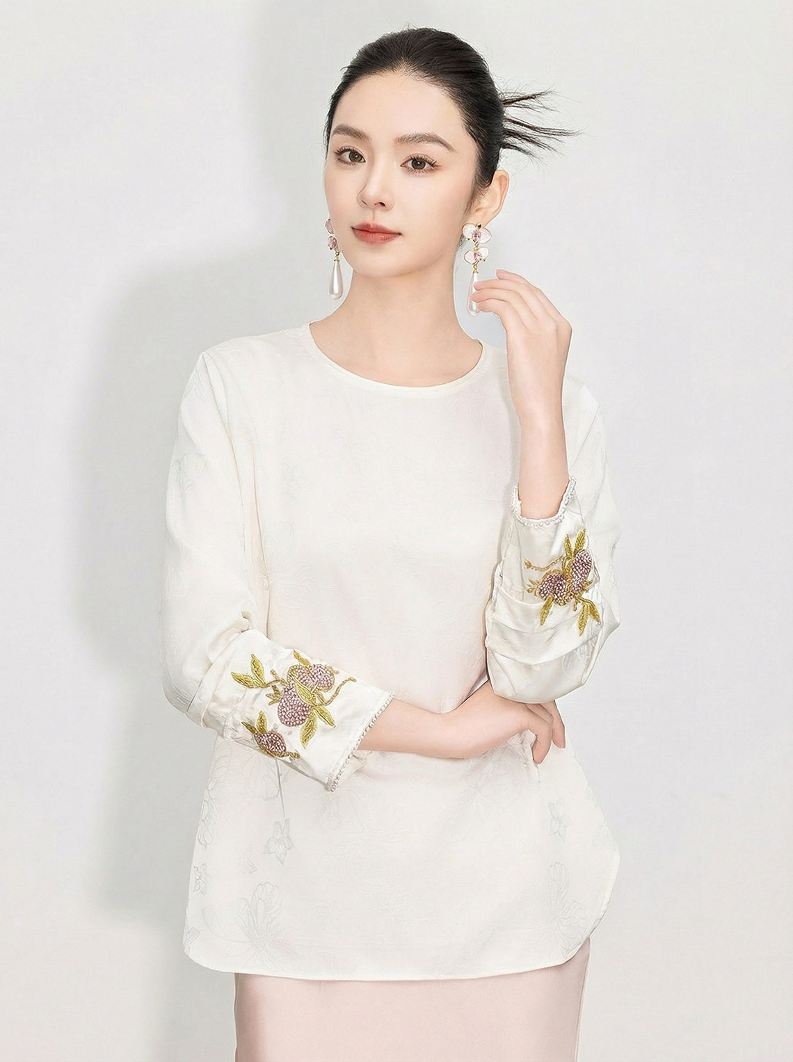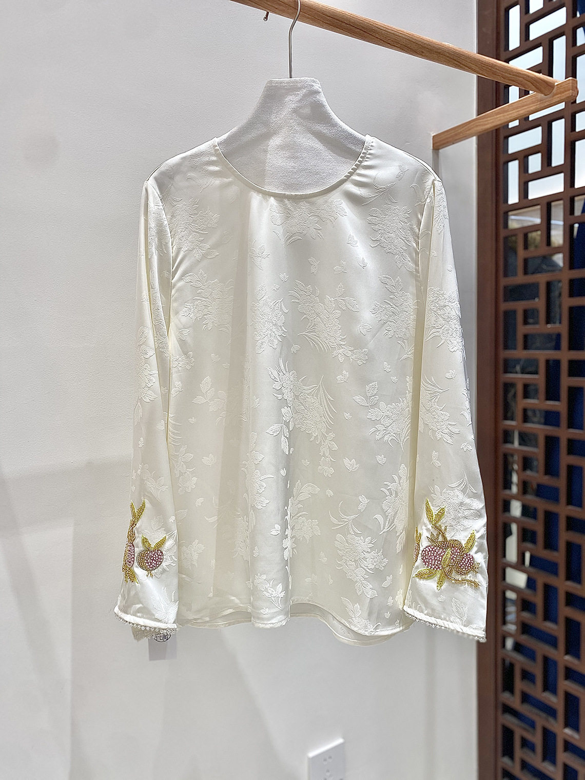 「自」全新升级【铂金会员192/天猫259/差价67】(55555)洛诗琳新中式石榴刺绣上衣2026春季新款设计感圆领衬衫