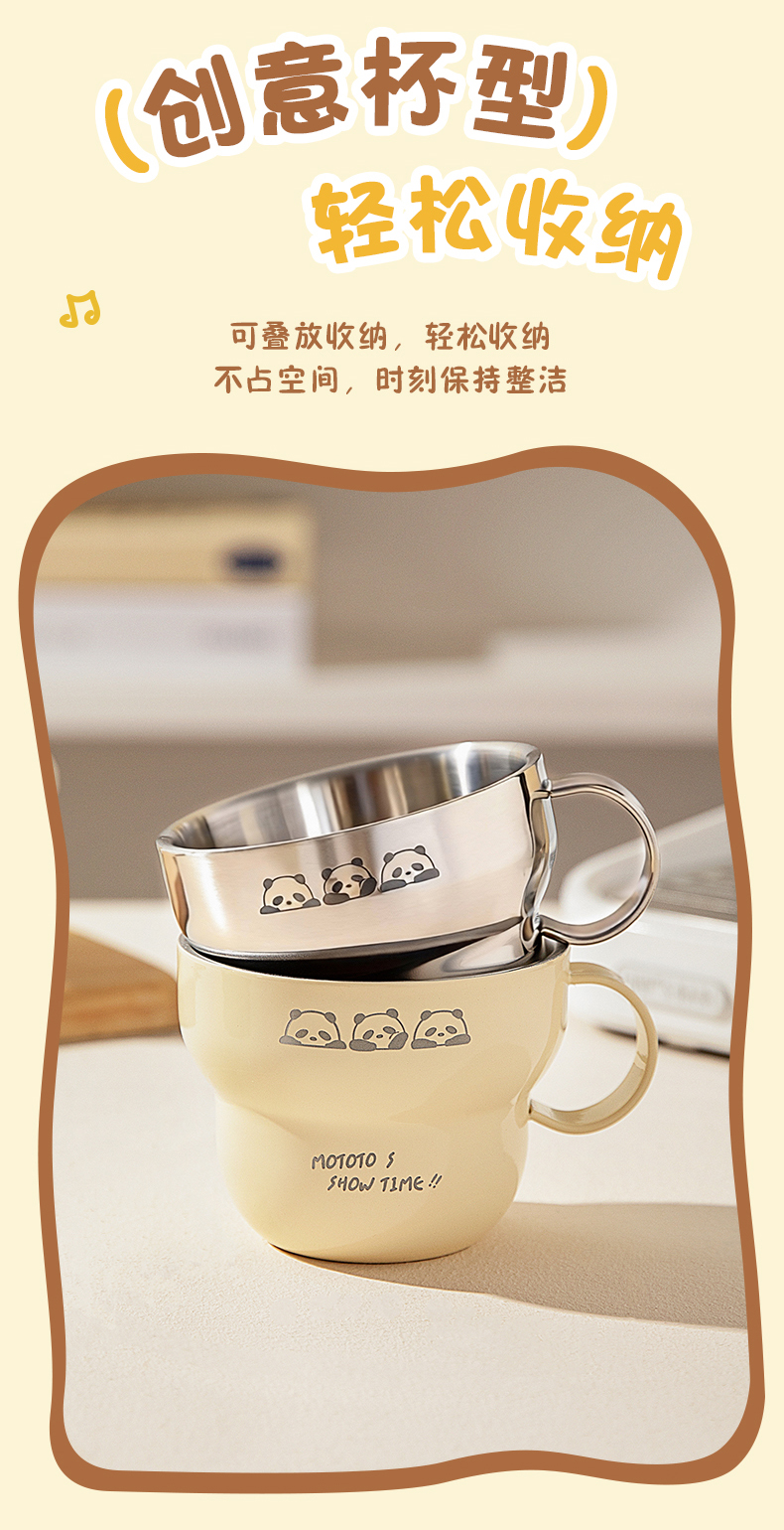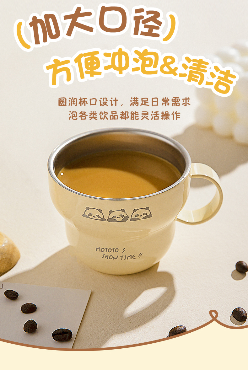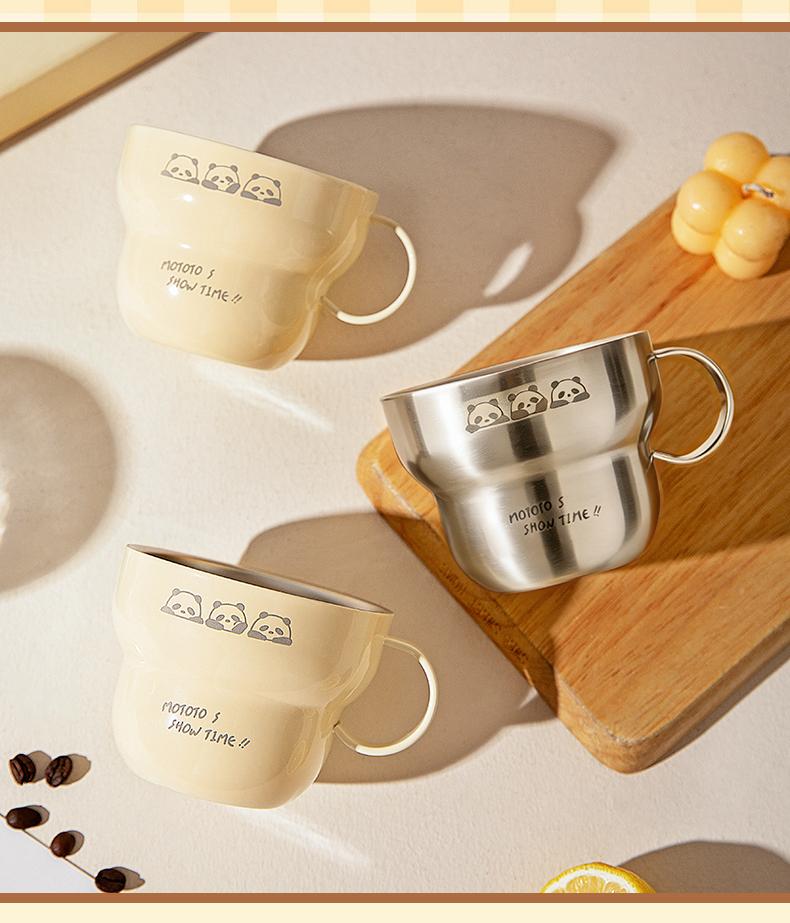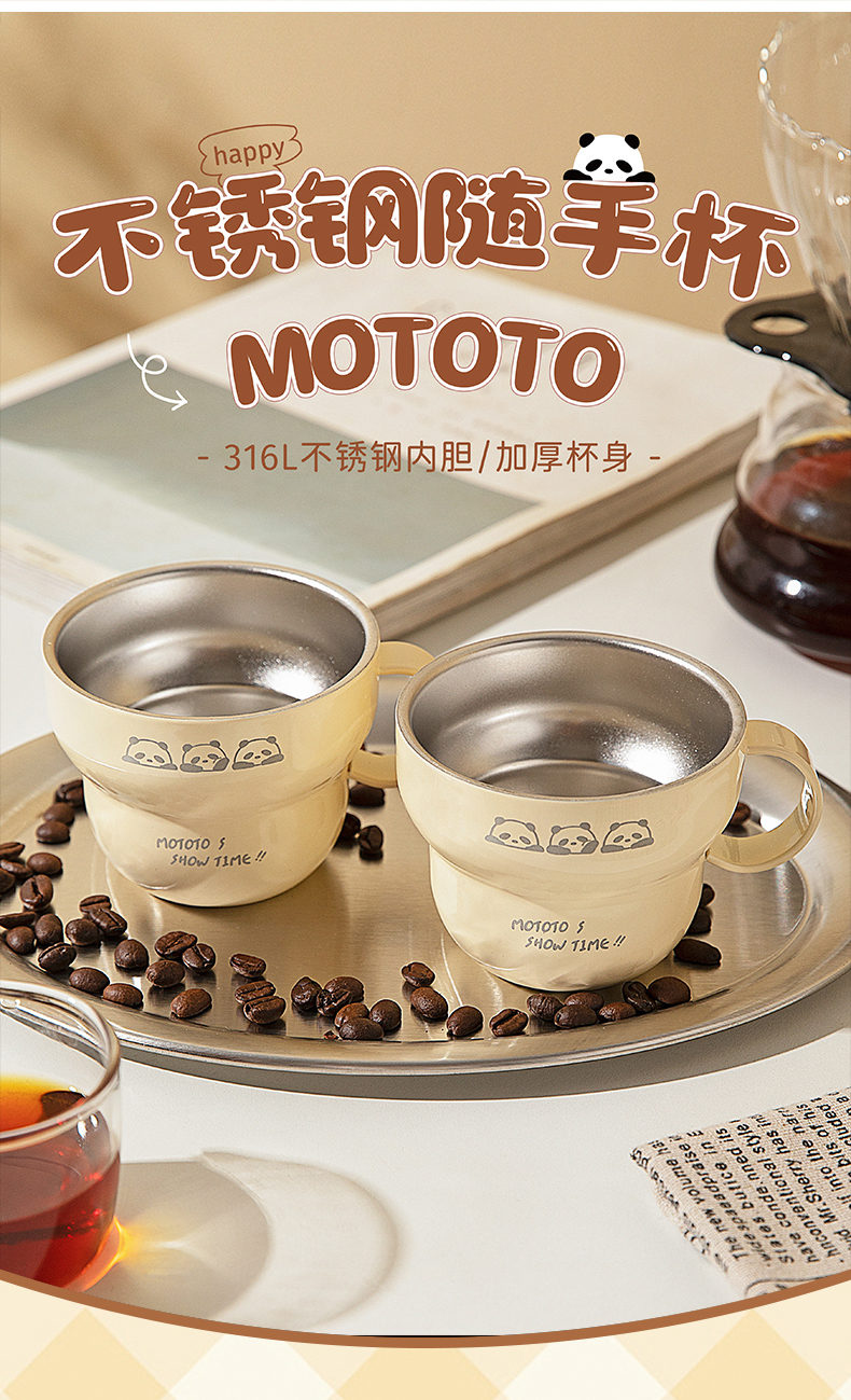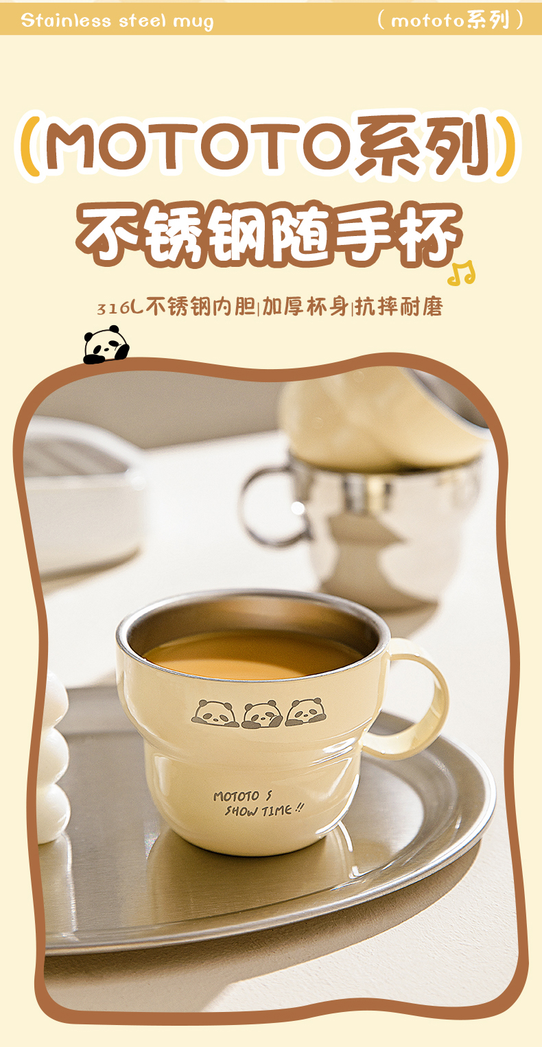 摩登主妇mototo熊猫316L不锈钢杯子儿童水杯家用防摔拉花杯咖啡杯