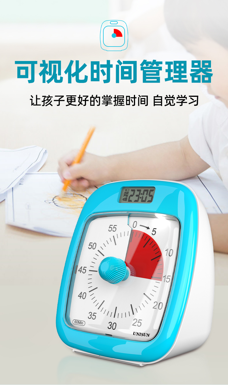 UNISUN蚂蚁象全静音可视化时间管理器 赠送一盒12色彩铅