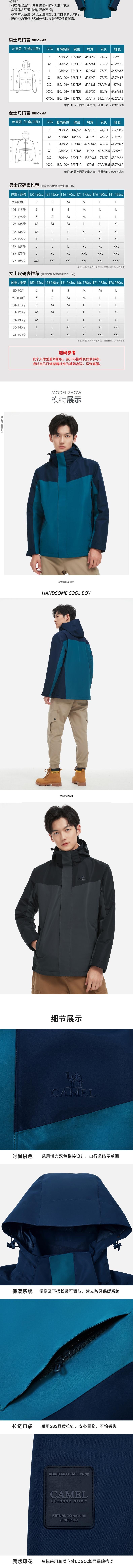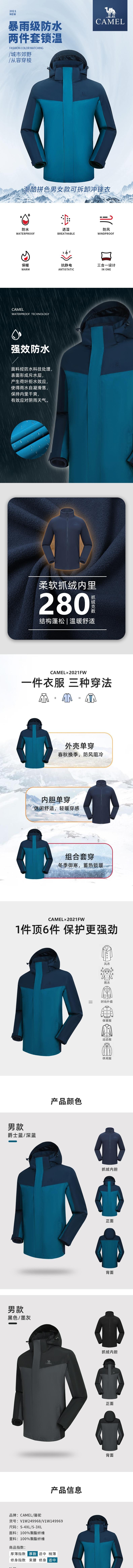 骆驼 男情侣三合一冲锋衣(抓绒内胆) V1W249968