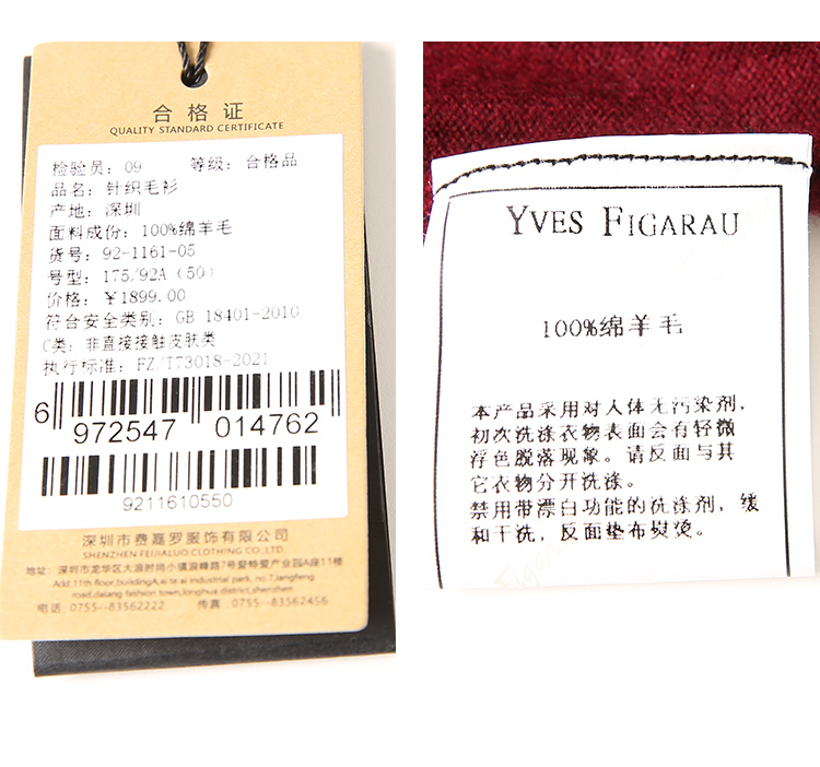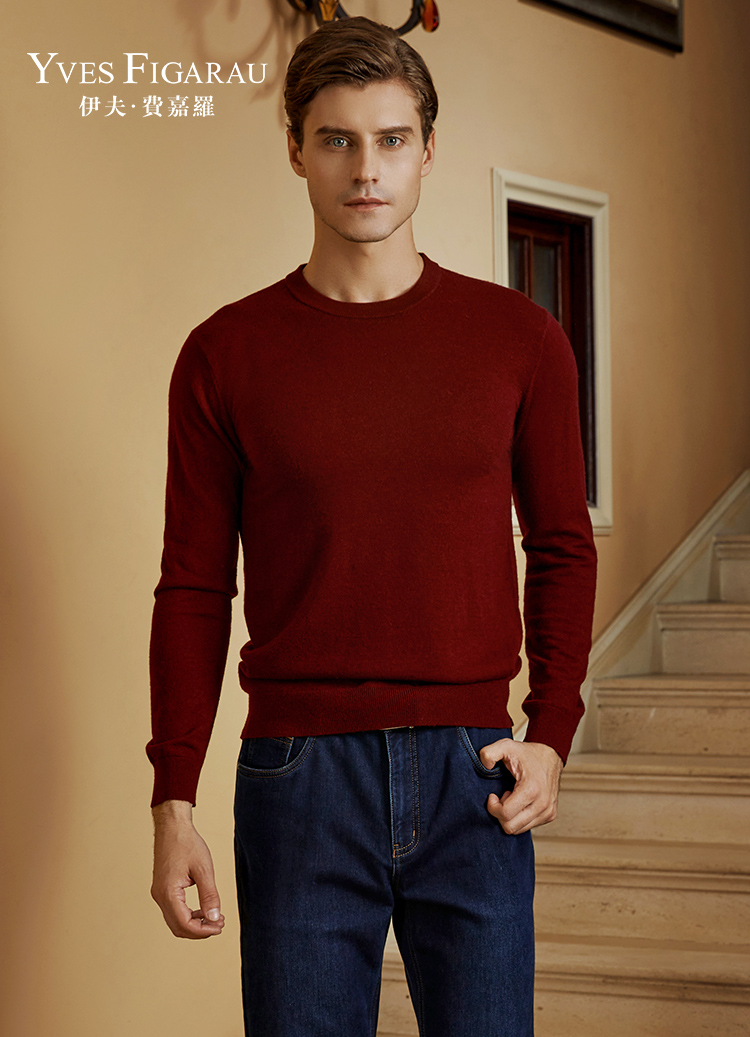 YvesFigarau伊夫·费嘉罗100%绵羊毛秋冬新款套头舒适保暖打底休闲毛衣921161