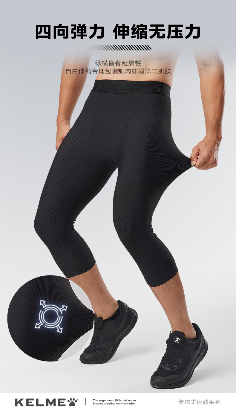 卡尔美新款男士紧身七分裤