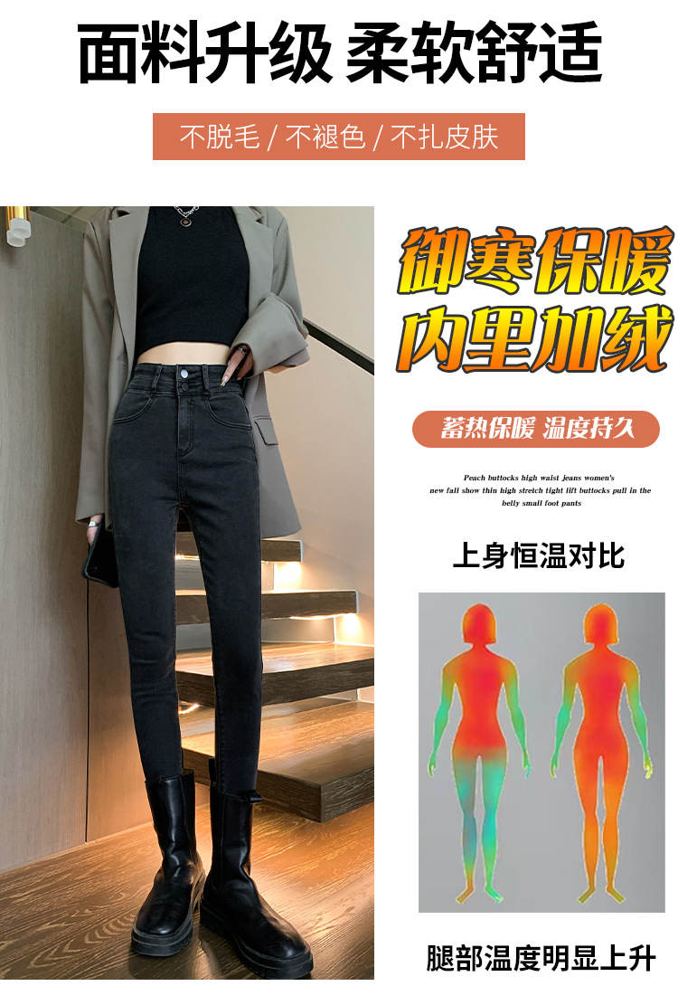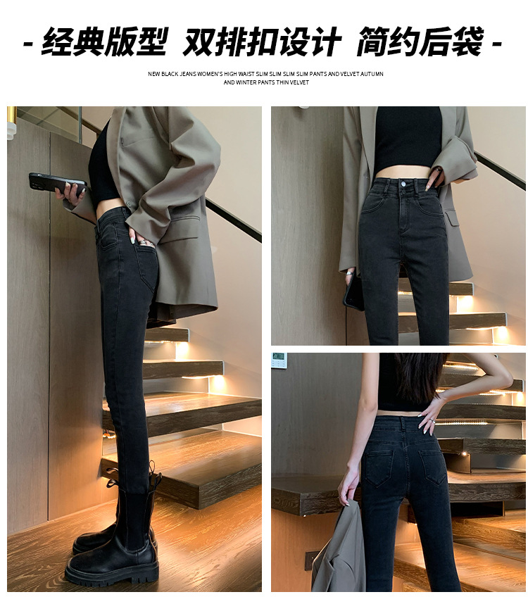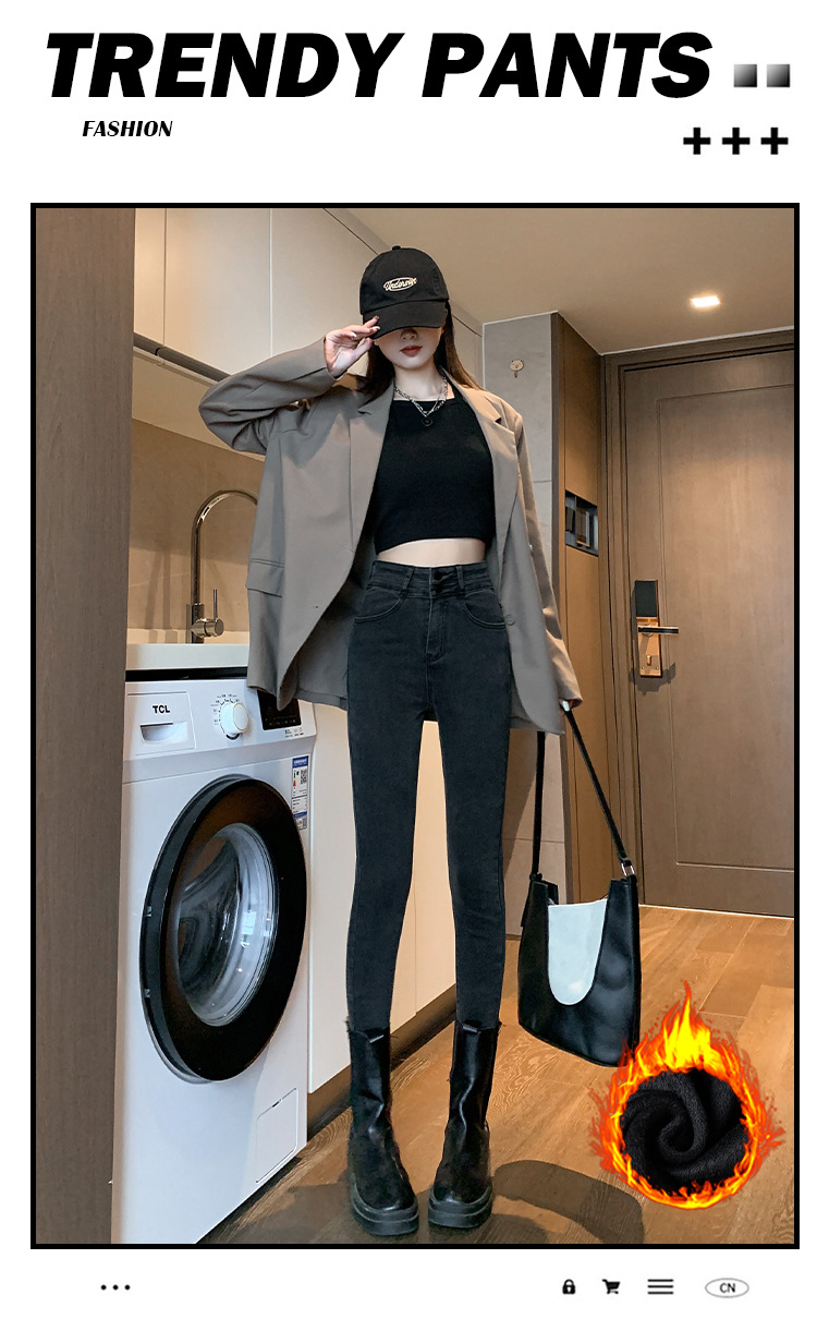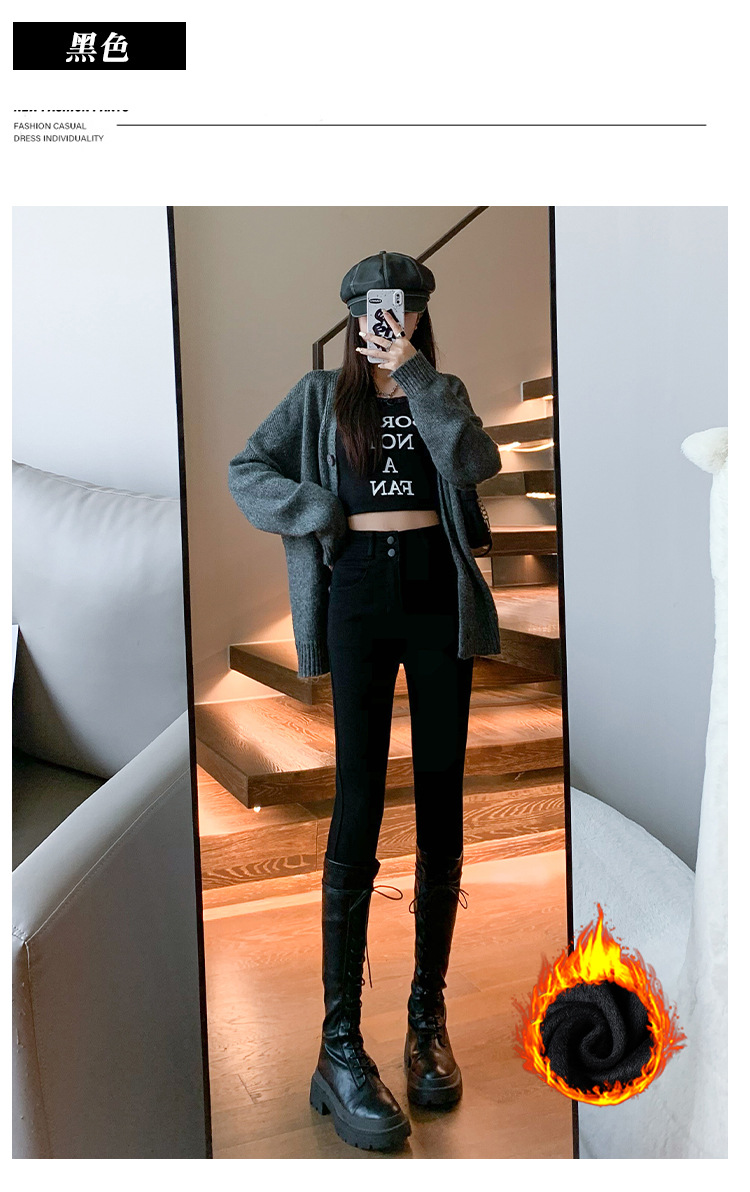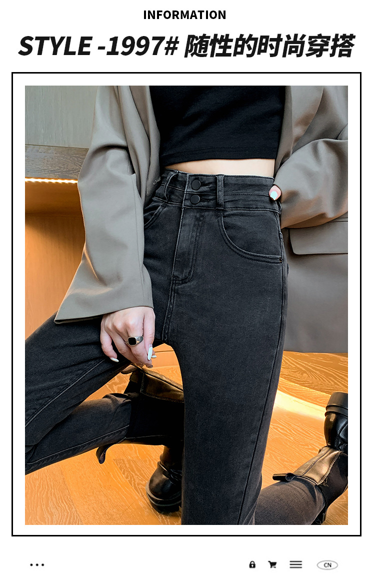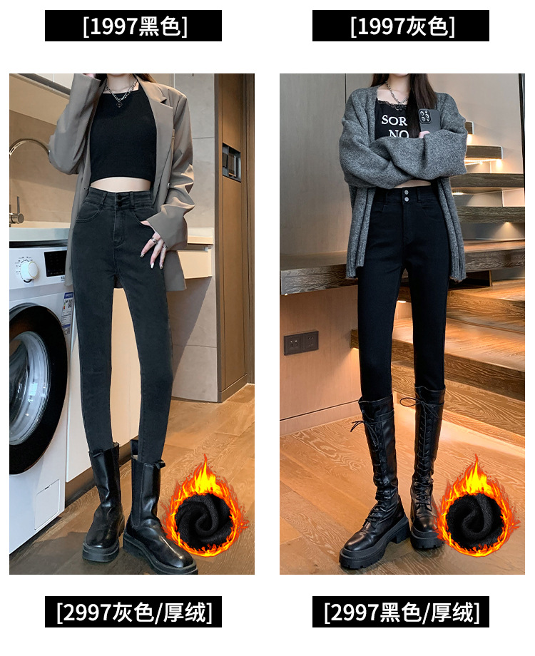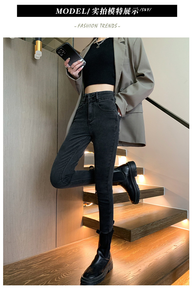 加绒加厚高腰显瘦铅笔裤潮,双排扣紧身弹力小脚牛仔裤SY-1997