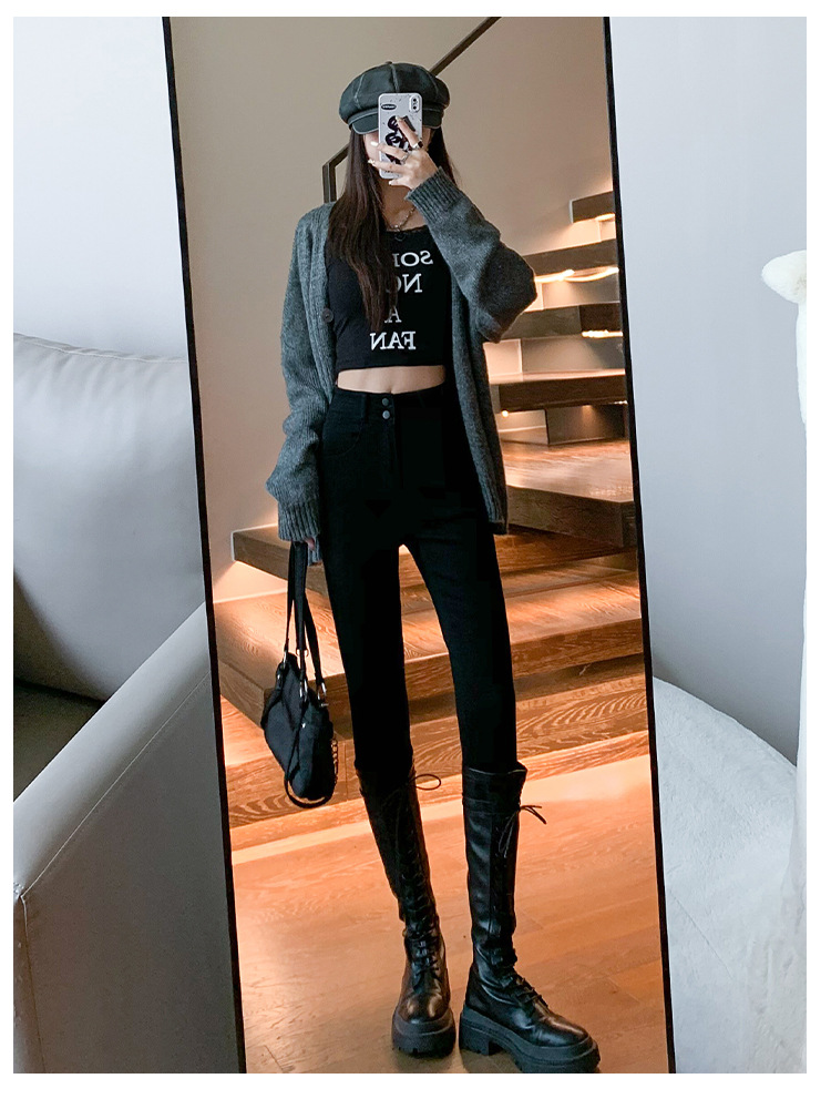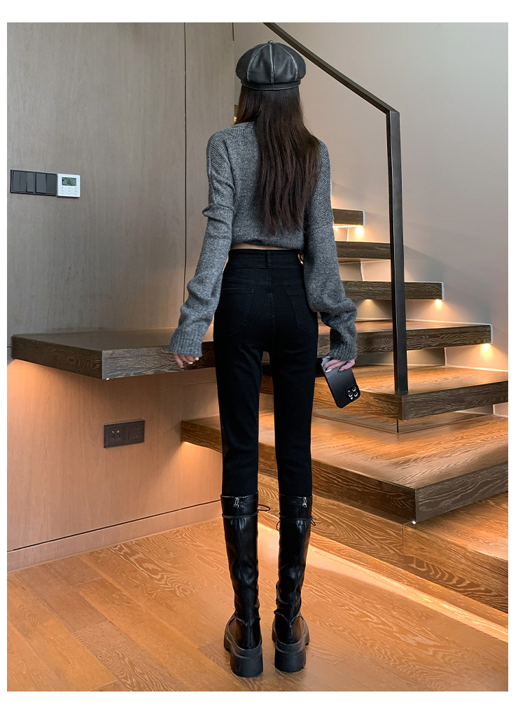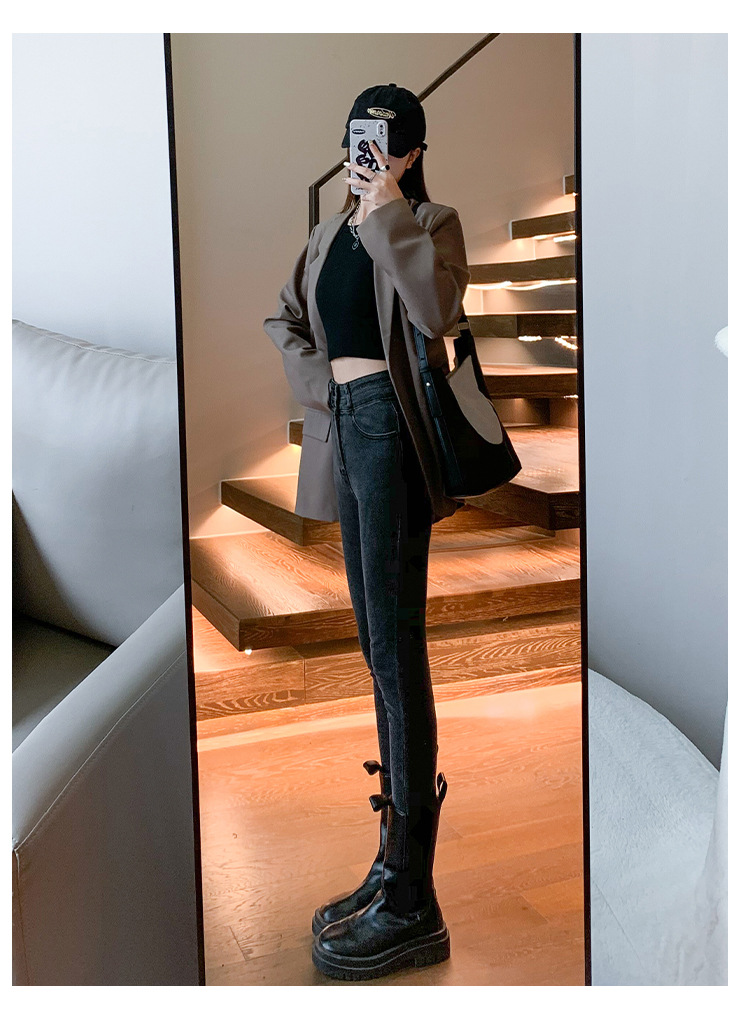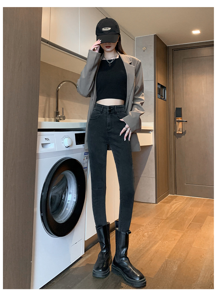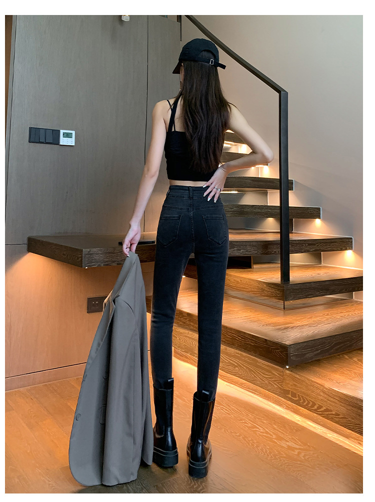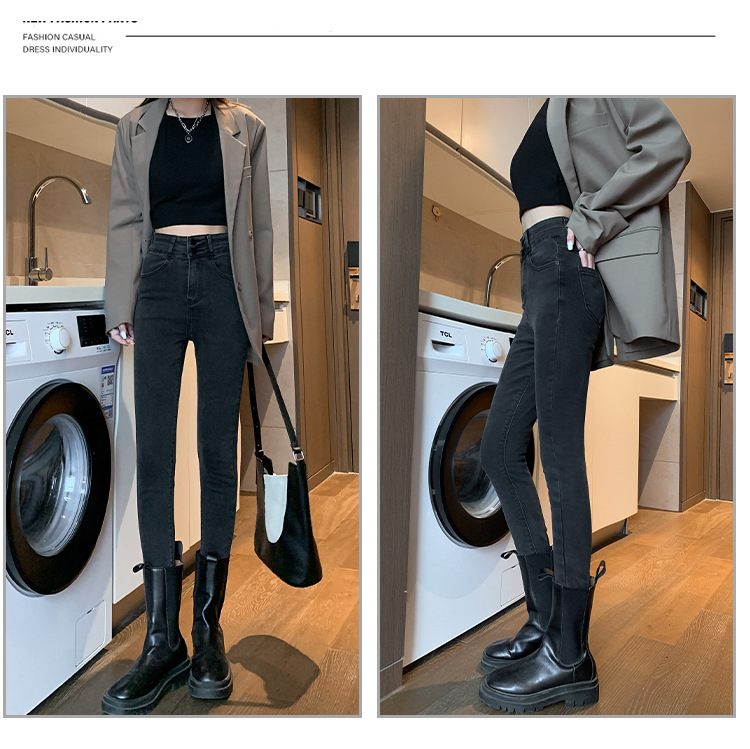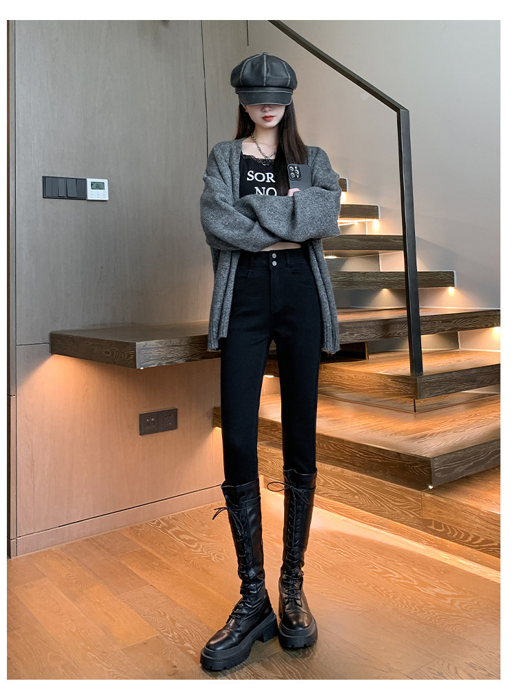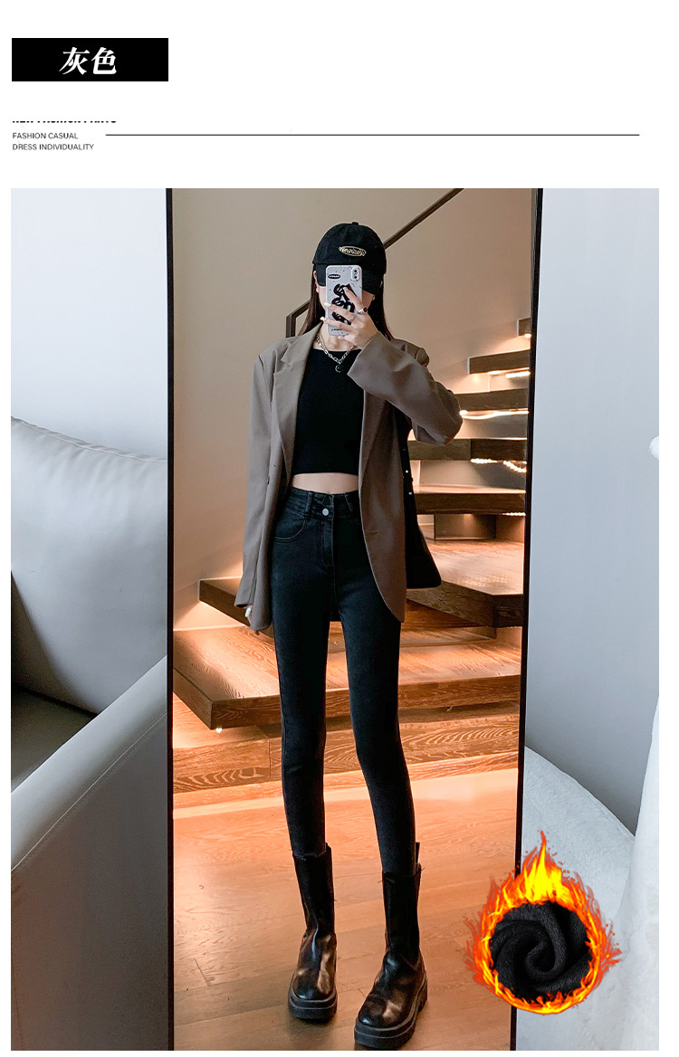 加绒加厚高腰显瘦铅笔裤潮,双排扣紧身弹力小脚牛仔裤SY-1997