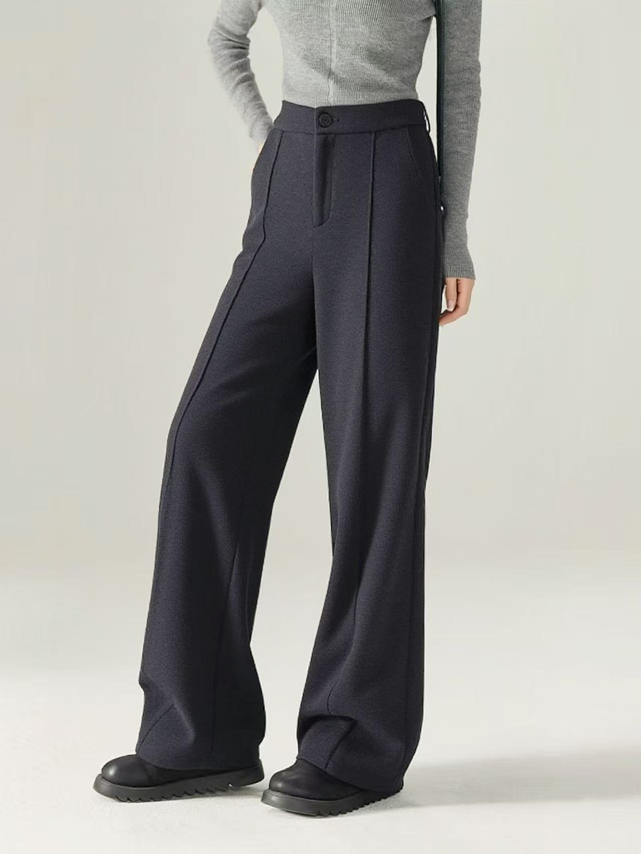12.12【清仓】(拉链 坏了)79018羊毛醋酸烟灰直筒裤-喜出