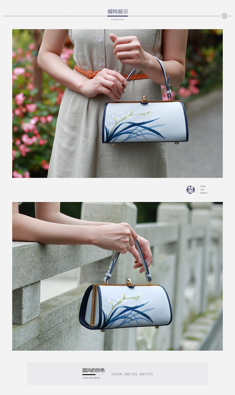 复古刺绣手提包,气质配旗袍包包链条斜挎小包P120117