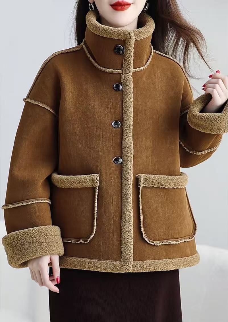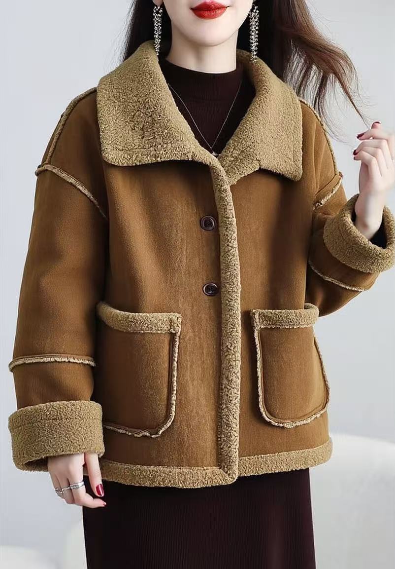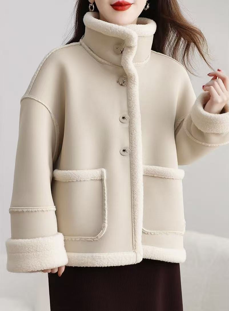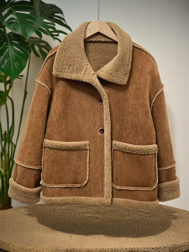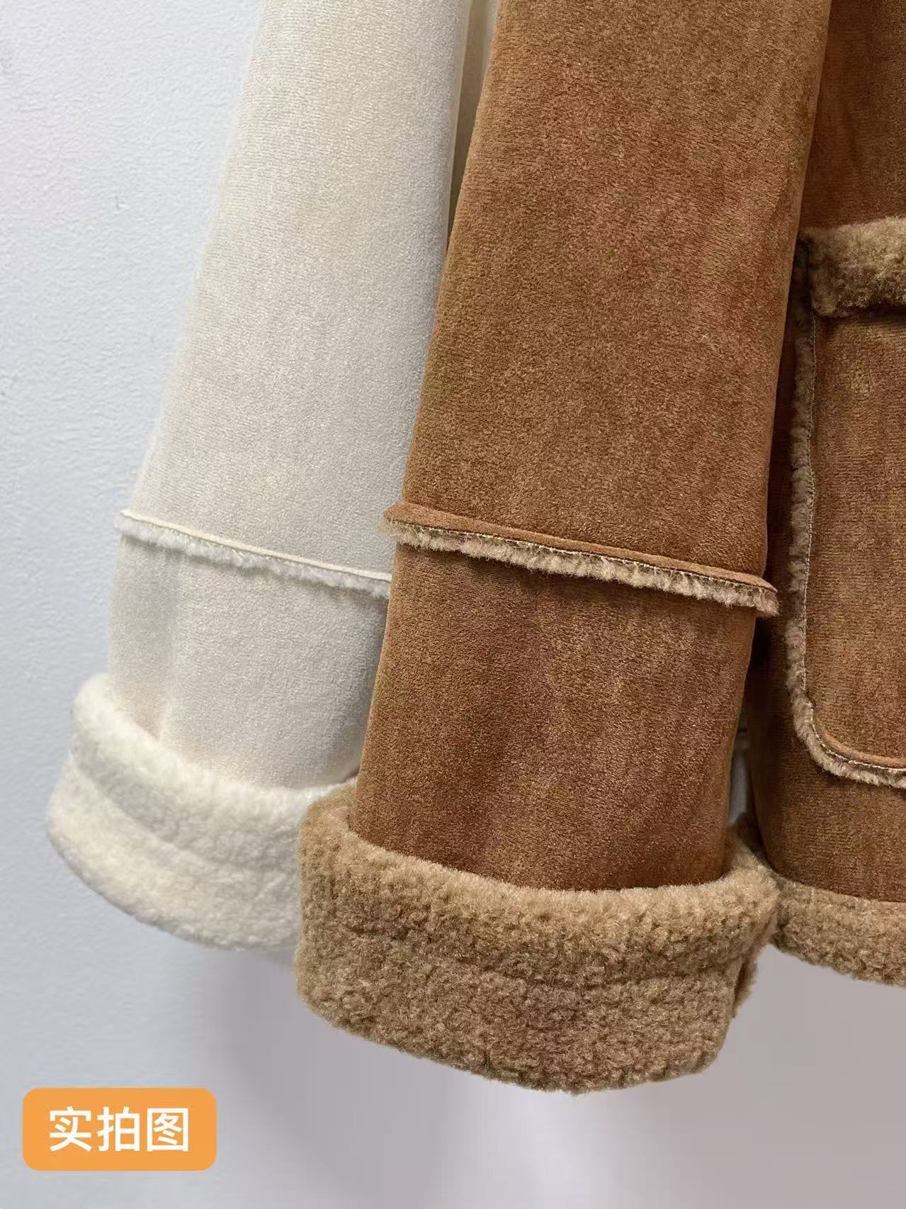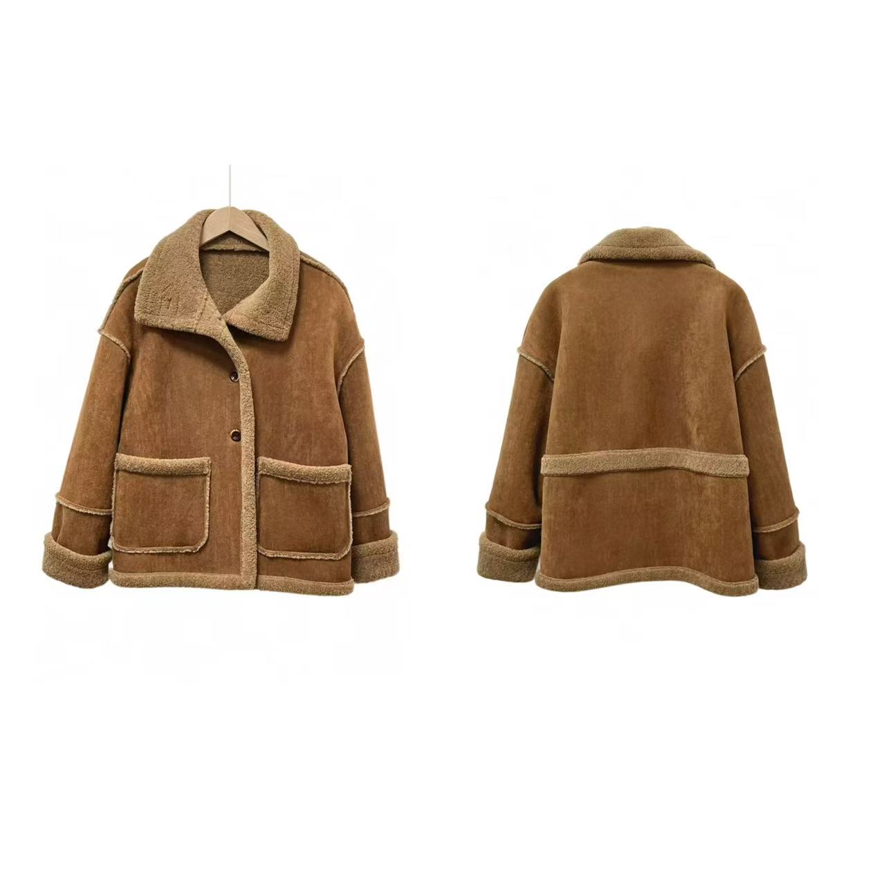 最后一件样衣【颗粒绒】麂皮绒可翻领立领皮毛一体加厚颗粒绒外套-喜出