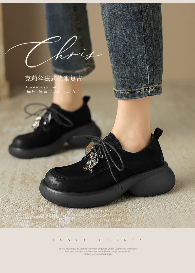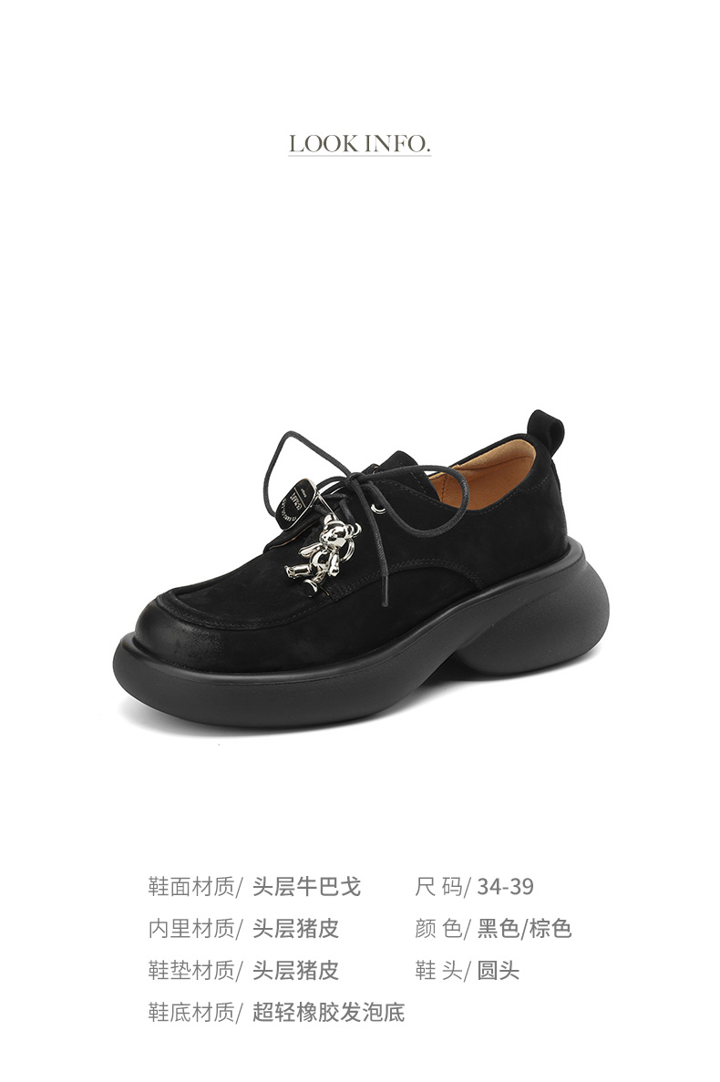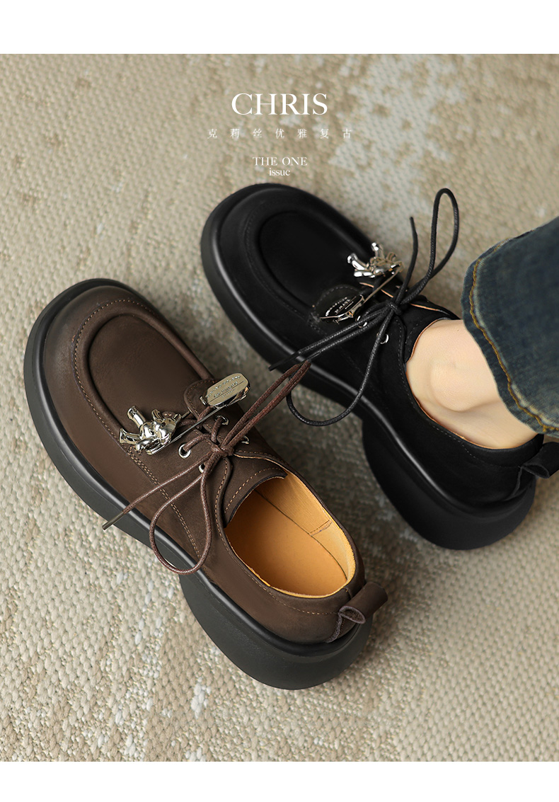 个性可爱,系带擦色圆头厚底单鞋MDY-M235-62