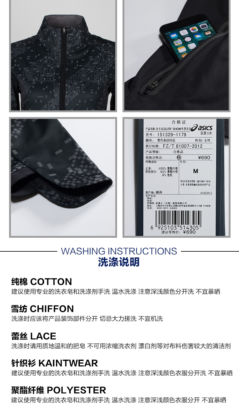 7折 ASICS亚瑟士 女士 梭织夹克 运动冬季夹克 151329-1180