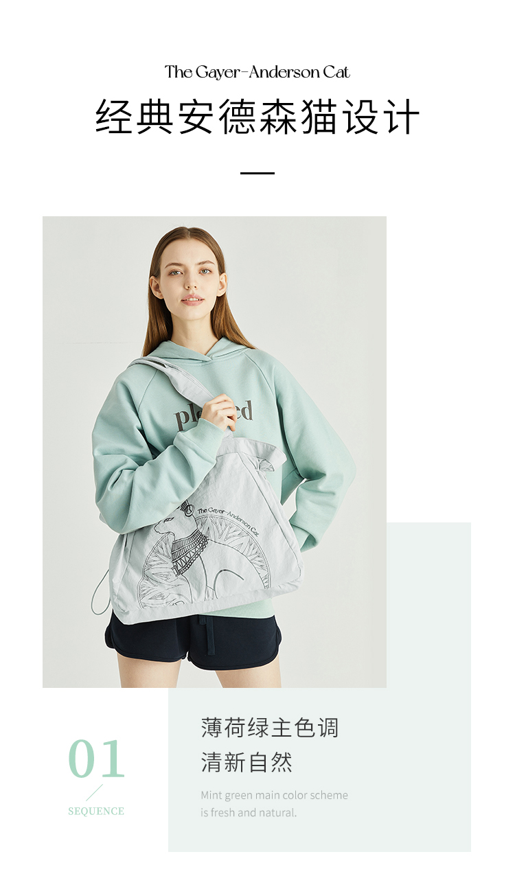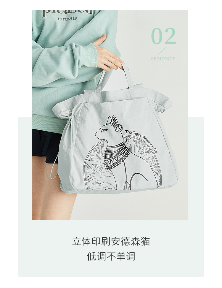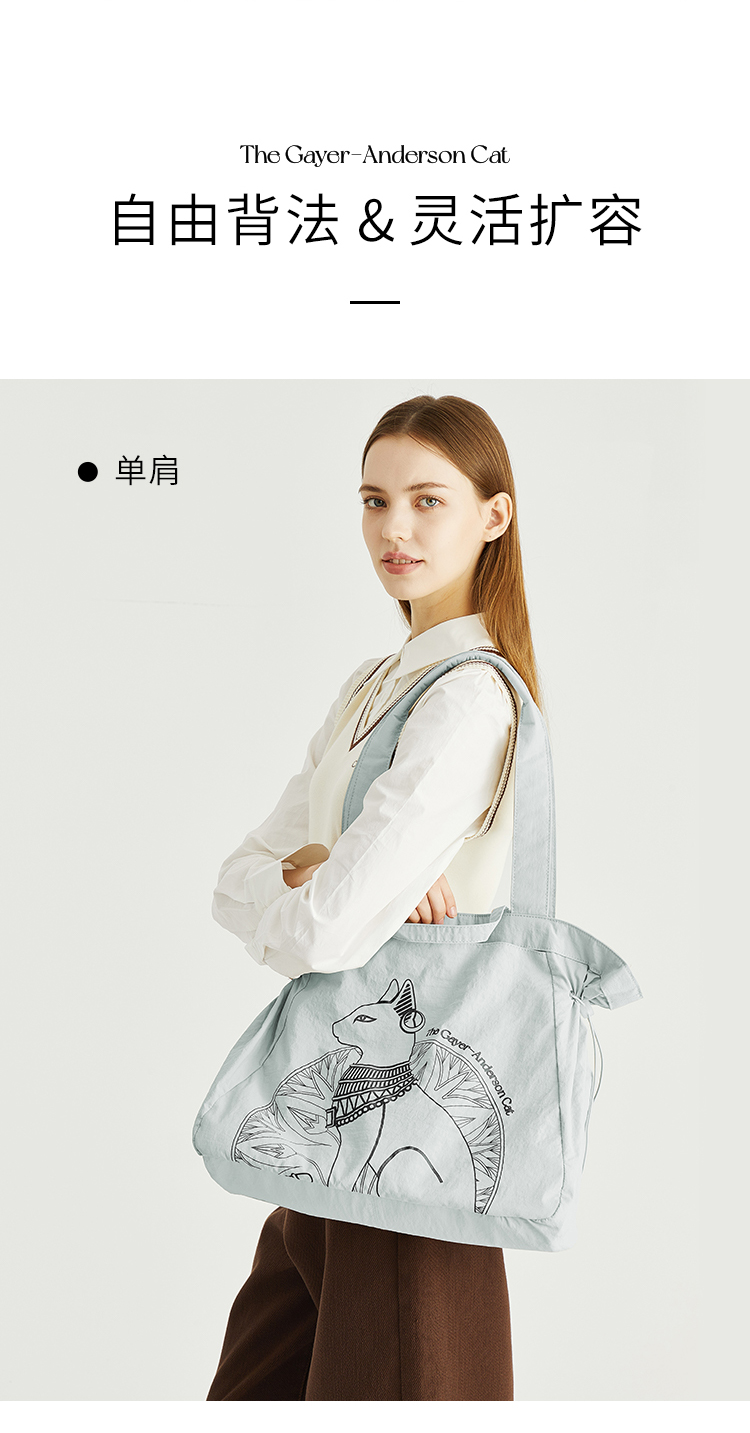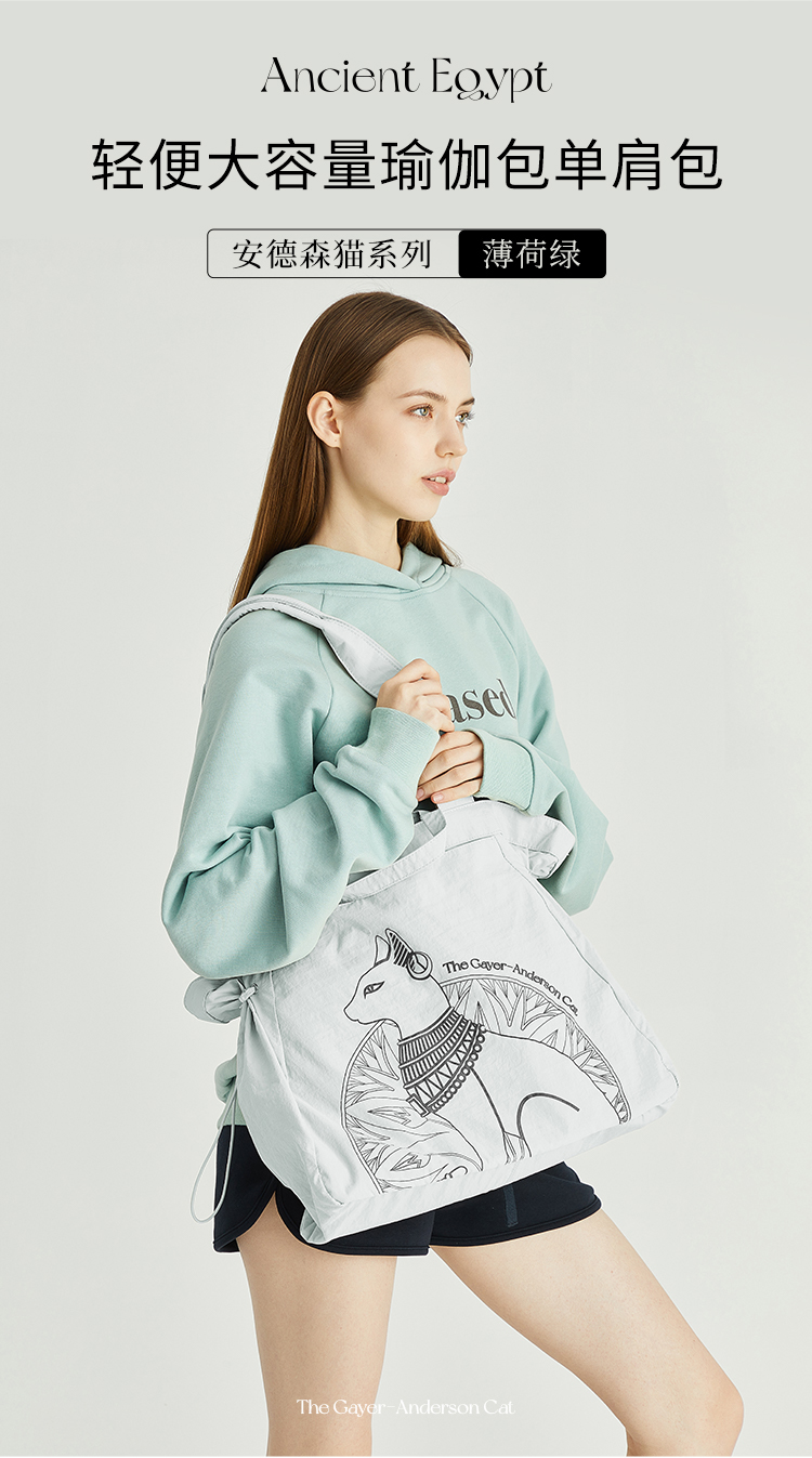 大英博物馆 盖亚·安德森猫系列 轻便大容量瑜伽包单肩包 薄荷绿