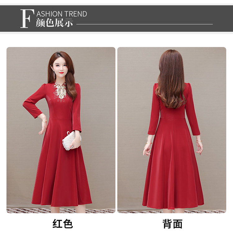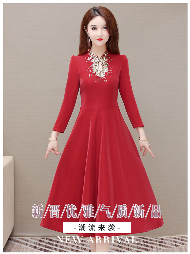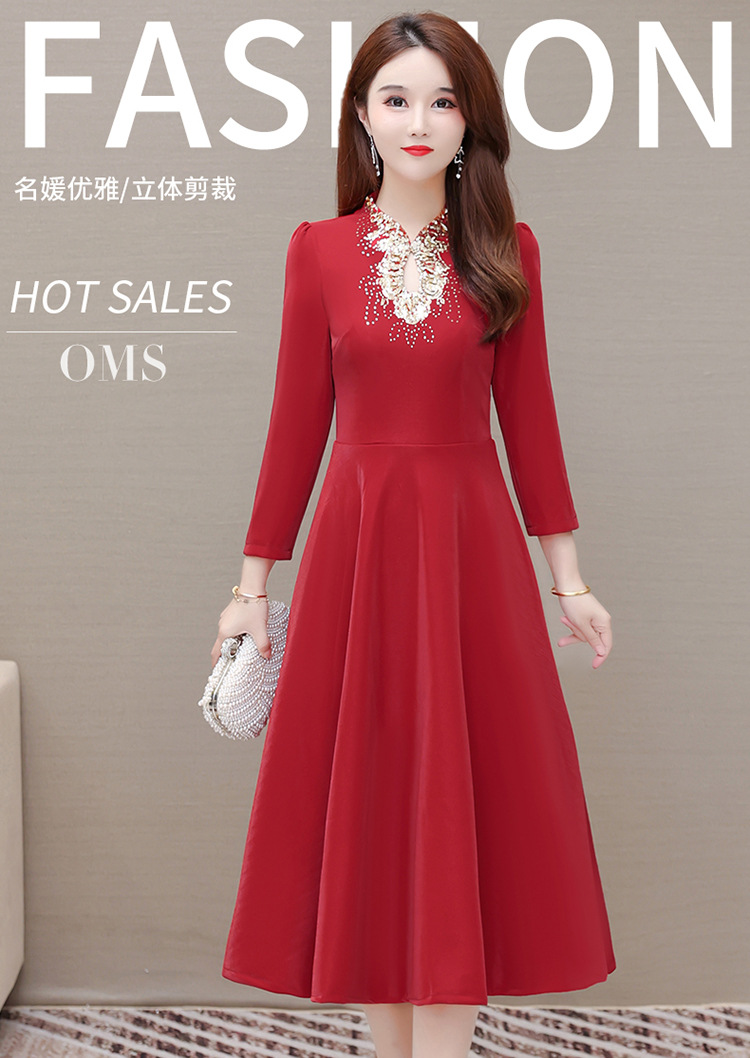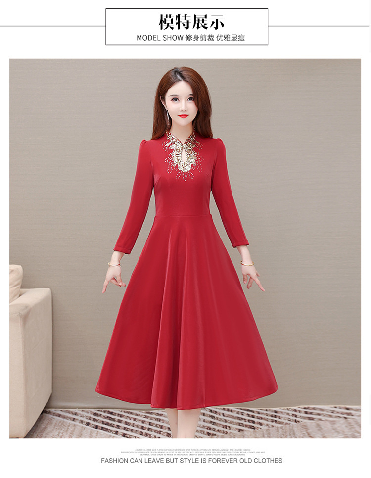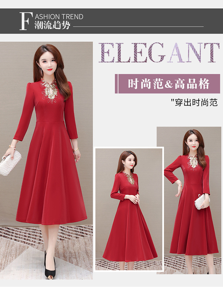 春款洋气修身优雅时尚大摆连衣裙立领国风中式礼服裙QYM-OMS-RB118-L