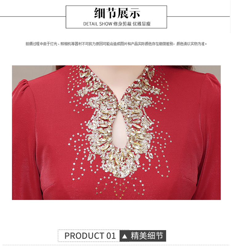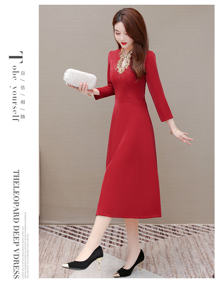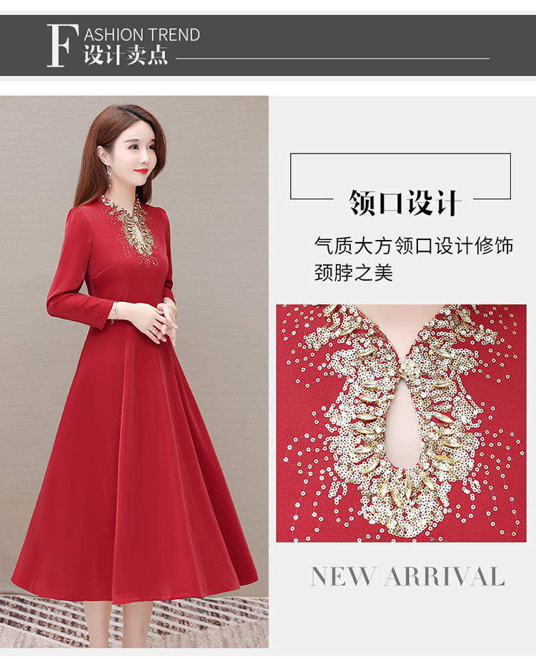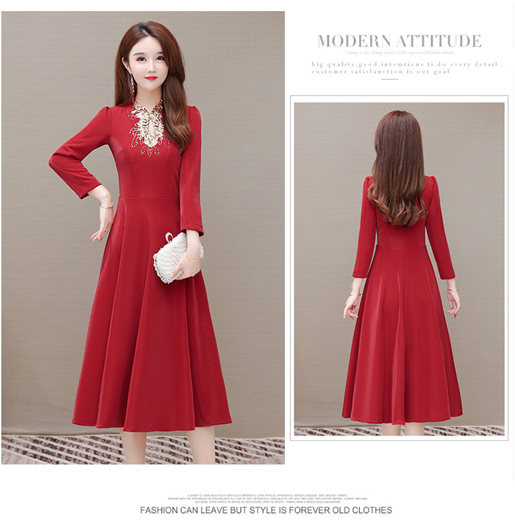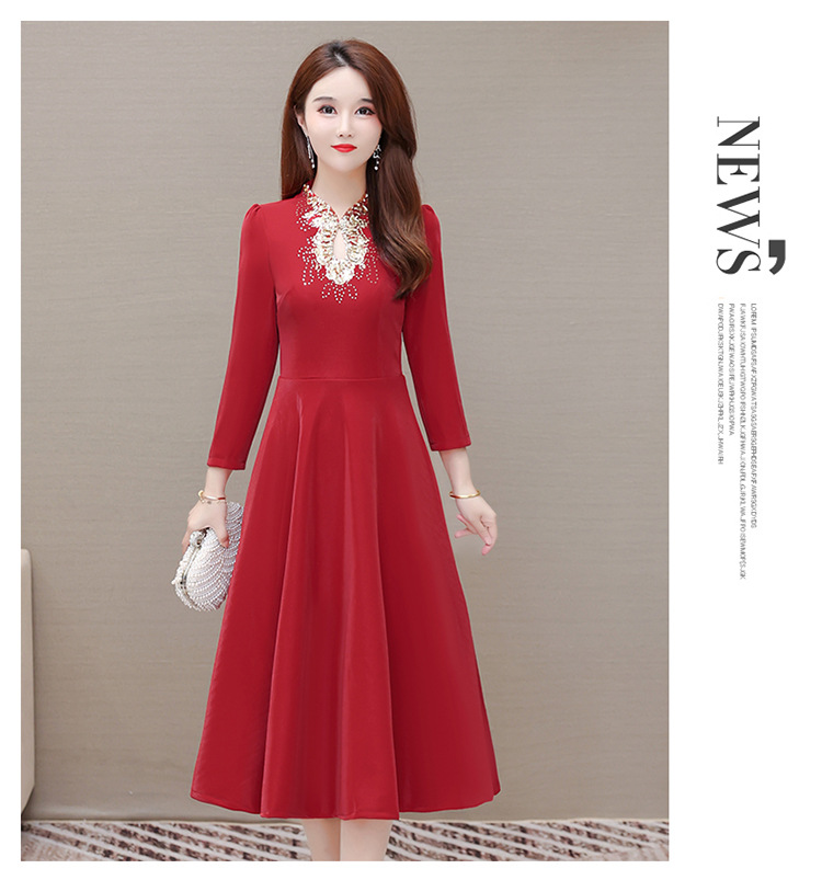 春款洋气修身优雅时尚大摆连衣裙立领国风中式礼服裙QYM-OMS-RB118-L
