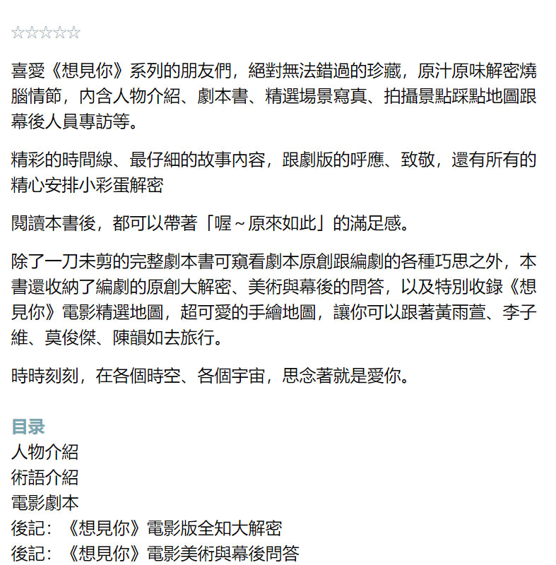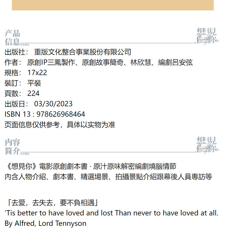 【中商原版】《想见你》电影原创剧本书 港台艺术原版 三凤制作 车库娱乐 重版文化出版 首刷限定内赠《想见你》和你约定纪念贴纸