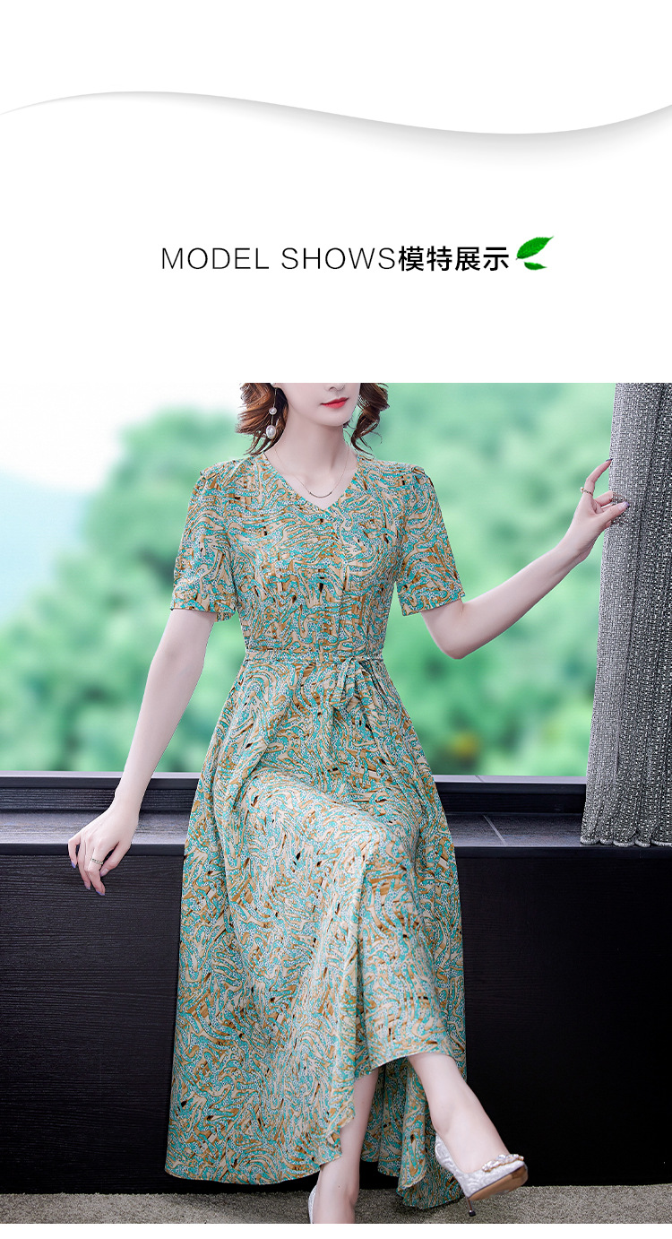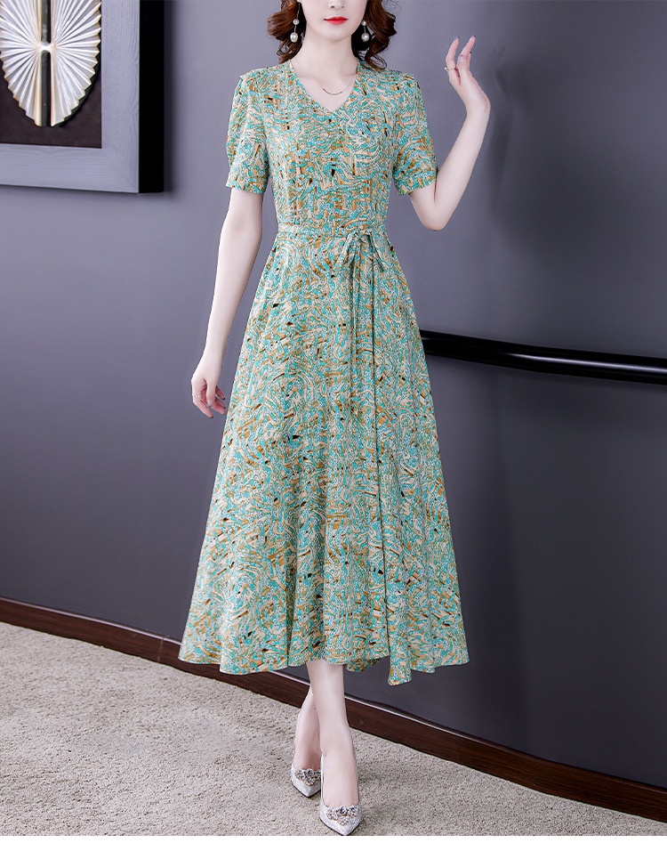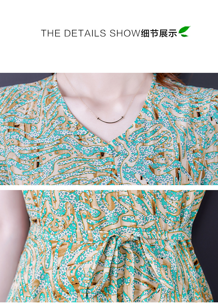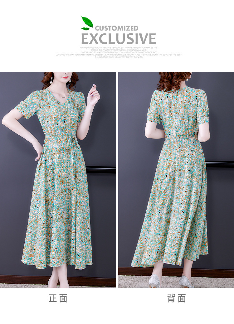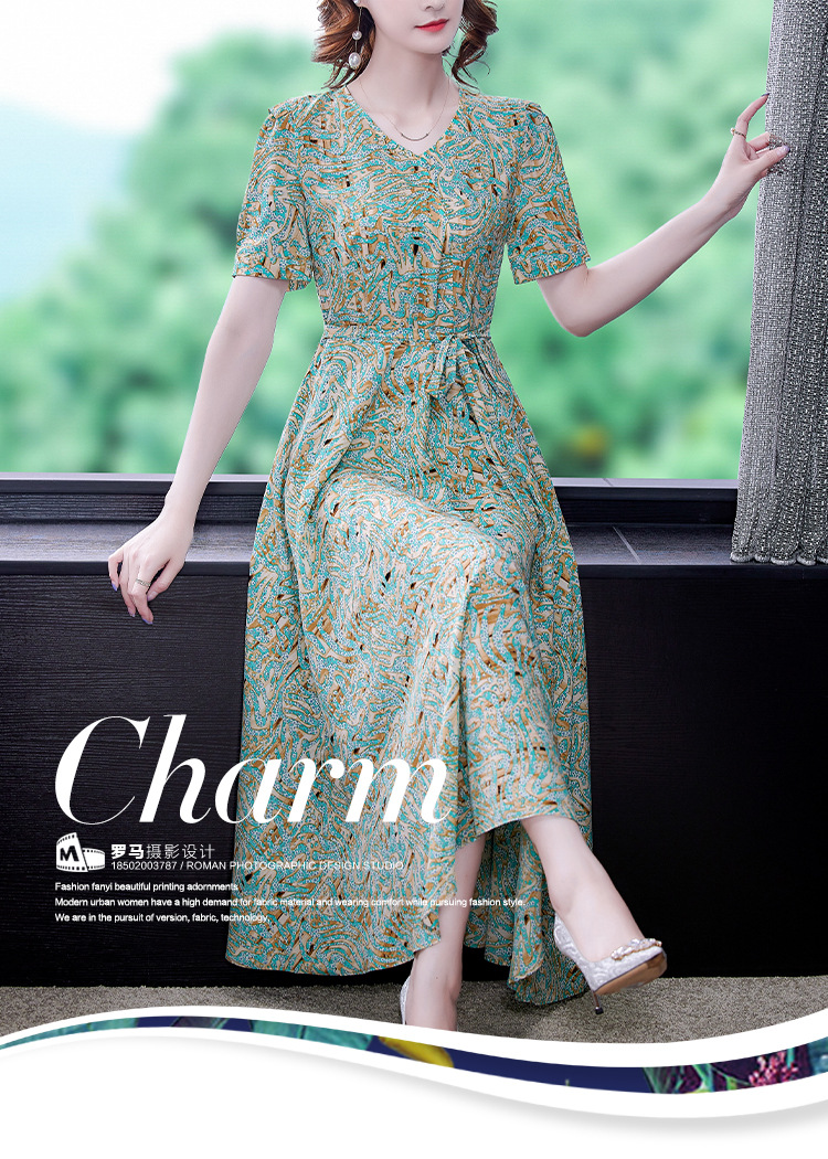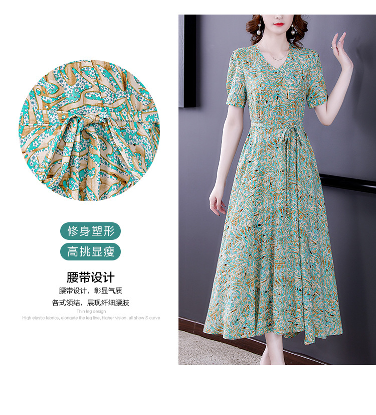 时尚女神范V领收腰显瘦大摆印花雪纺连衣裙AHM-mmjp8267